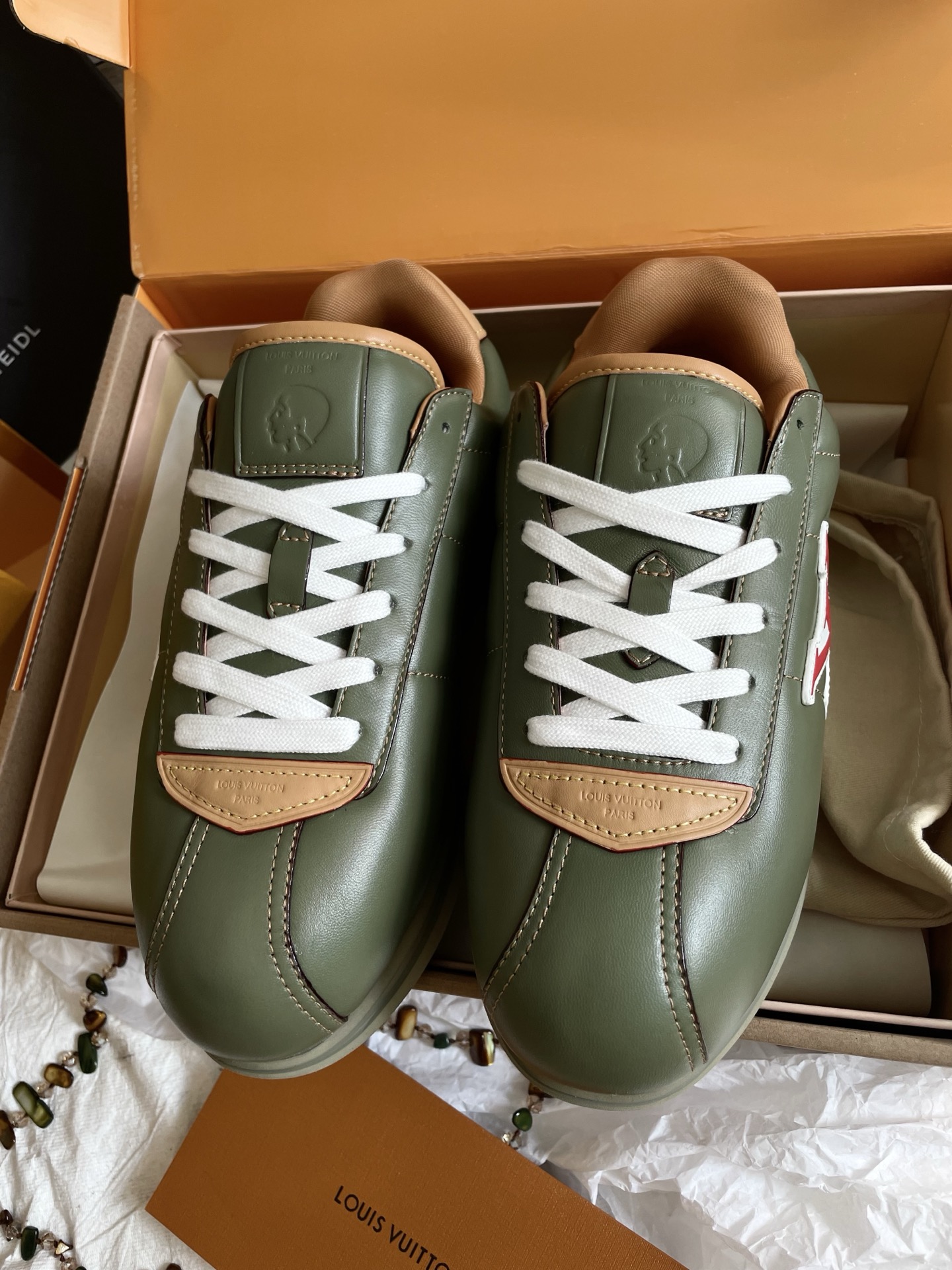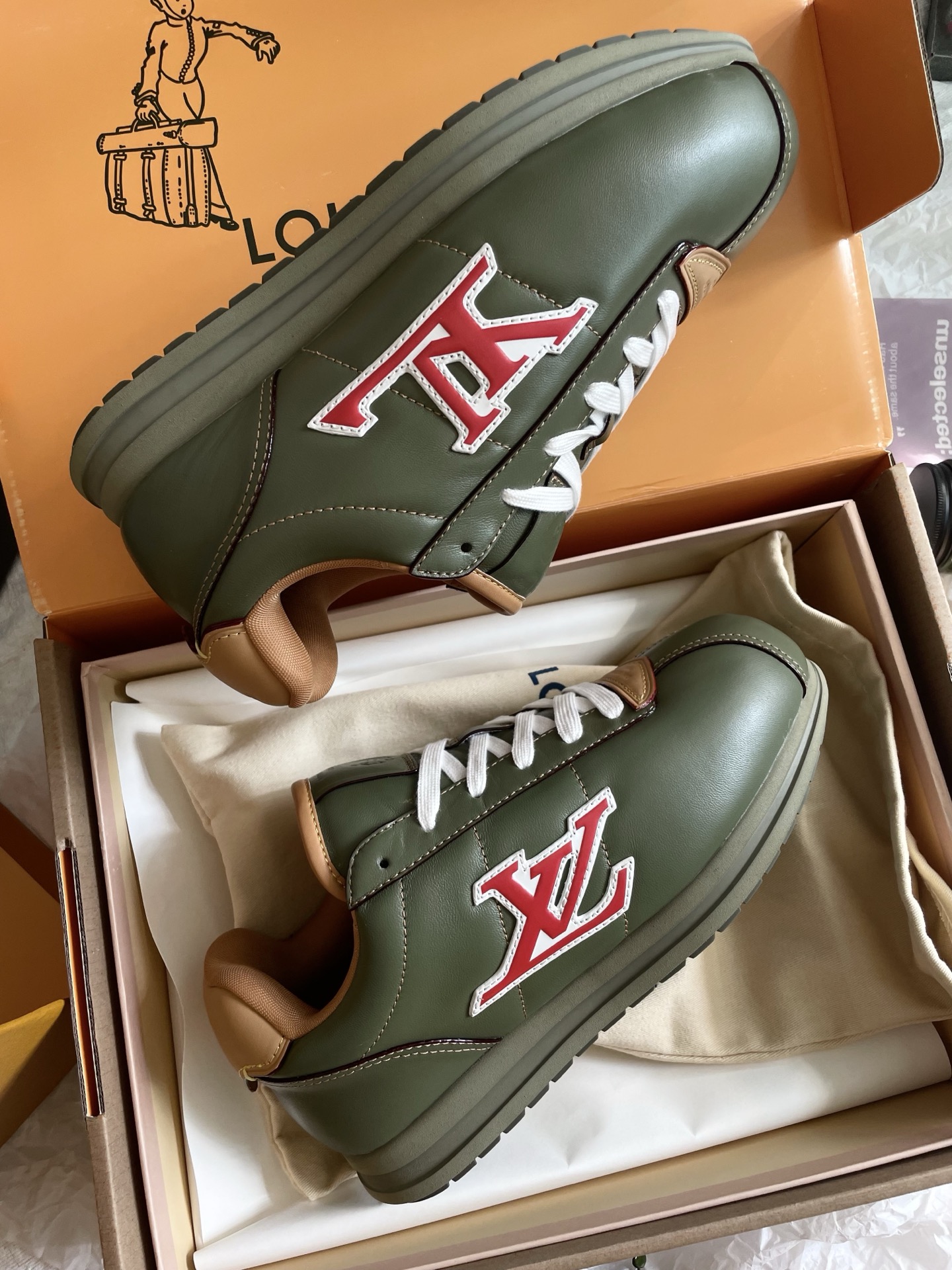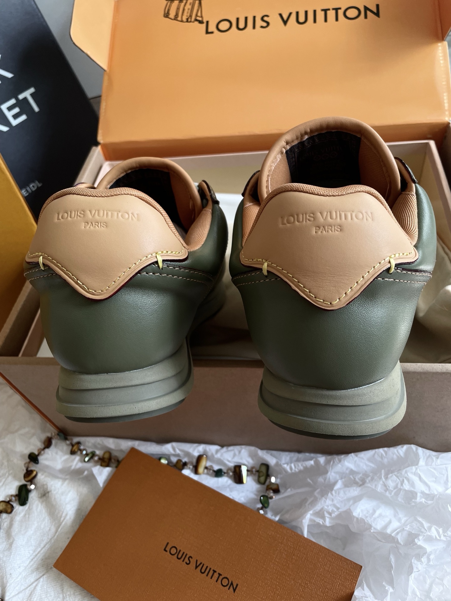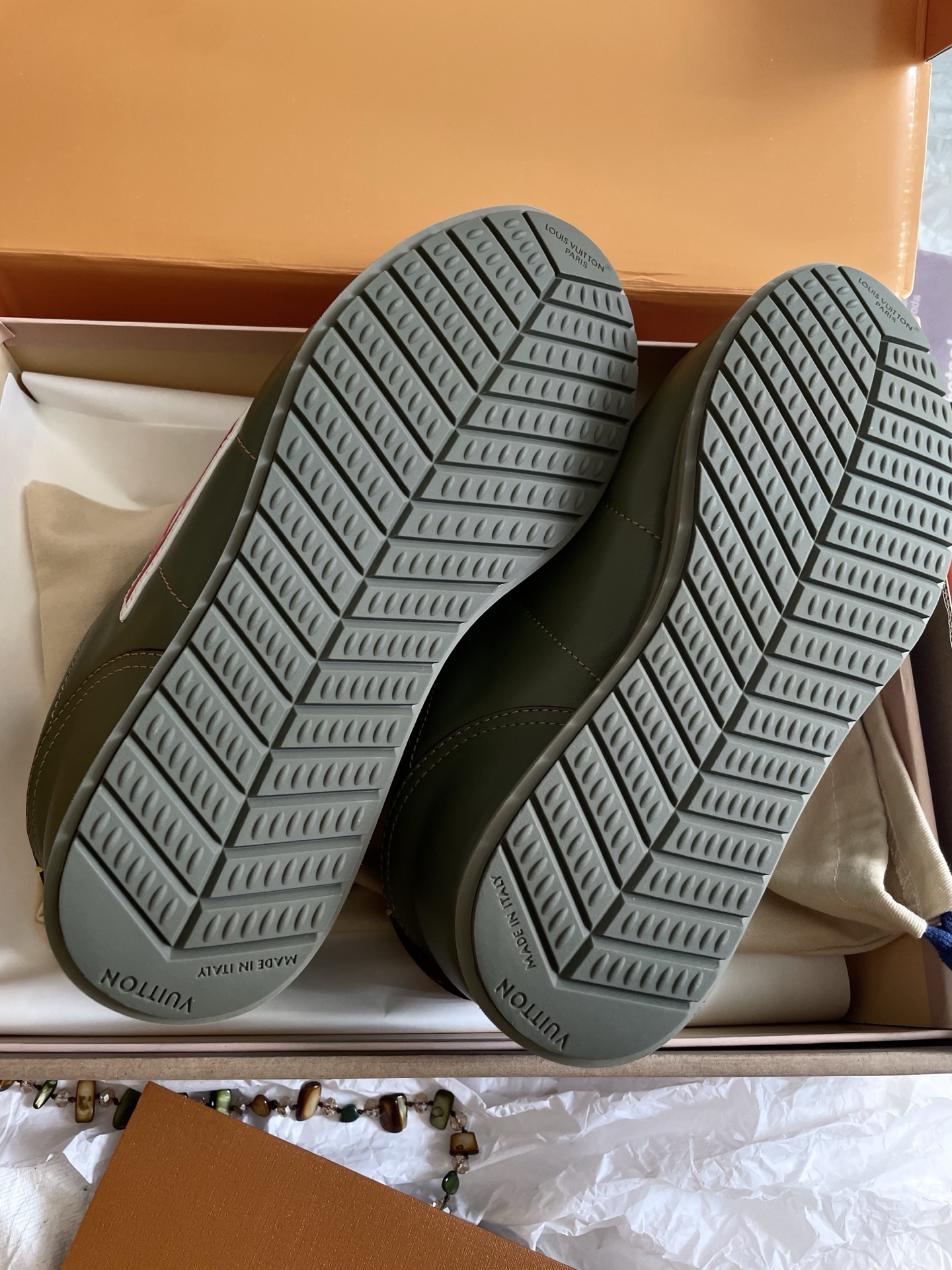 这款鞋子是AAAAA 1:1 质量 (非常棒). 使用了和原版一模一样的材料. 商标部分也保持了和路易威登/Louis Vuitton一样. 图片拍摄是实物鞋子拍摄, 您所收到的实物保证和我们图片一模一样.