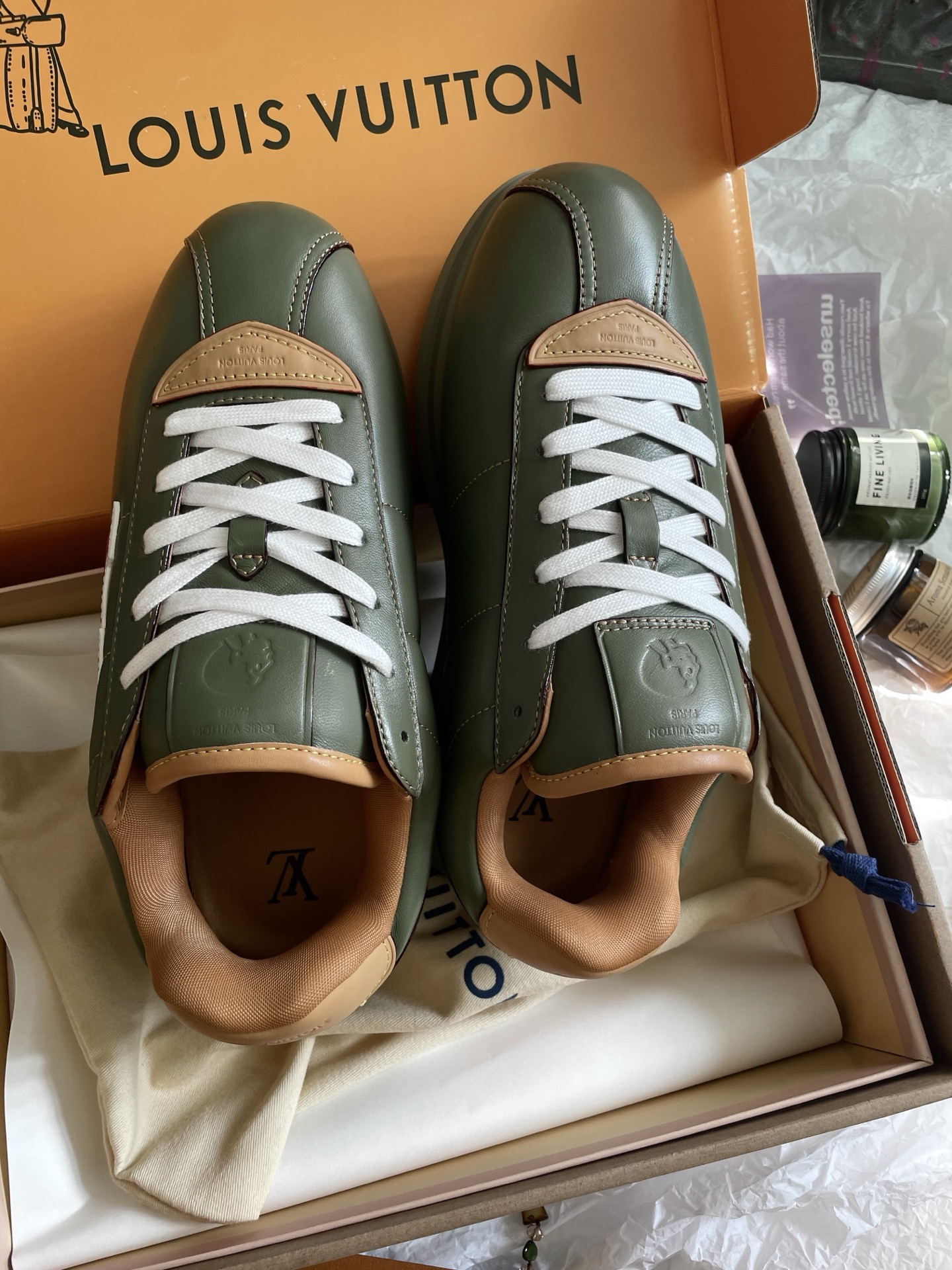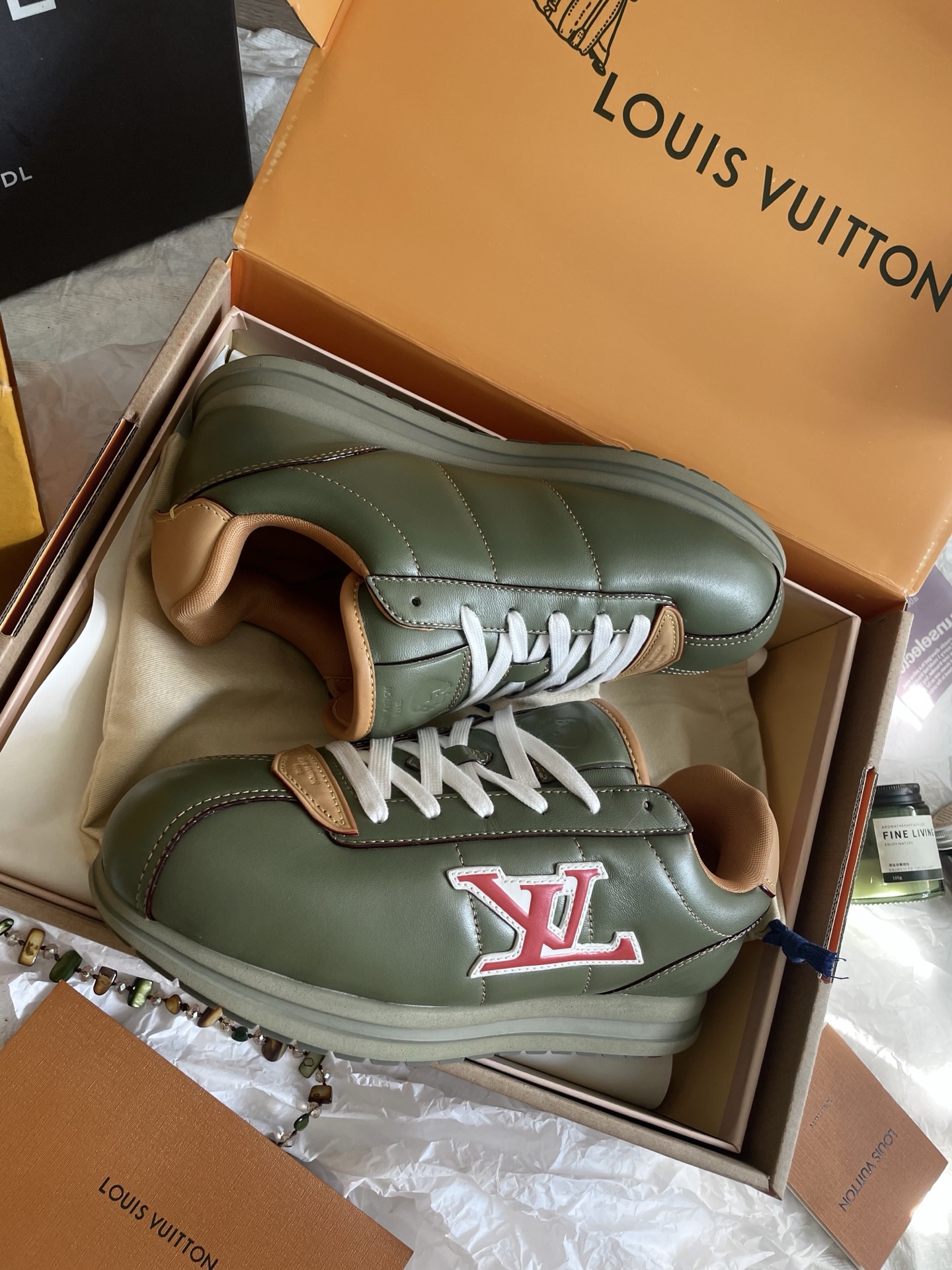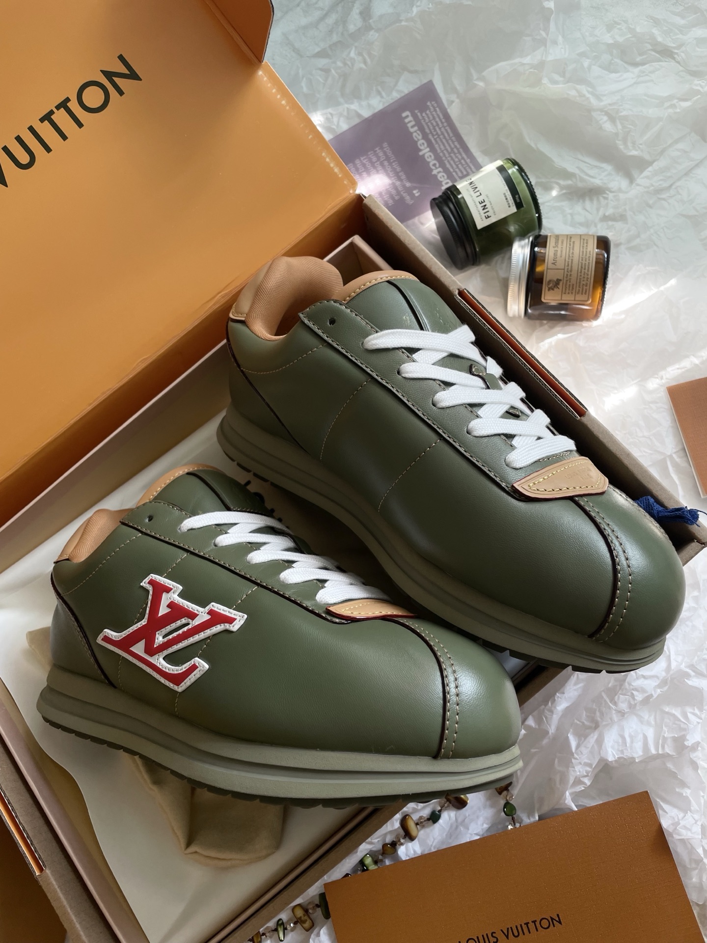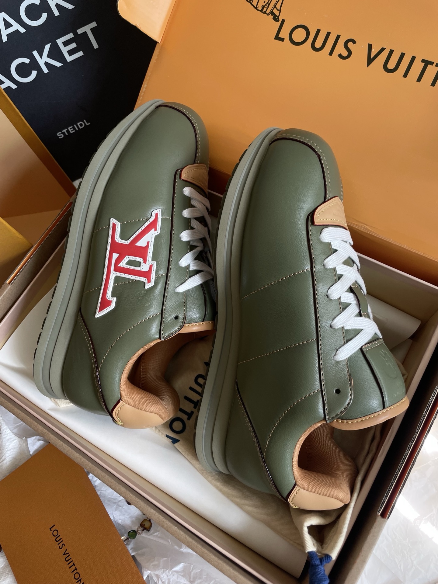 这款鞋子是AAAAA 1:1 质量 (非常棒). 使用了和原版一模一样的材料. 商标部分也保持了和路易威登/Louis Vuitton一样. 图片拍摄是实物鞋子拍摄, 您所收到的实物保证和我们图片一模一样.
