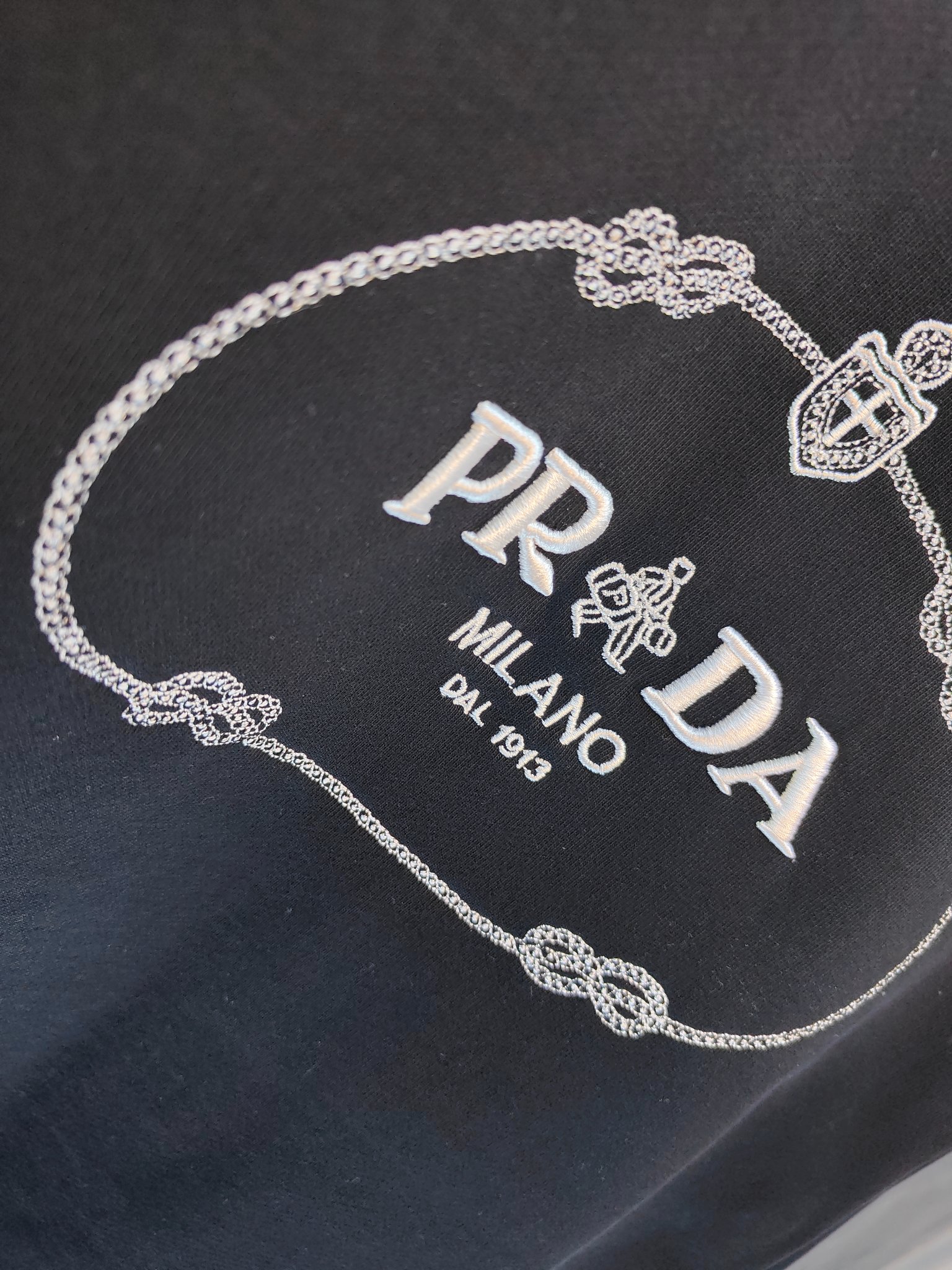 这款衣服是AAAAA 1:1 质量 (非常棒). 使用了和原版一模一样的材料. 商标部分也保持了和普拉达/Prada一样. 图片拍摄是实物衣服拍摄, 您所收到的实物保证和我们图片一模一样.