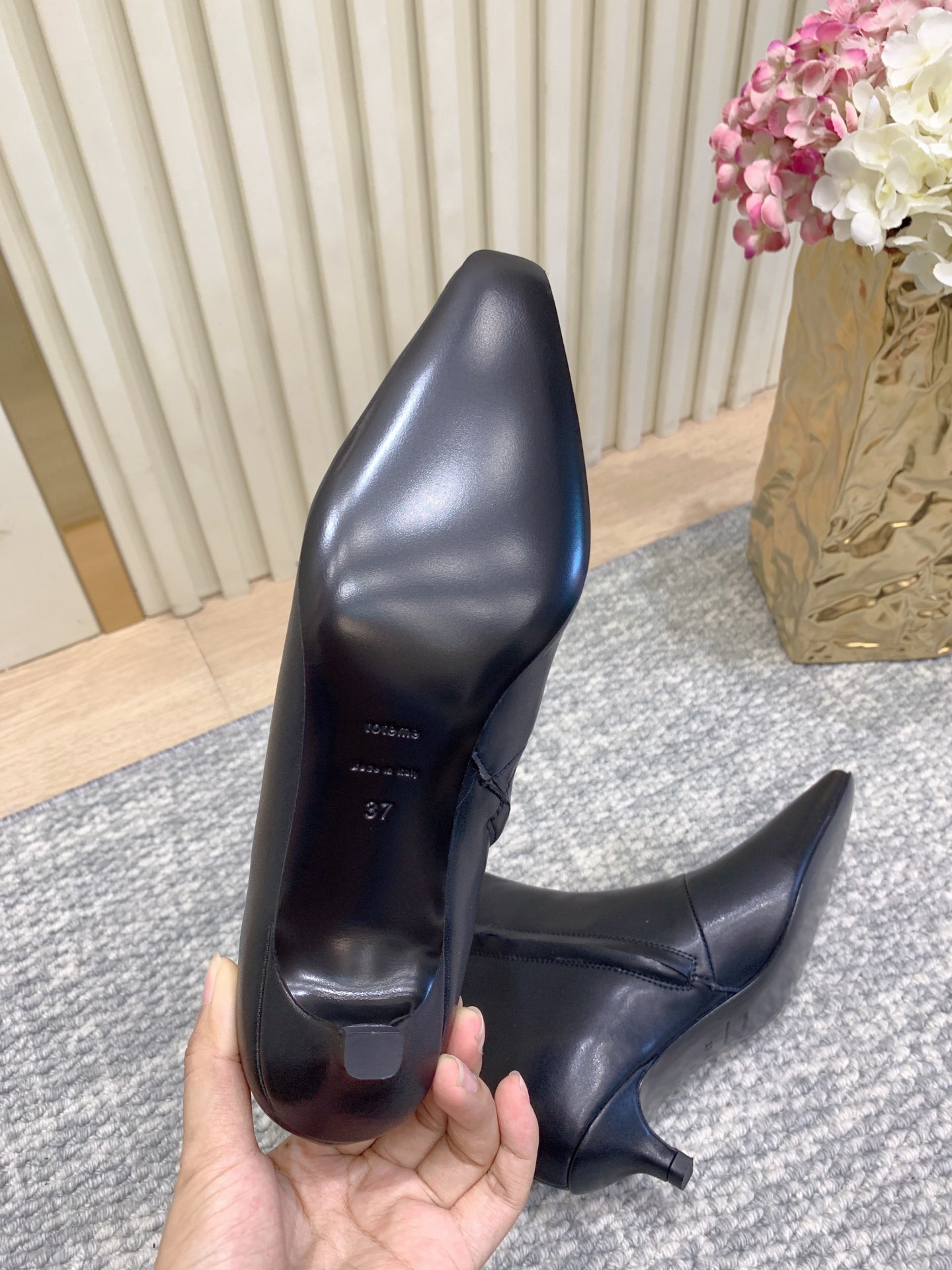 这款鞋子是AAAAA 1:1 质量 (非常棒). 使用了和原版一模一样的材料. 商标部分也保持了和Toteme一样. 图片拍摄是实物鞋子拍摄, 您所收到的实物保证和我们图片一模一样.