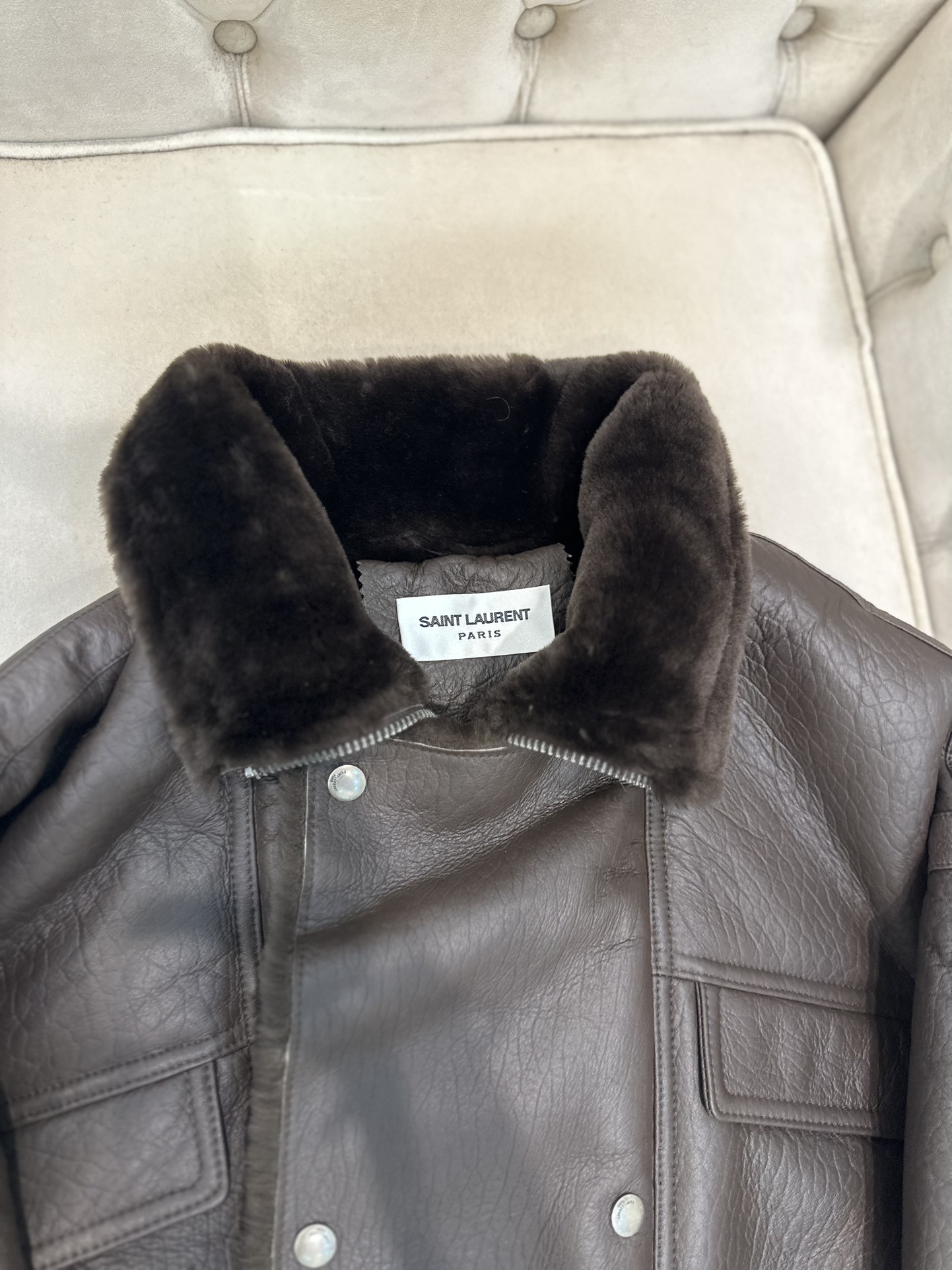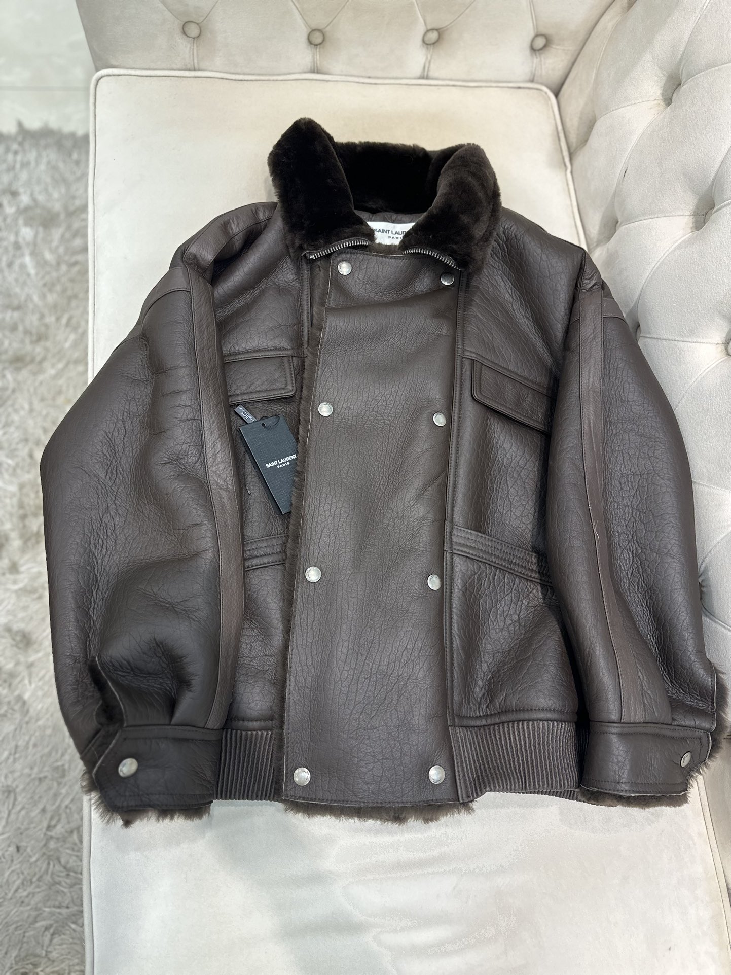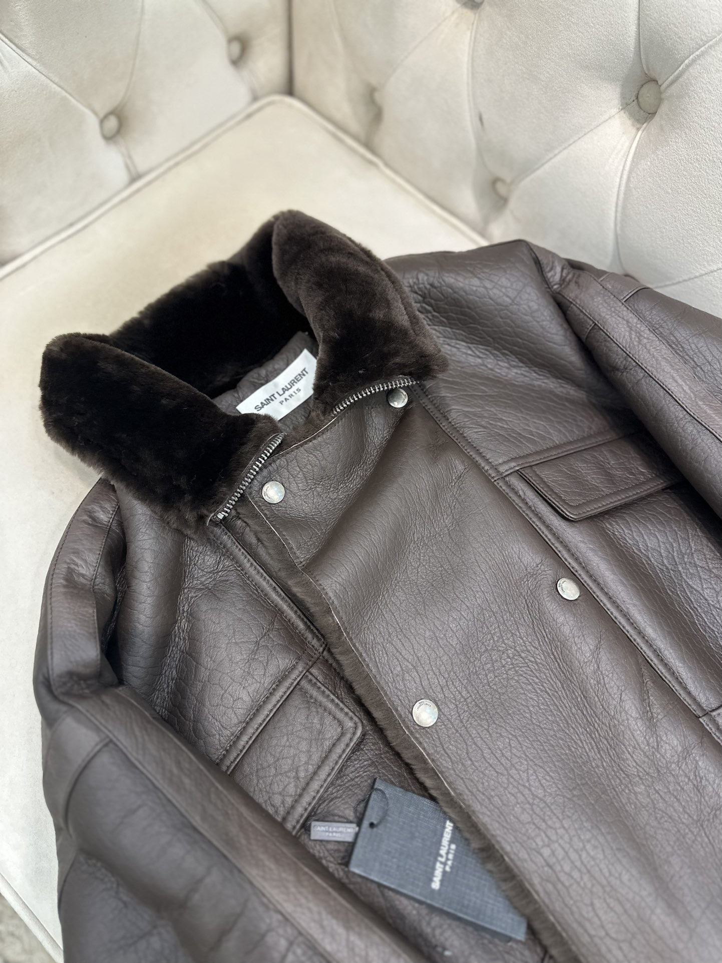 这款衣服是AAAAA 1:1 质量 (非常棒). 使用了和原版一模一样的材料. 商标部分也保持了和圣罗兰/Saint Laurent一样. 图片拍摄是实物衣服拍摄, 您所收到的实物保证和我们图片一模一样.