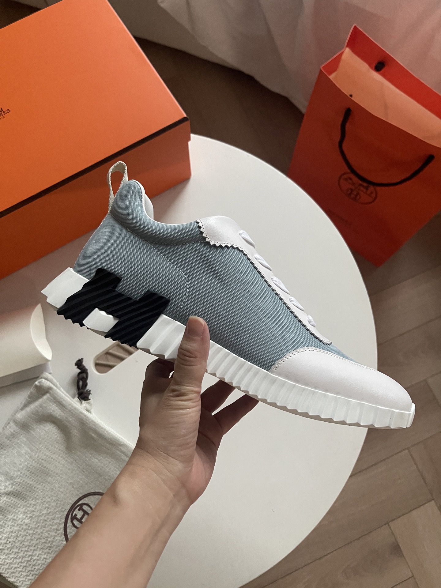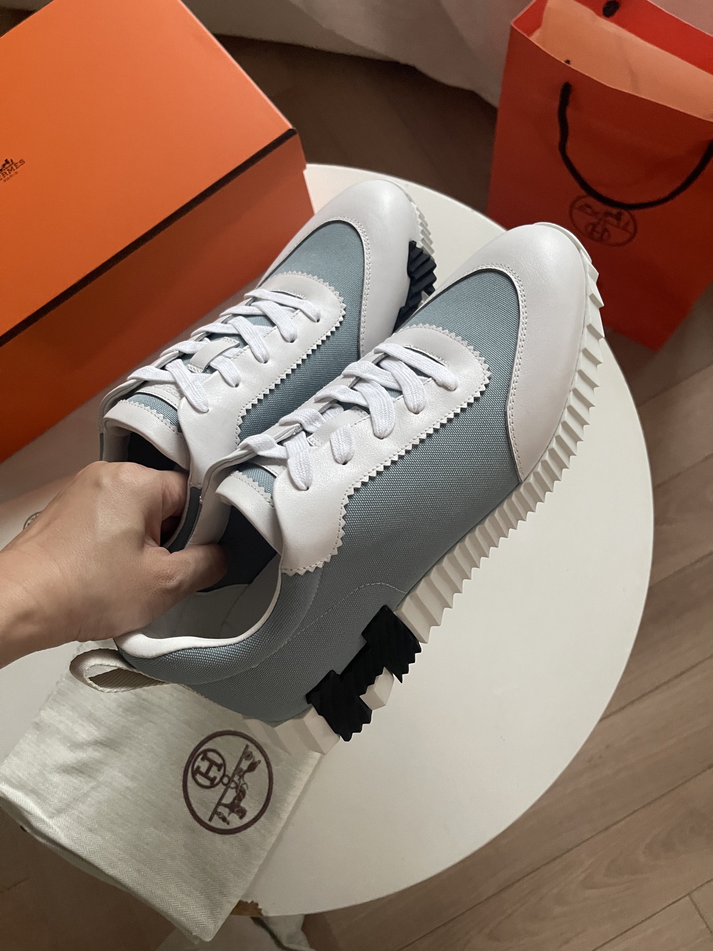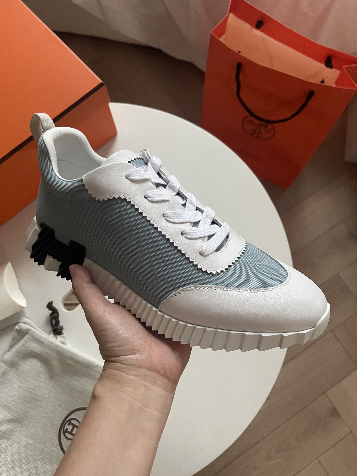 这款鞋子是AAAAA 1:1 质量 (非常棒). 使用了和原版一模一样的材料. 商标部分也保持了和爱马仕/Hermes一样. 图片拍摄是实物鞋子拍摄, 您所收到的实物保证和我们图片一模一样.