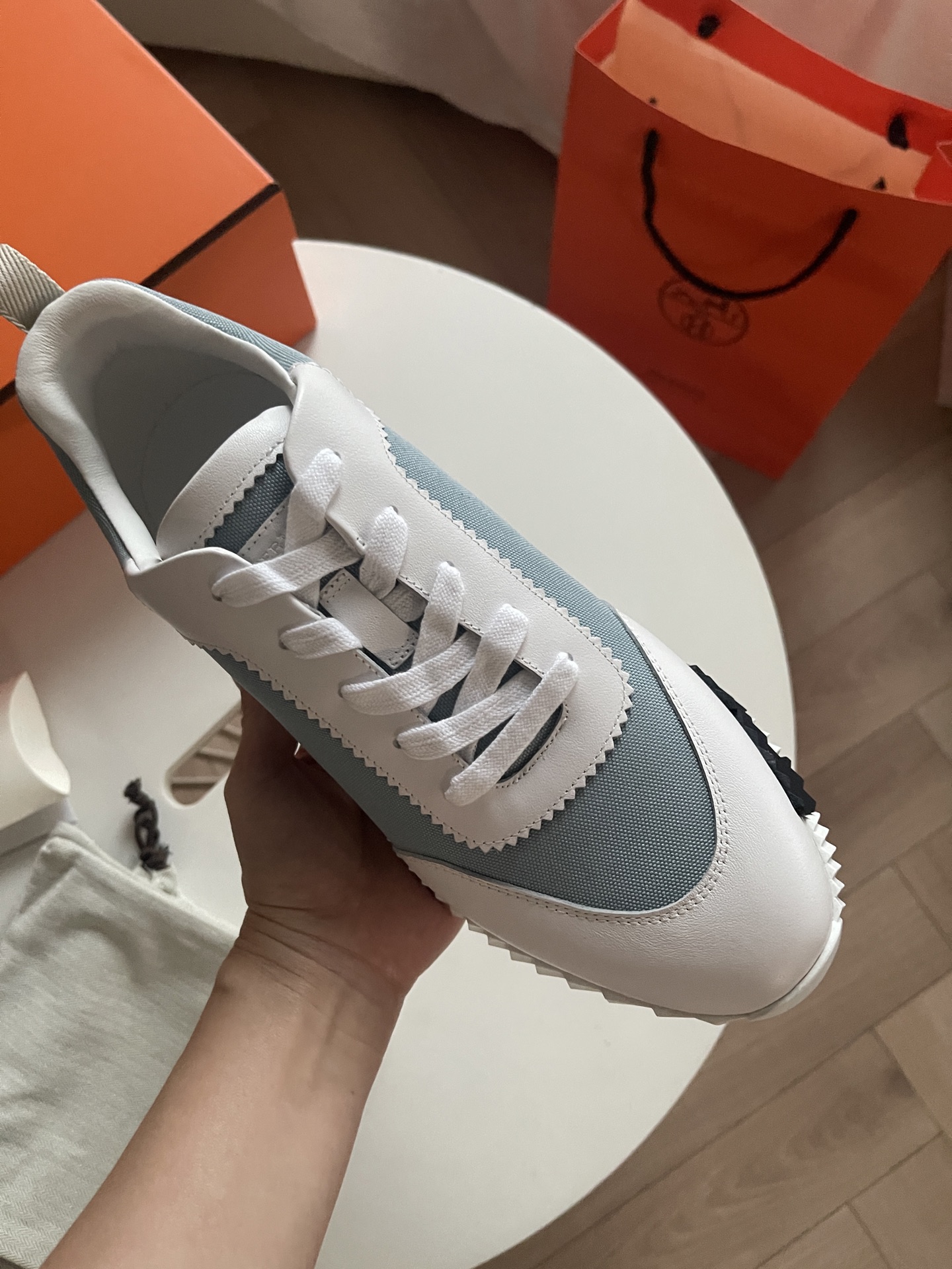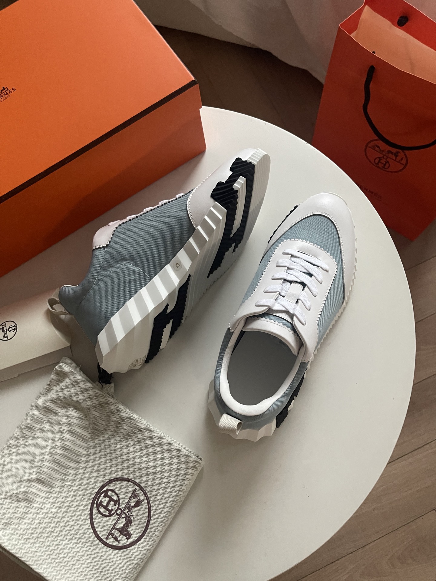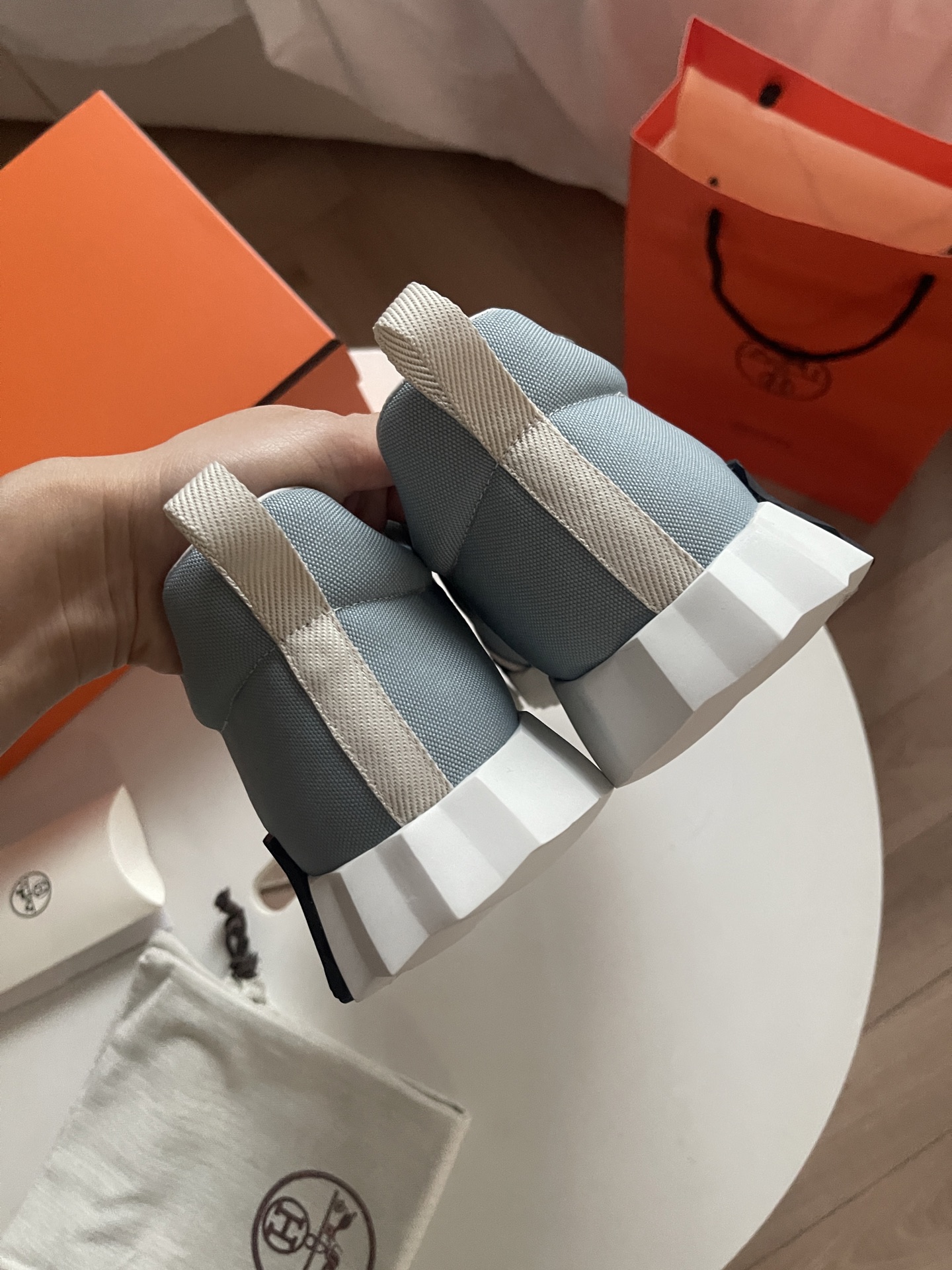 这款鞋子是AAAAA 1:1 质量 (非常棒). 使用了和原版一模一样的材料. 商标部分也保持了和爱马仕/Hermes一样. 图片拍摄是实物鞋子拍摄, 您所收到的实物保证和我们图片一模一样.