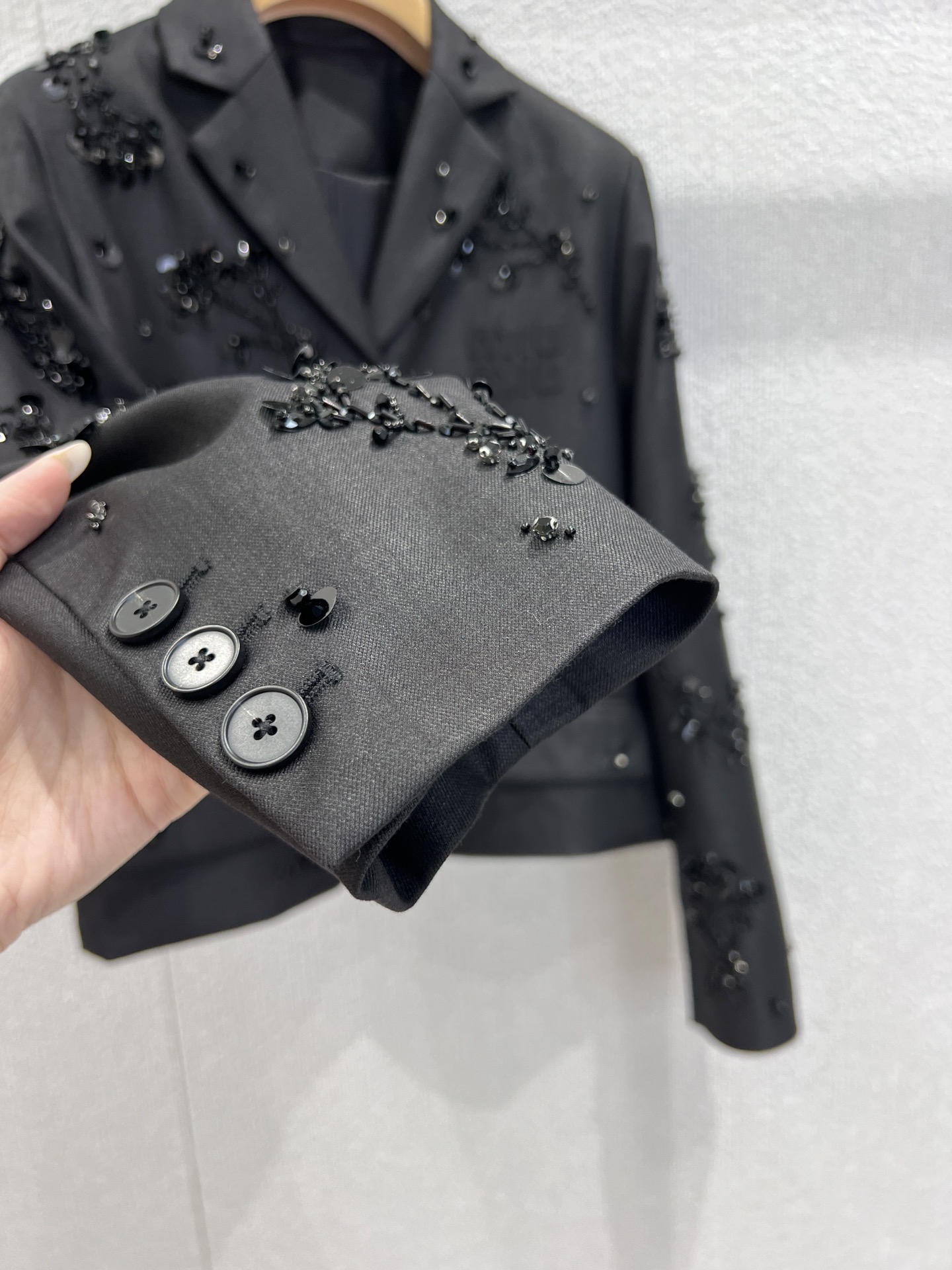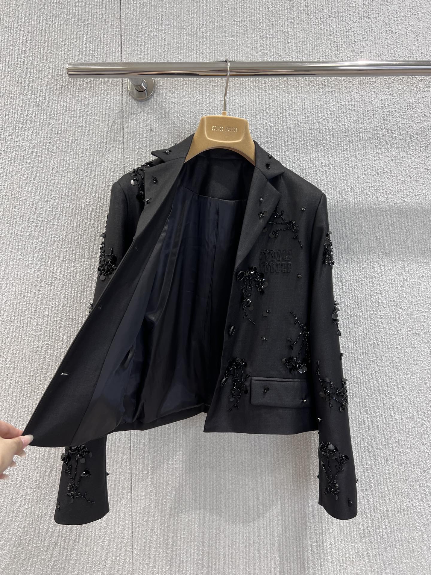 这款衣服是AAAAA 1:1 质量 (非常棒). 使用了和原版一模一样的材料. 商标部分也保持了和缪缪/Miu Miu一样. 图片拍摄是实物衣服拍摄, 您所收到的实物保证和我们图片一模一样.