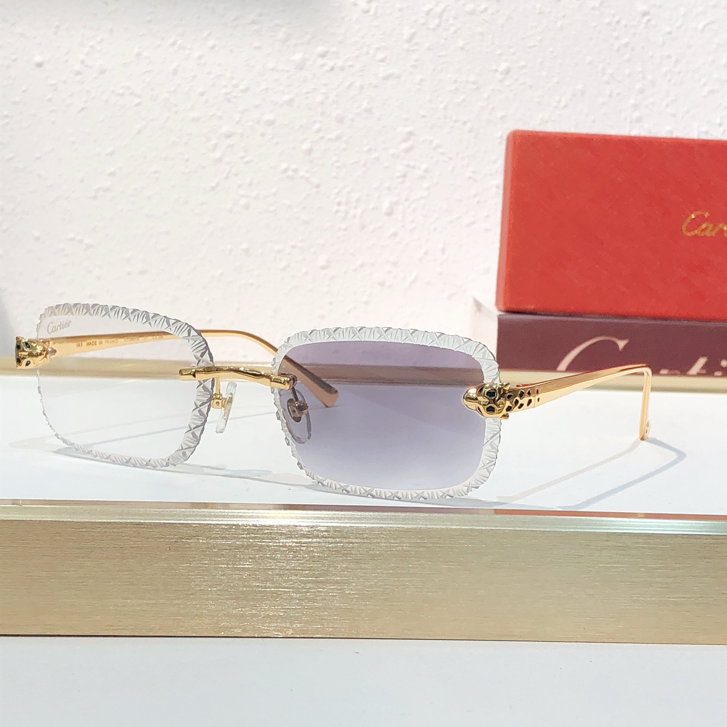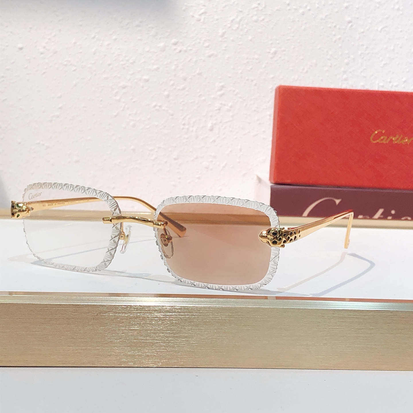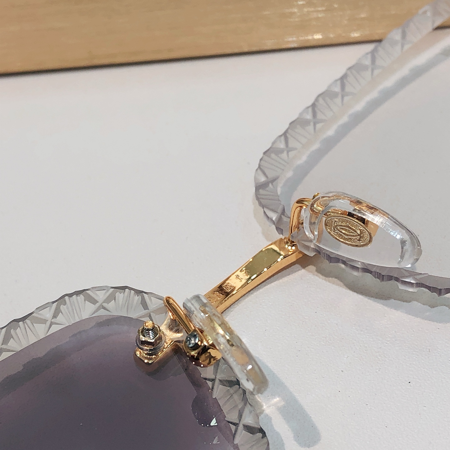 这款太阳眼镜是AAAAA 1:1 质量 (非常棒). 使用了和原版一模一样的材料. 商标部分也保持了和卡地亚/Cartier一样. 图片拍摄是实物太阳眼镜拍摄, 您所收到的实物保证和我们图片一模一样.