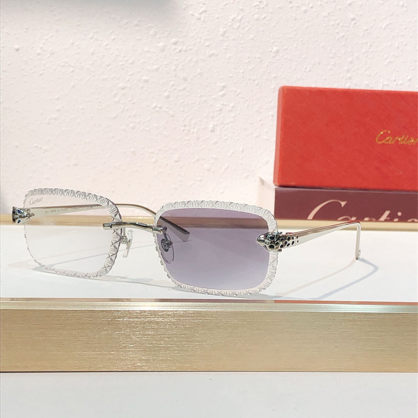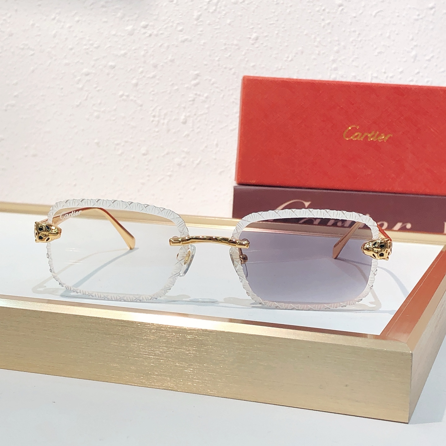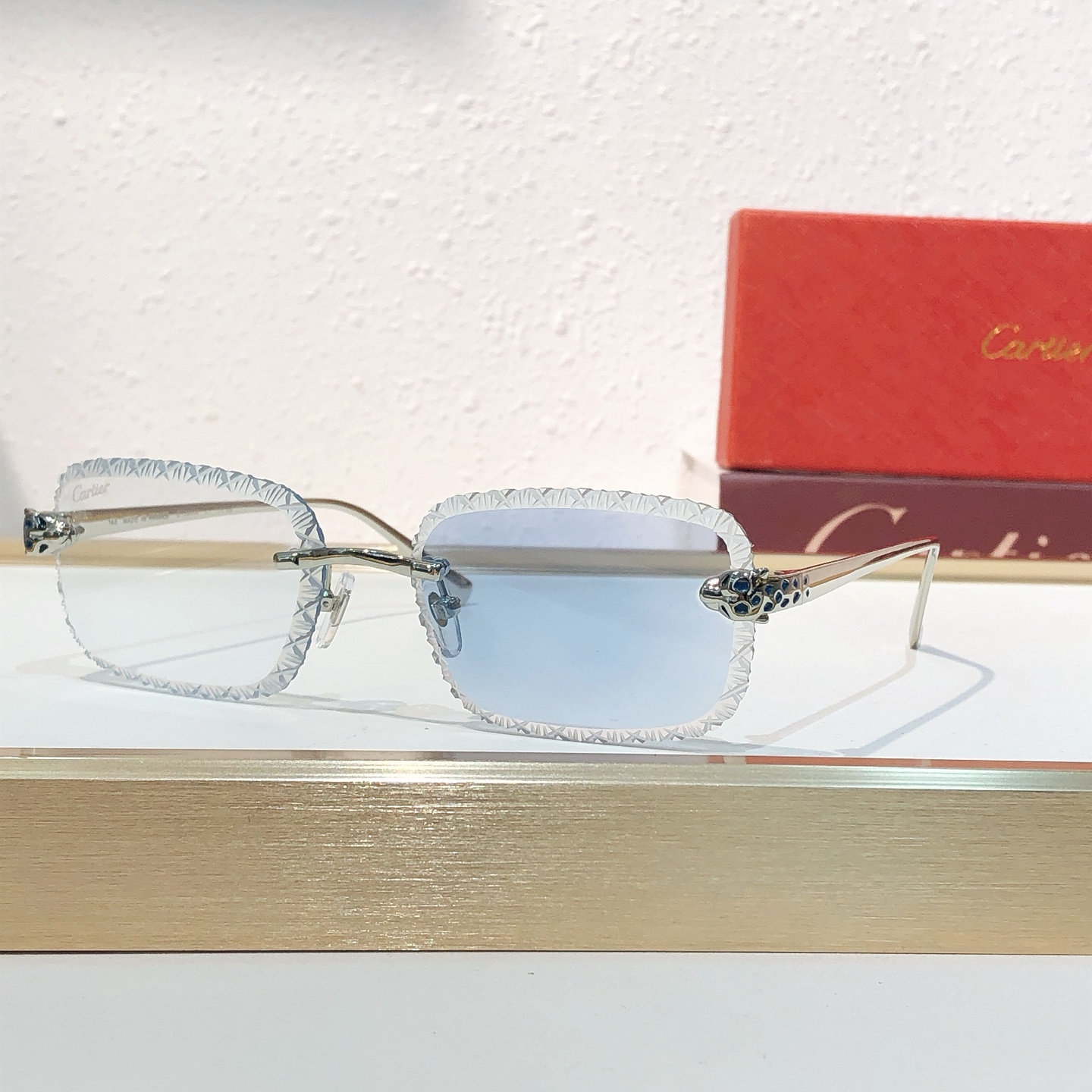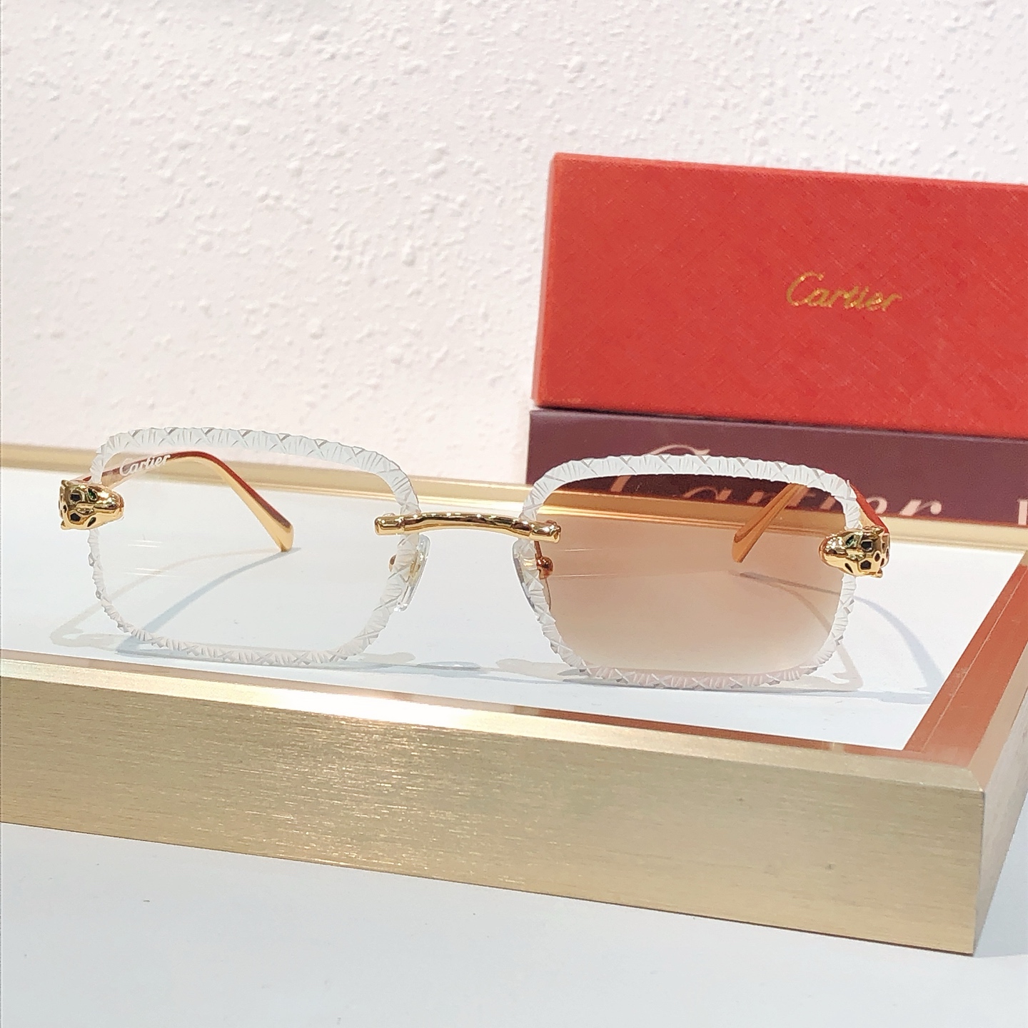 这款太阳眼镜是AAAAA 1:1 质量 (非常棒). 使用了和原版一模一样的材料. 商标部分也保持了和卡地亚/Cartier一样. 图片拍摄是实物太阳眼镜拍摄, 您所收到的实物保证和我们图片一模一样.