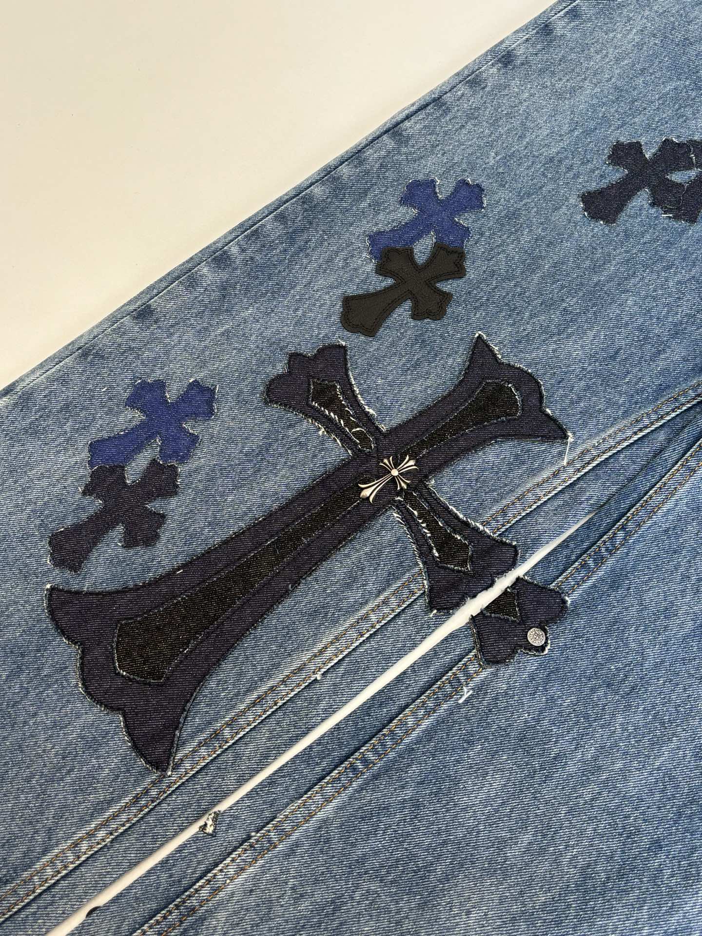 这款衣服是AAAAA 1:1 质量 (非常棒). 使用了和原版一模一样的材料. 商标部分也保持了和克罗心/Chrome Hearts一样. 图片拍摄是实物衣服拍摄, 您所收到的实物保证和我们图片一模一样.