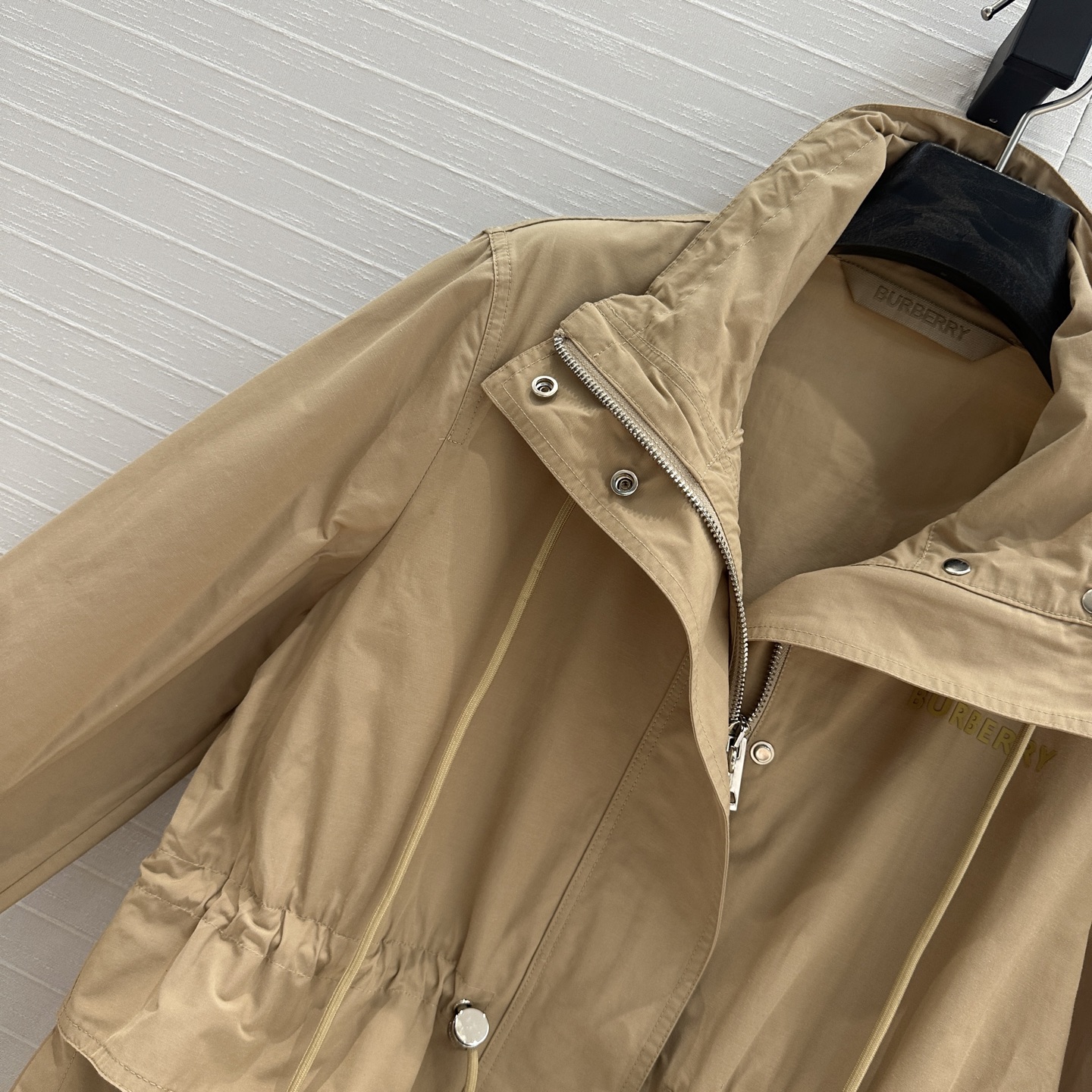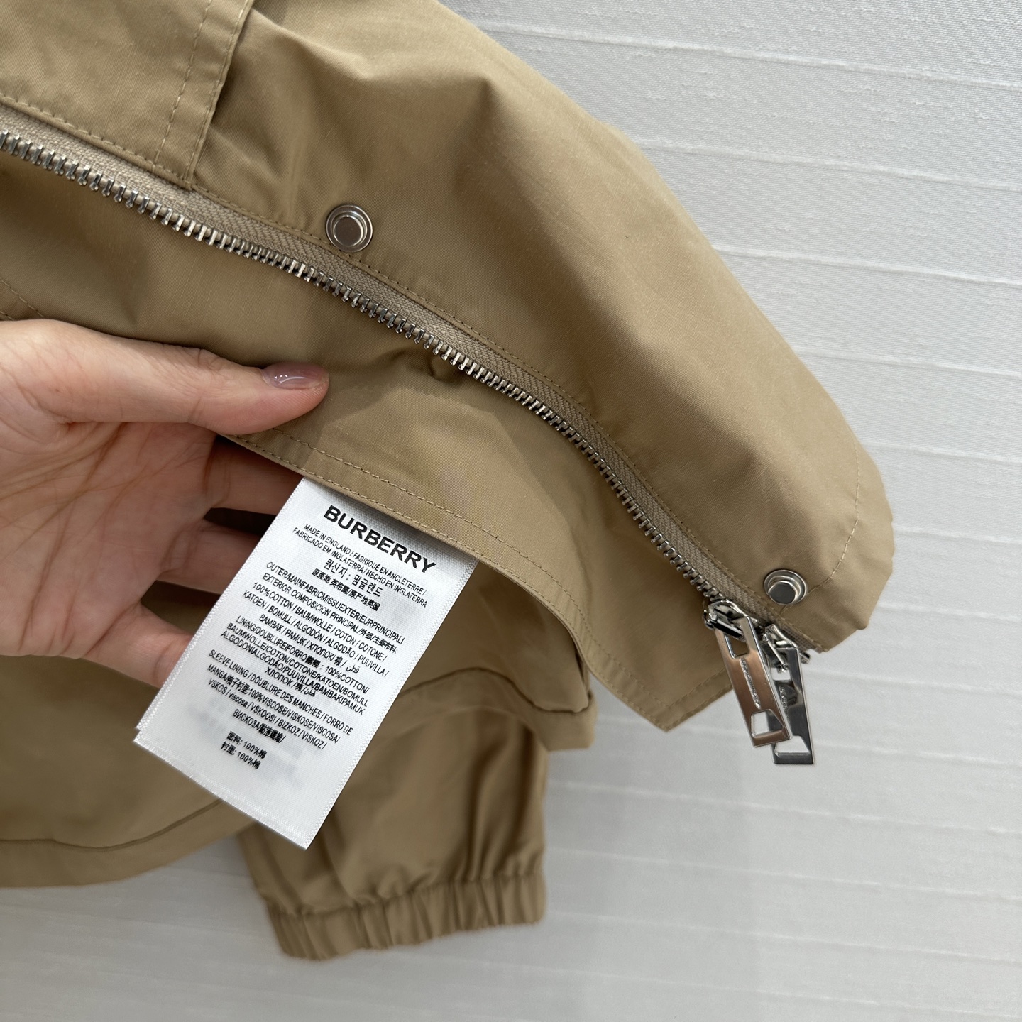 这款衣服是AAAAA 1:1 质量 (非常棒). 使用了和原版一模一样的材料. 商标部分也保持了和巴宝莉/Burberry一样. 图片拍摄是实物衣服拍摄, 您所收到的实物保证和我们图片一模一样.