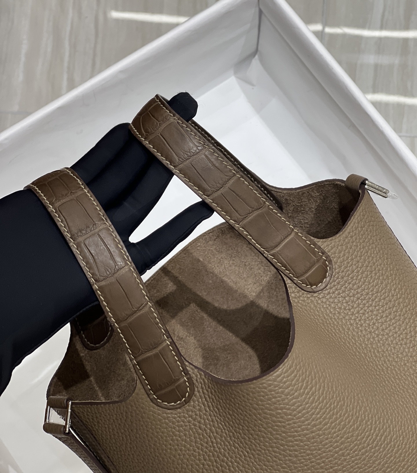 这款包包是AAAAA 1:1 质量 (非常棒). 使用了和原版一模一样的材料. 商标部分也保持了和爱马仕/Hermes一样. 图片拍摄是实物包包拍摄, 您所收到的实物保证和我们图片一模一样.