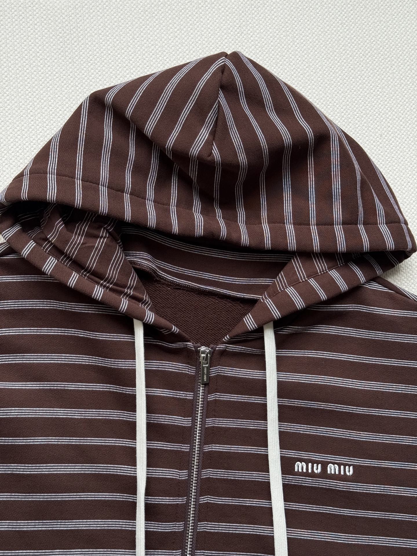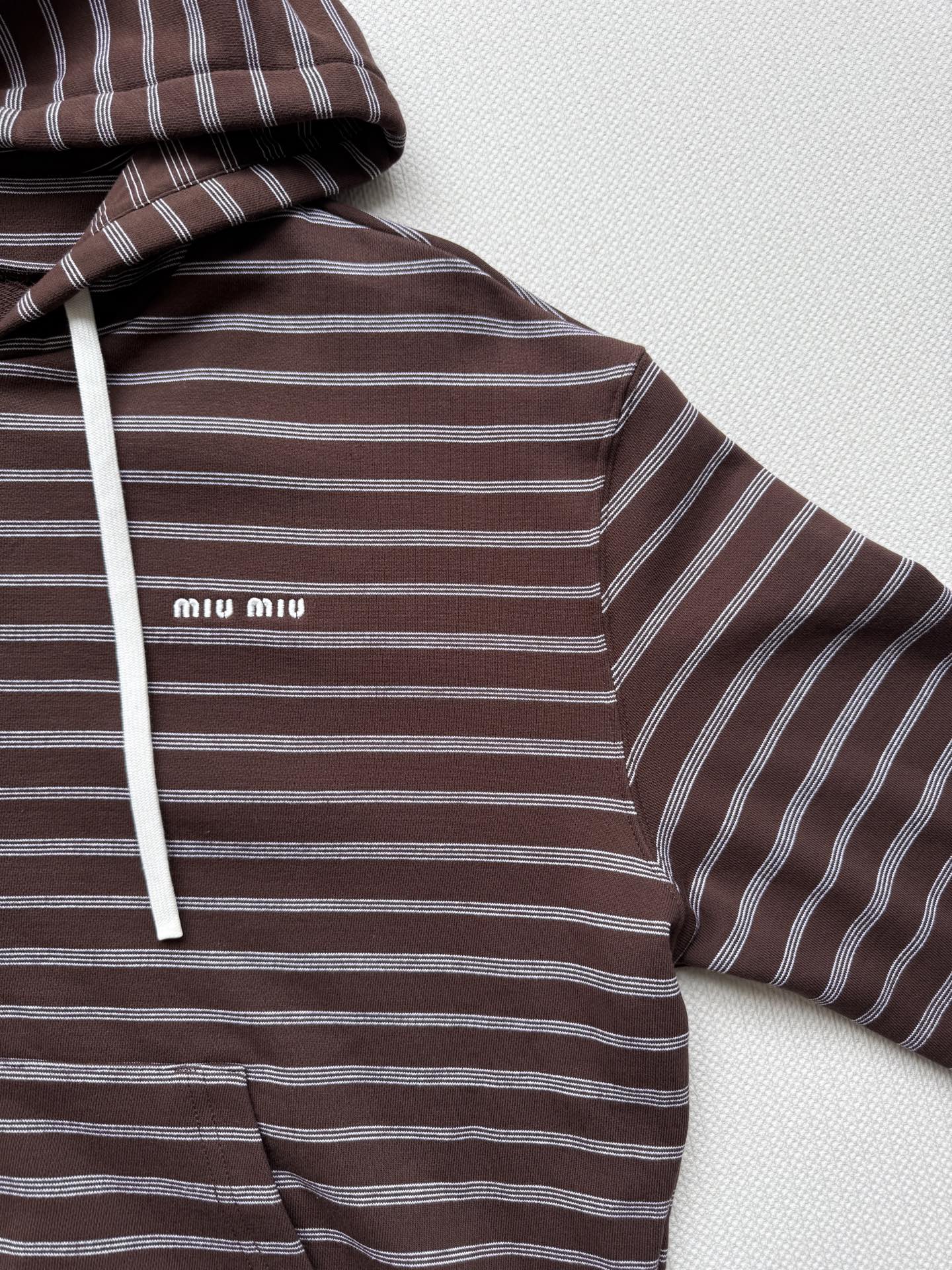 这款衣服是AAAAA 1:1 质量 (非常棒). 使用了和原版一模一样的材料. 商标部分也保持了和缪缪/Miu Miu一样. 图片拍摄是实物衣服拍摄, 您所收到的实物保证和我们图片一模一样.