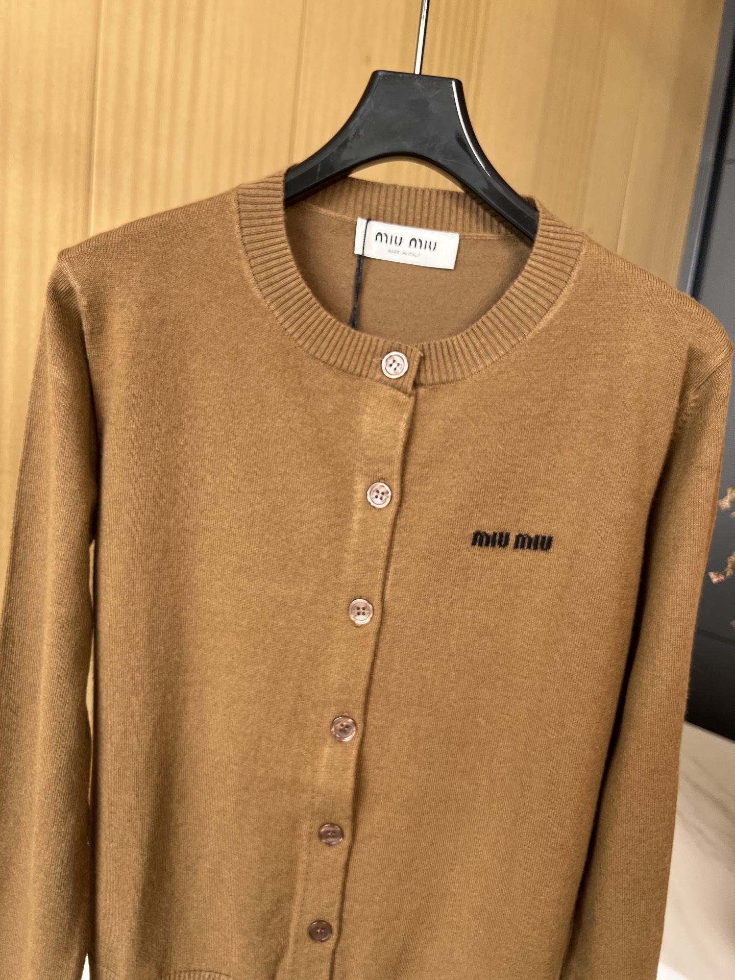 这款衣服是AAAAA 1:1 质量 (非常棒). 使用了和原版一模一样的材料. 商标部分也保持了和缪缪/Miu Miu一样. 图片拍摄是实物衣服拍摄, 您所收到的实物保证和我们图片一模一样.