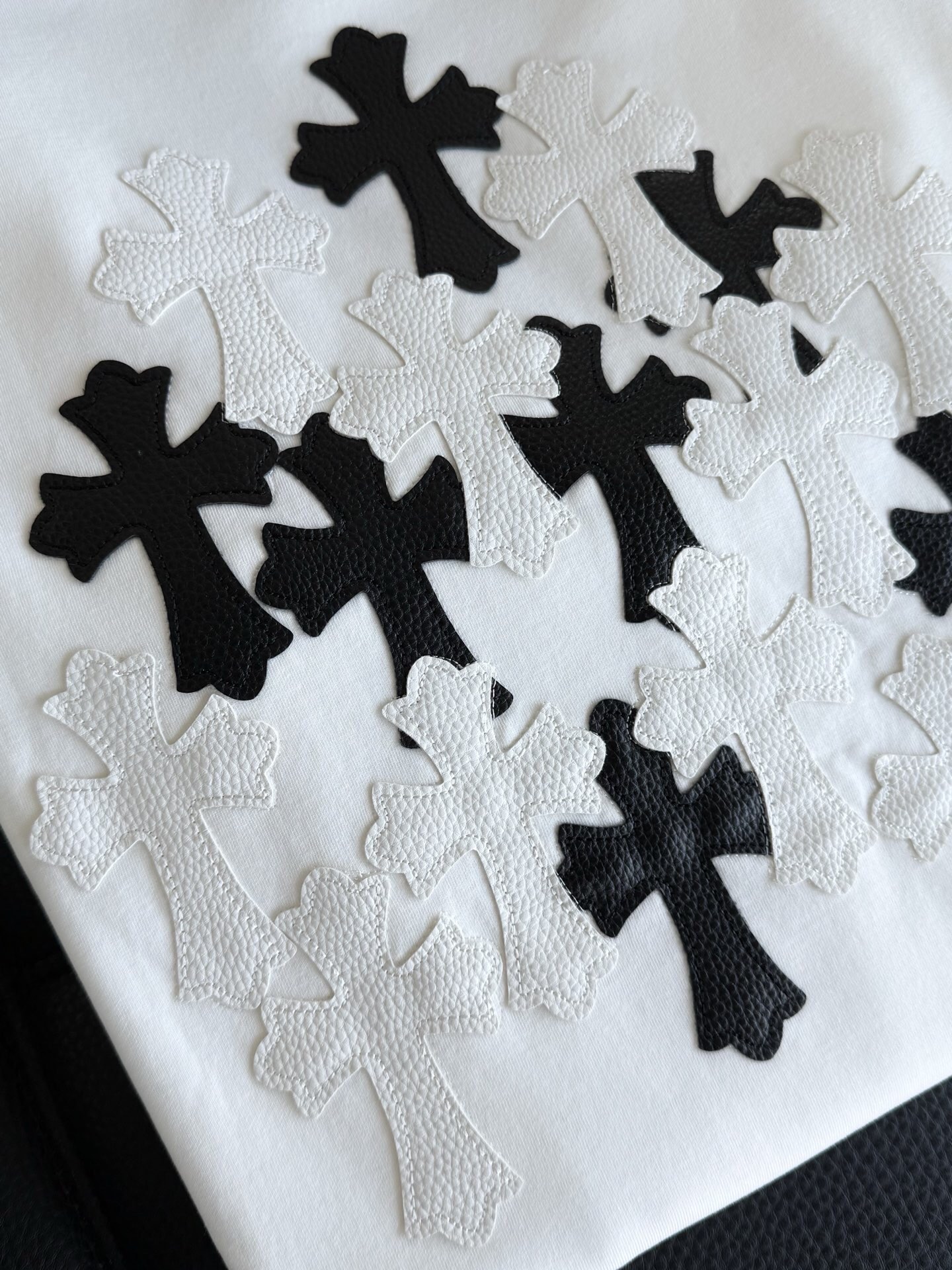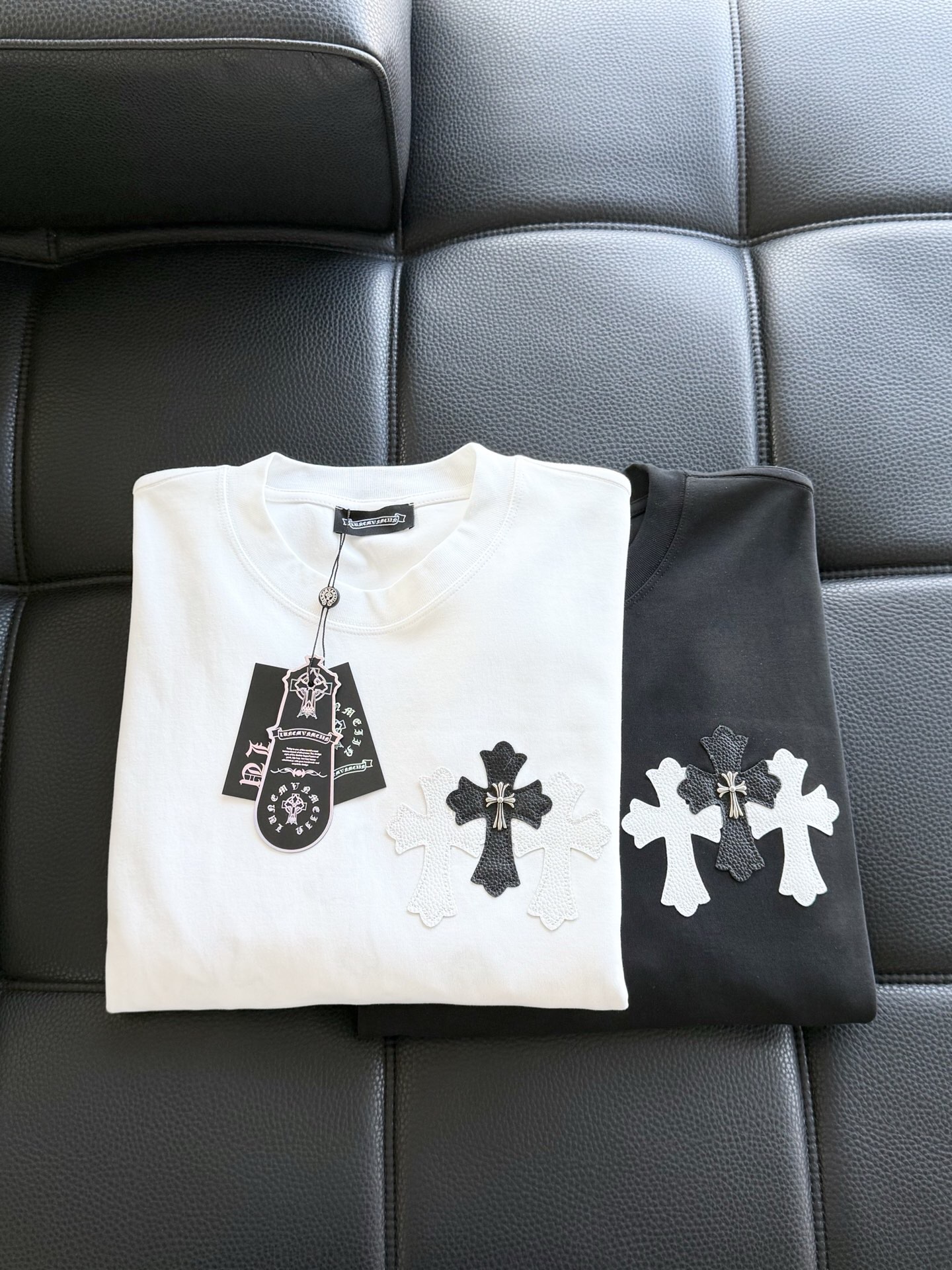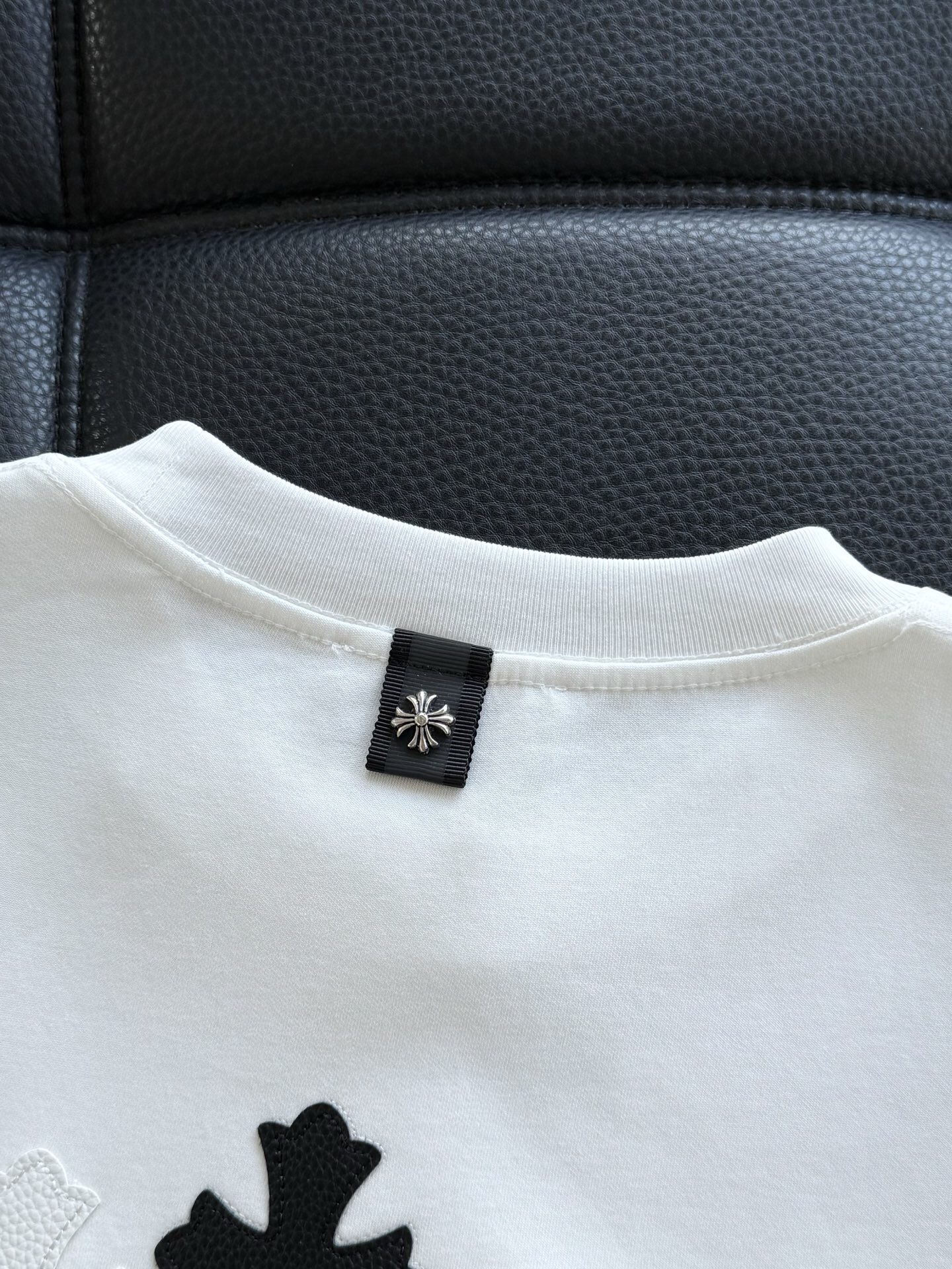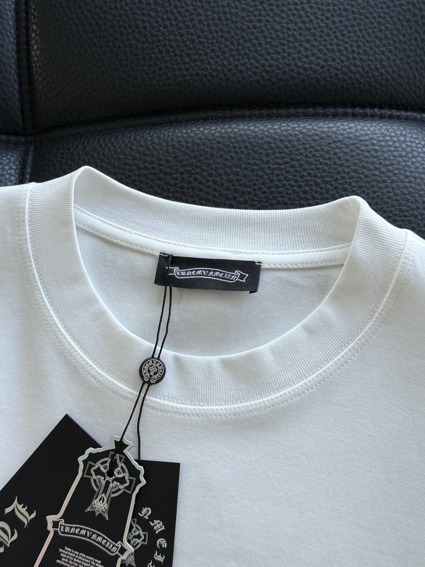 这款衣服是AAAAA 1:1 质量 (非常棒). 使用了和原版一模一样的材料. 商标部分也保持了和克罗心/Chrome Hearts一样. 图片拍摄是实物衣服拍摄, 您所收到的实物保证和我们图片一模一样.