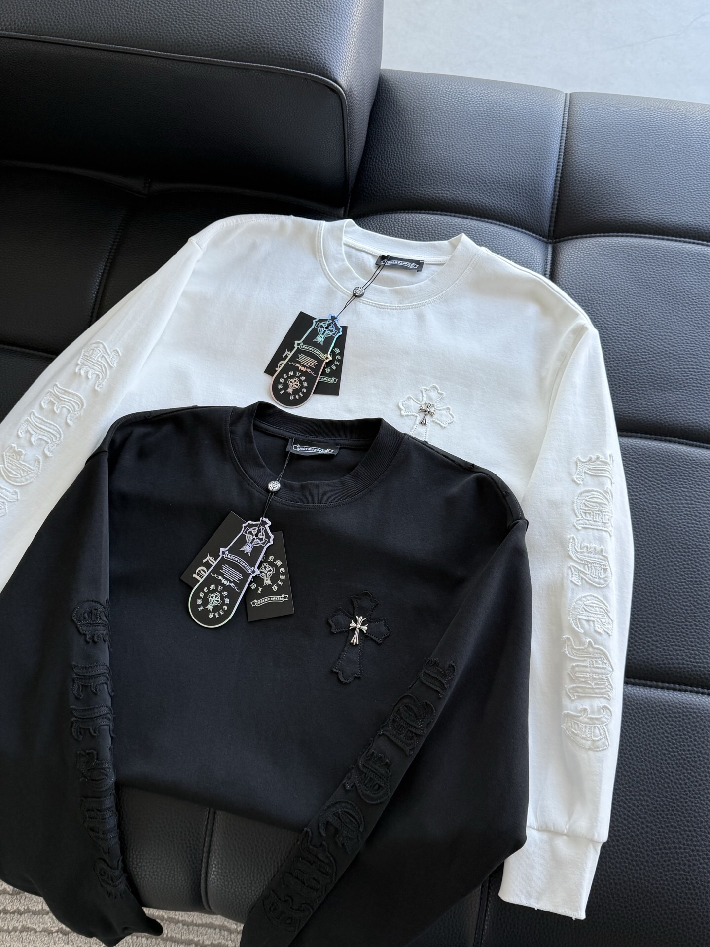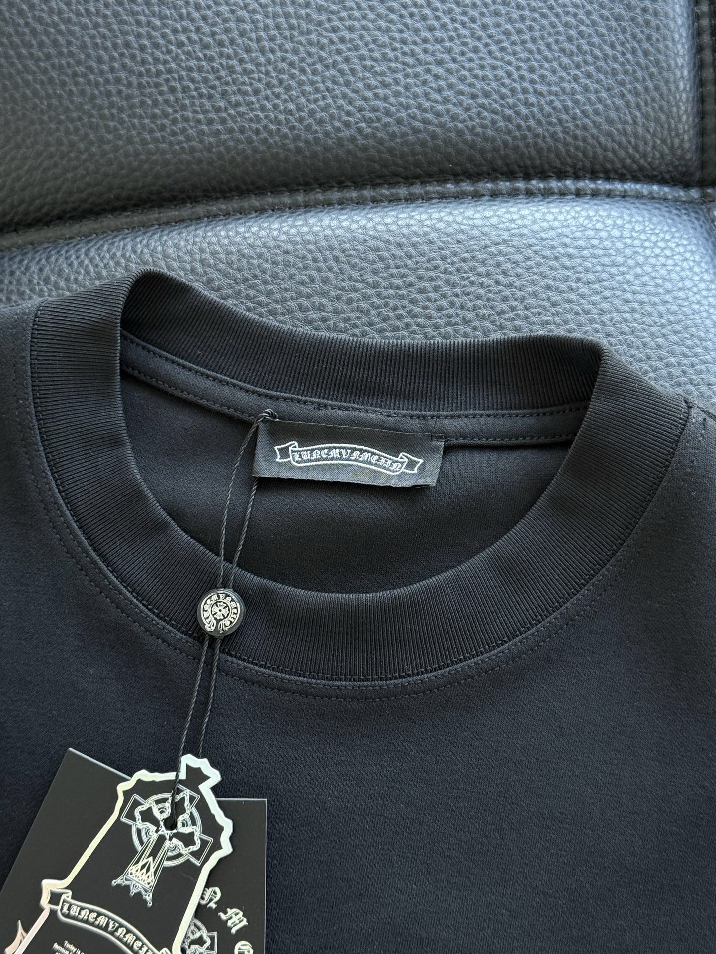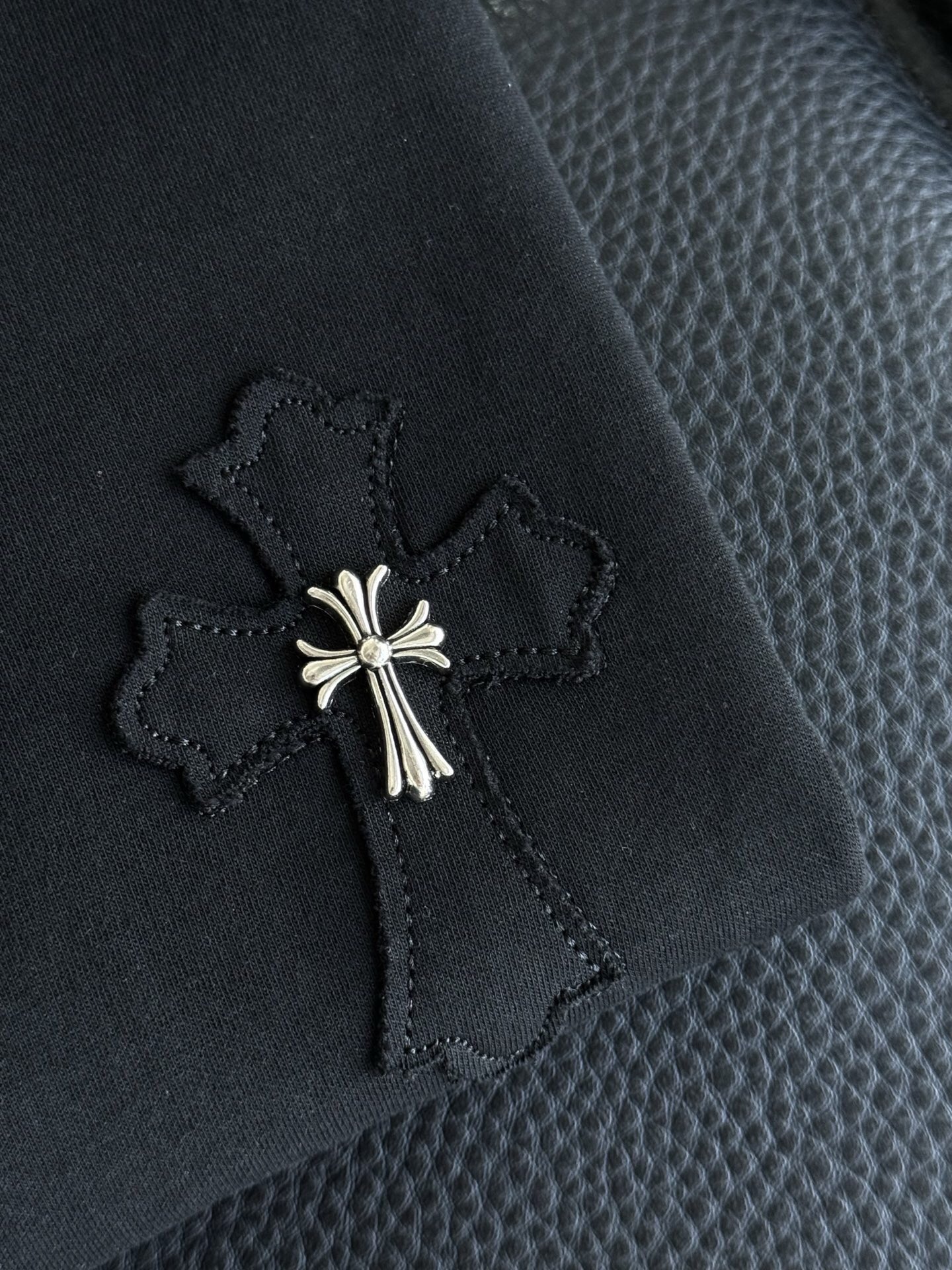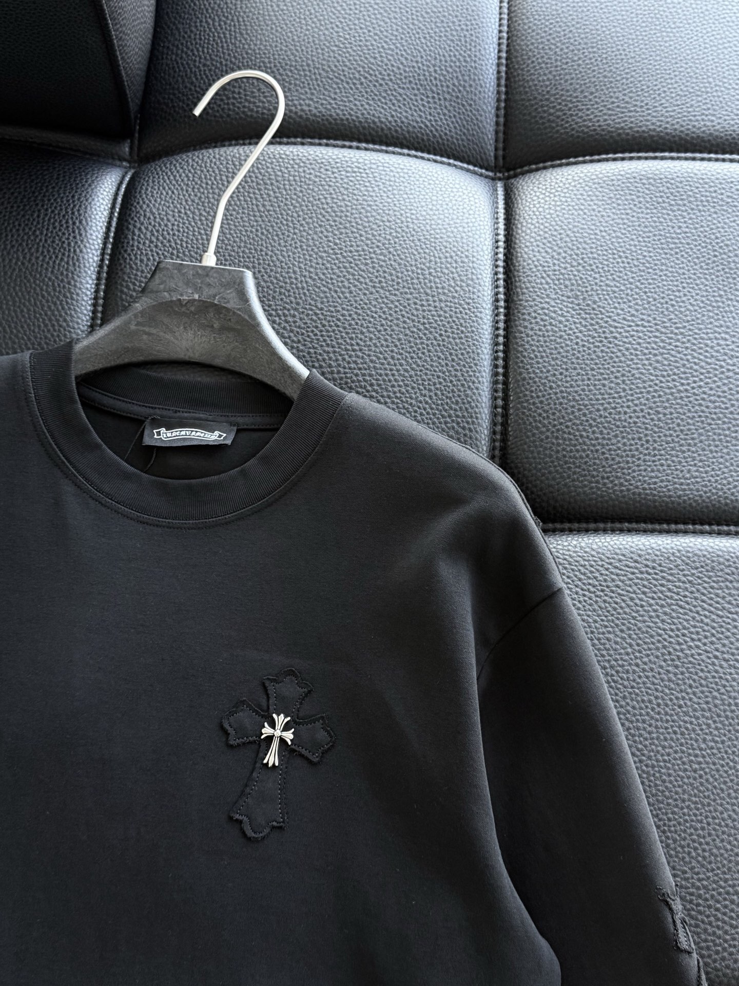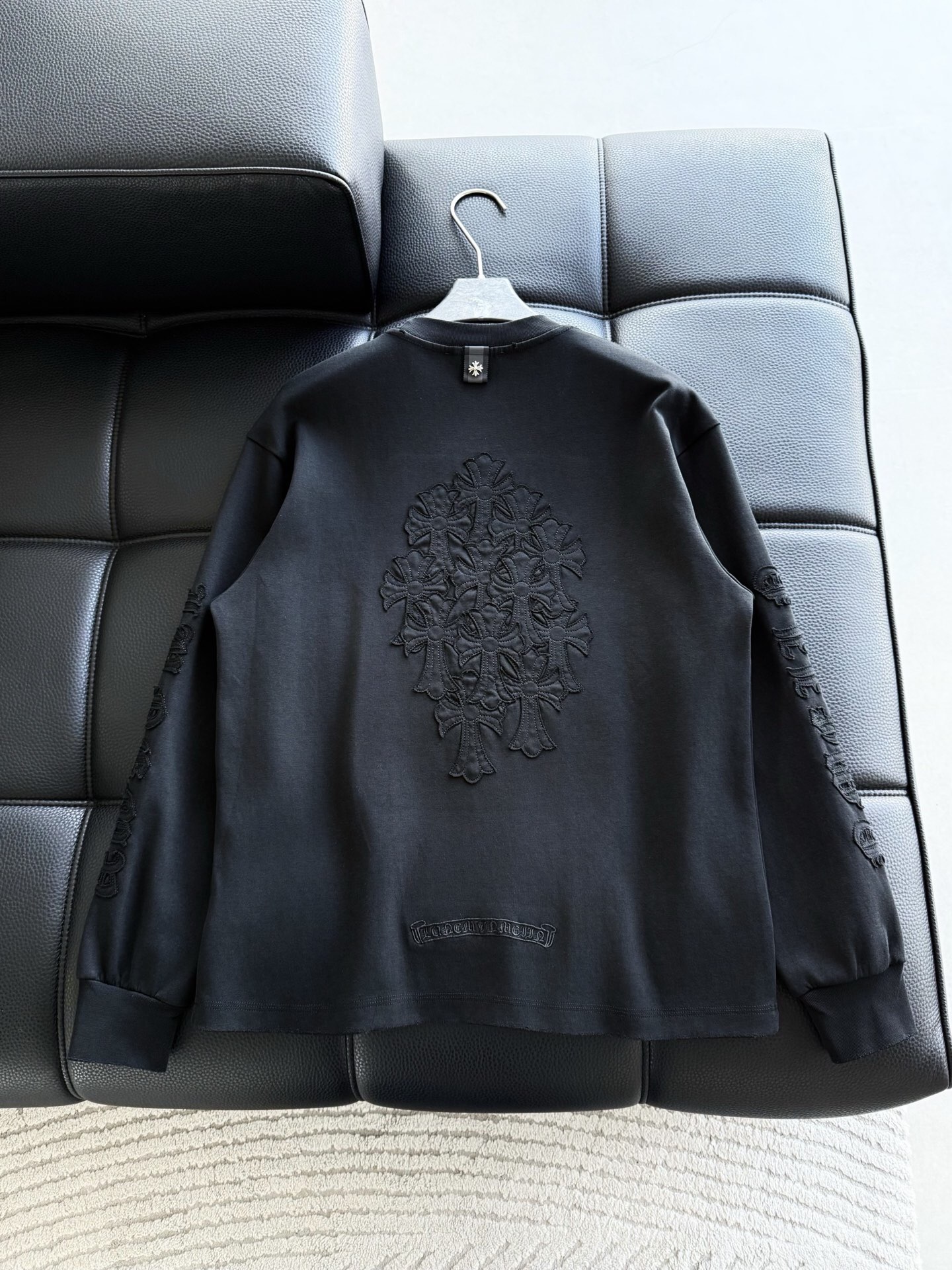 这款衣服是AAAAA 1:1 质量 (非常棒). 使用了和原版一模一样的材料. 商标部分也保持了和克罗心/Chrome Hearts一样. 图片拍摄是实物衣服拍摄, 您所收到的实物保证和我们图片一模一样.