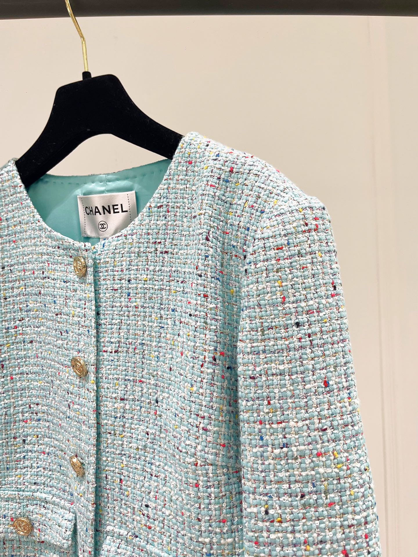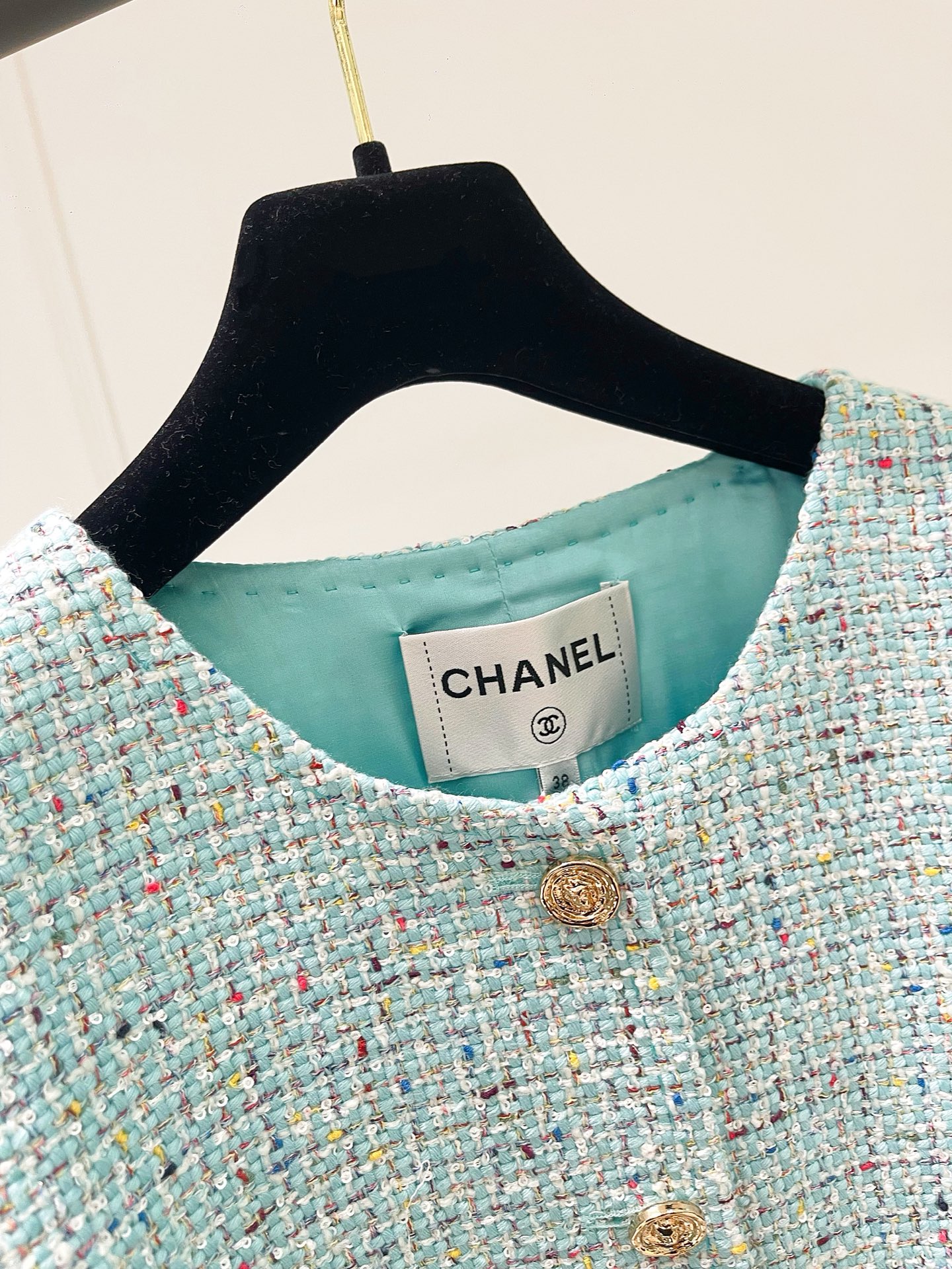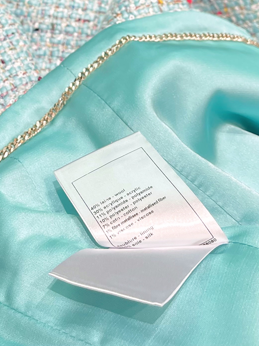 这款衣服是AAAAA 1:1 质量 (非常棒). 使用了和原版一模一样的材料. 商标部分也保持了和香奈儿/Chanel一样. 图片拍摄是实物衣服拍摄, 您所收到的实物保证和我们图片一模一样.