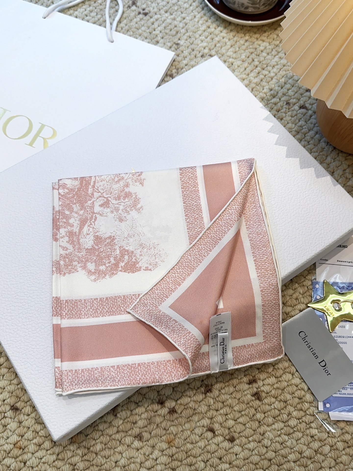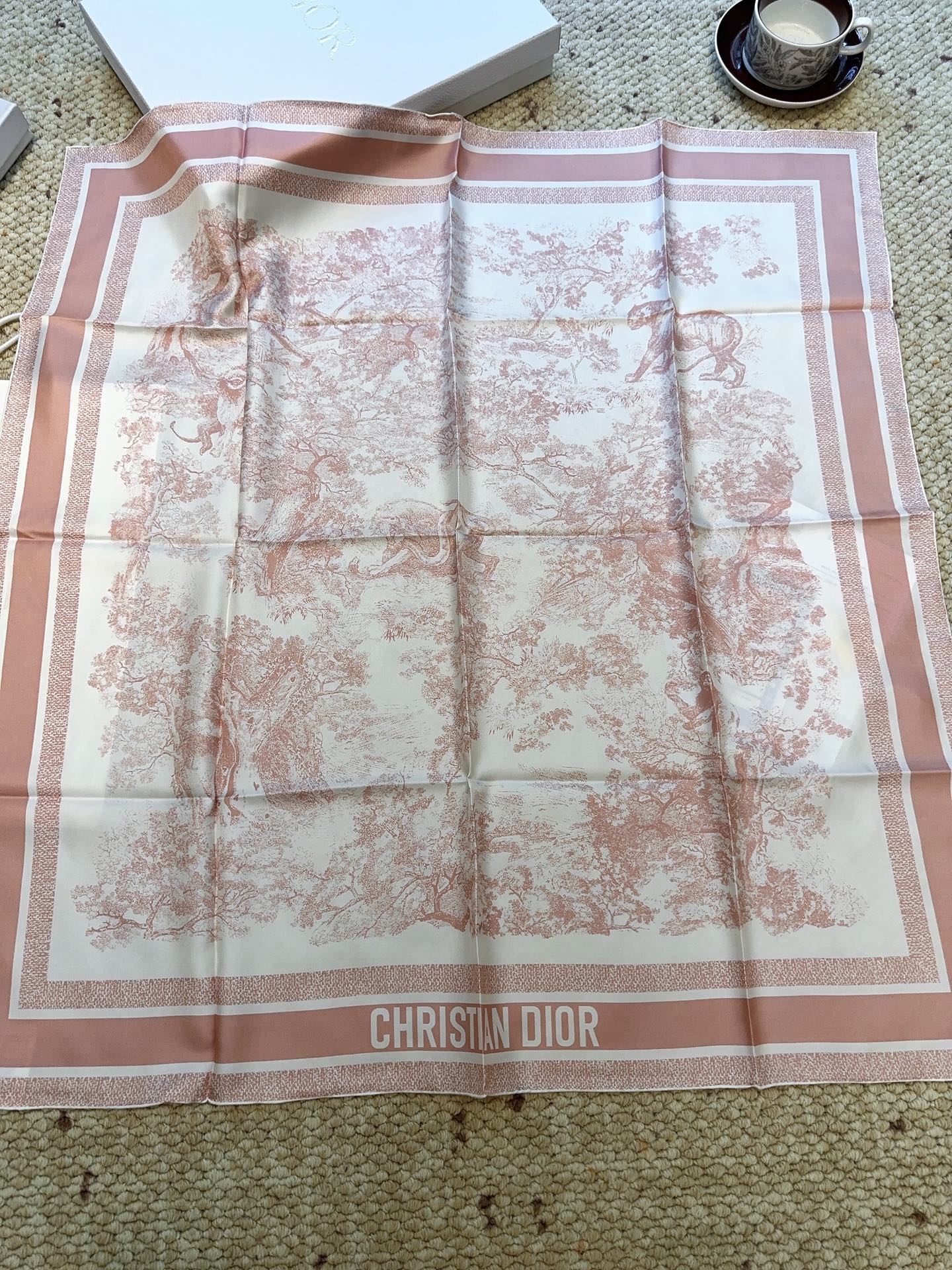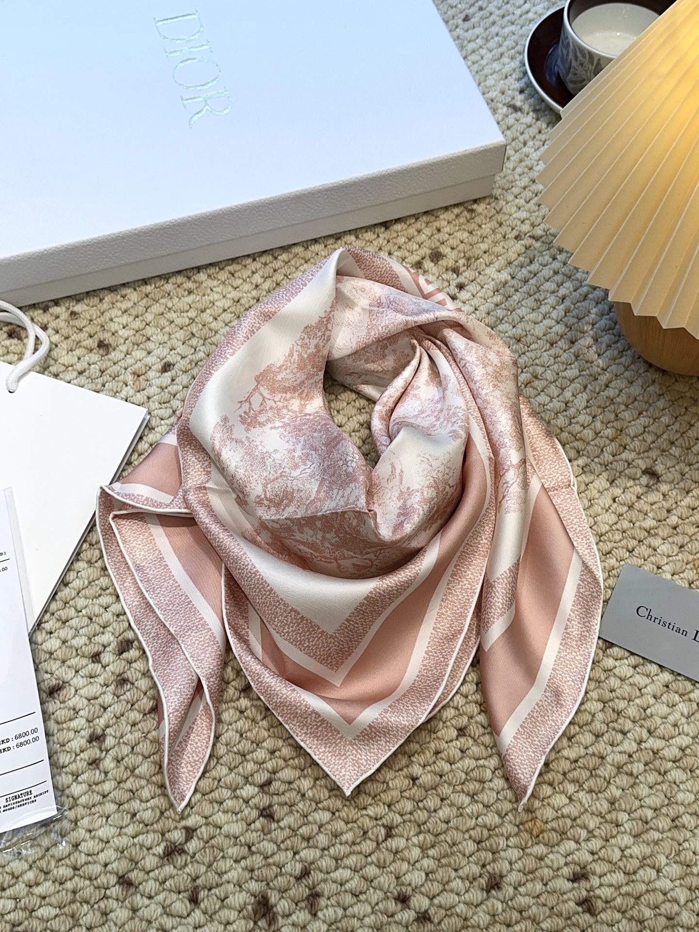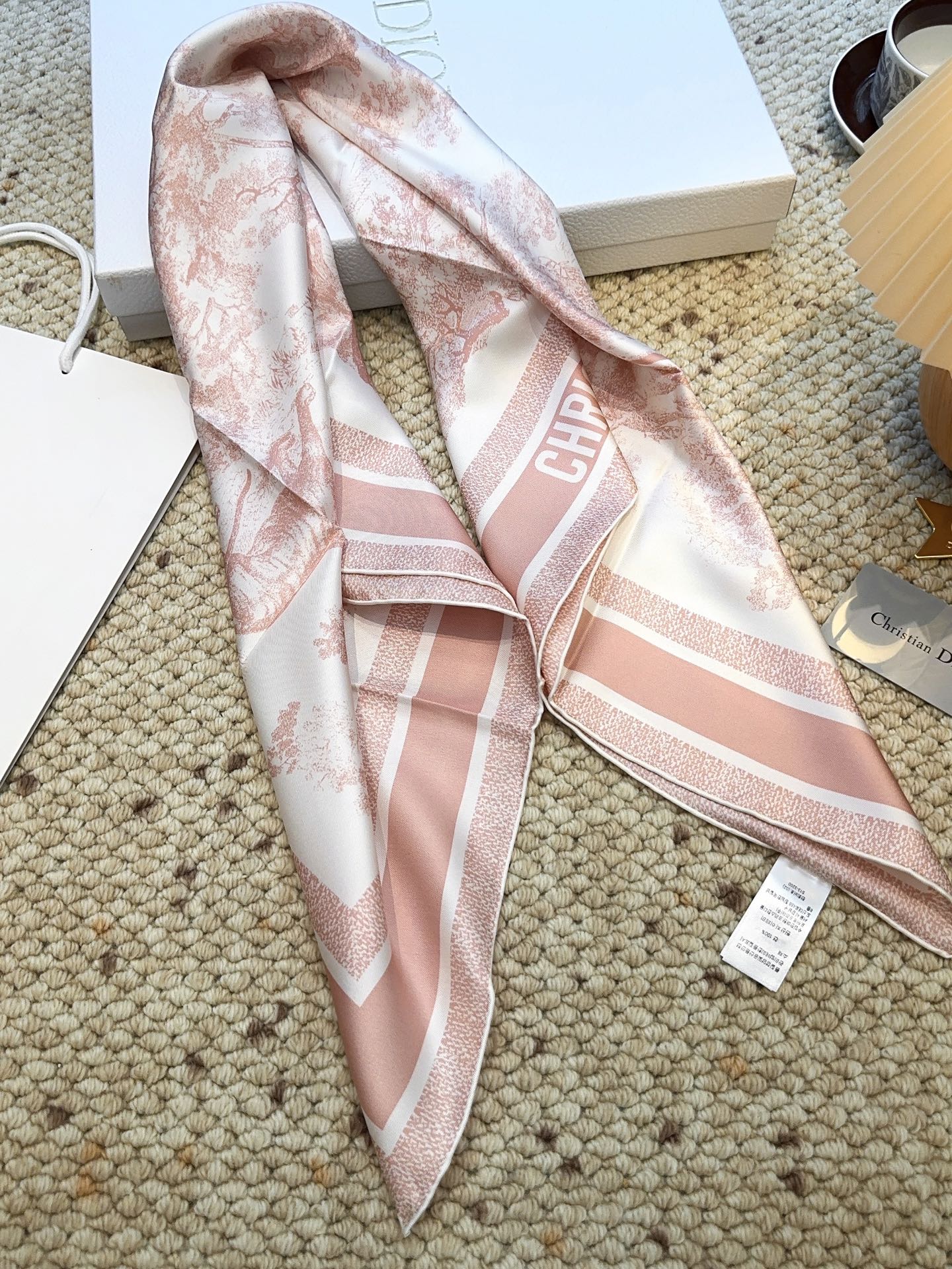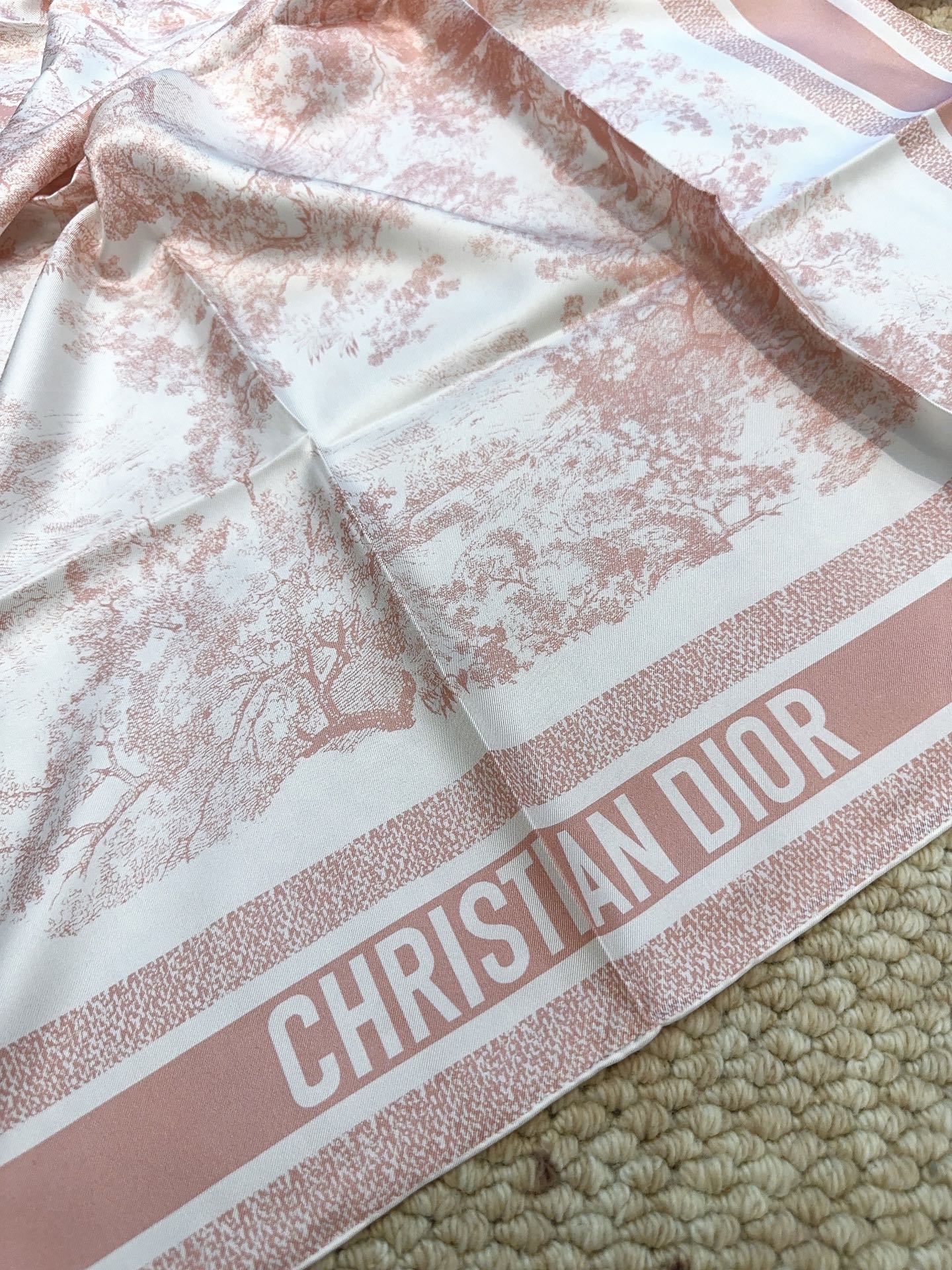 这款围巾是AAAAA 1:1 质量 (非常棒). 使用了和原版一模一样的材料. 商标部分也保持了和迪奥/Dior一样. 图片拍摄是实物围巾拍摄, 您所收到的实物保证和我们图片一模一样.