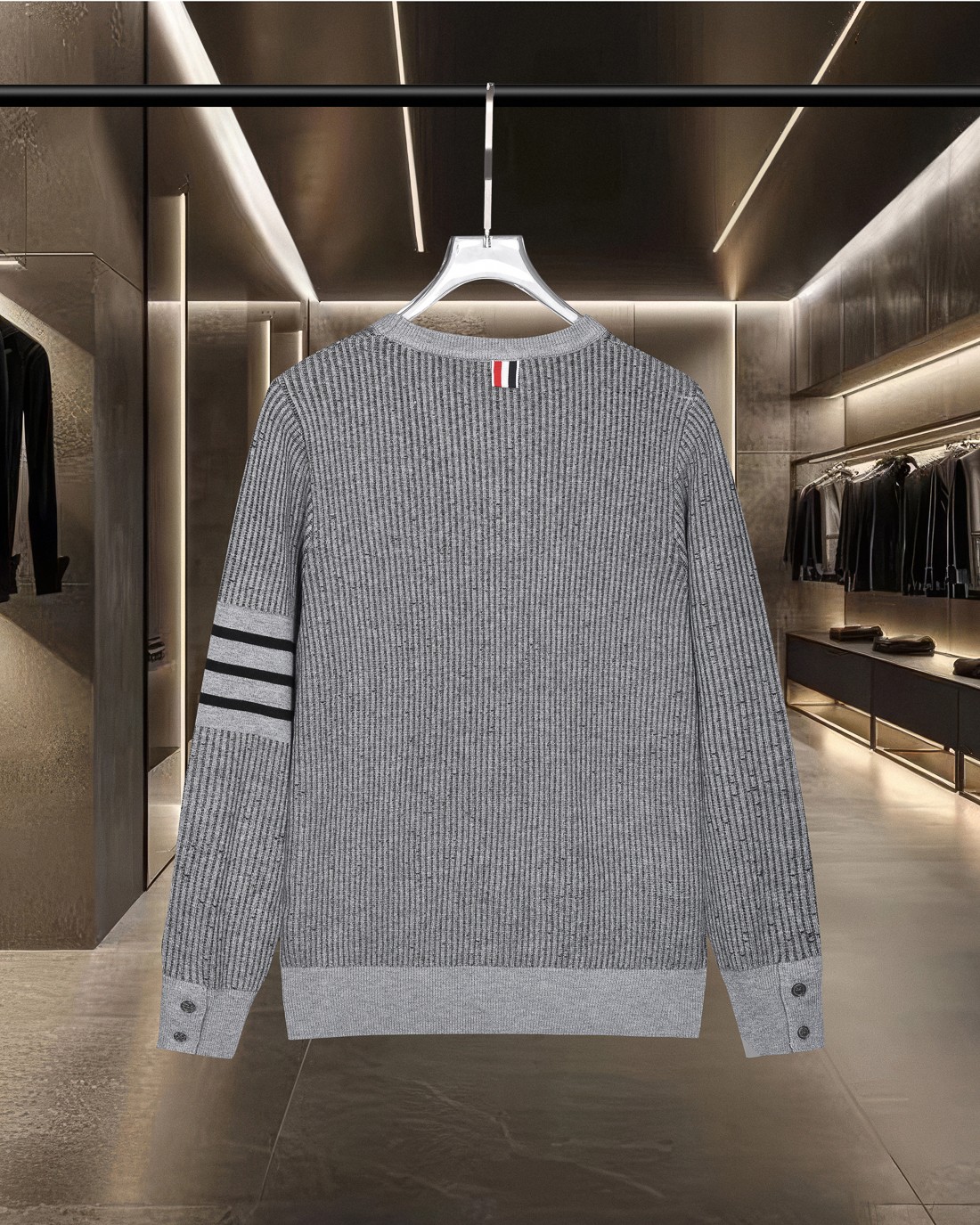 这款衣服是AAAAA 1:1 质量 (非常棒). 使用了和原版一模一样的材料. 商标部分也保持了和汤姆布朗/Thom Browne一样. 图片拍摄是实物衣服拍摄, 您所收到的实物保证和我们图片一模一样.
