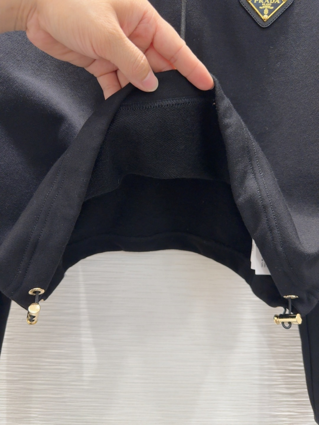 这款衣服是AAAAA 1:1 质量 (非常棒). 使用了和原版一模一样的材料. 商标部分也保持了和普拉达/Prada一样. 图片拍摄是实物衣服拍摄, 您所收到的实物保证和我们图片一模一样.
