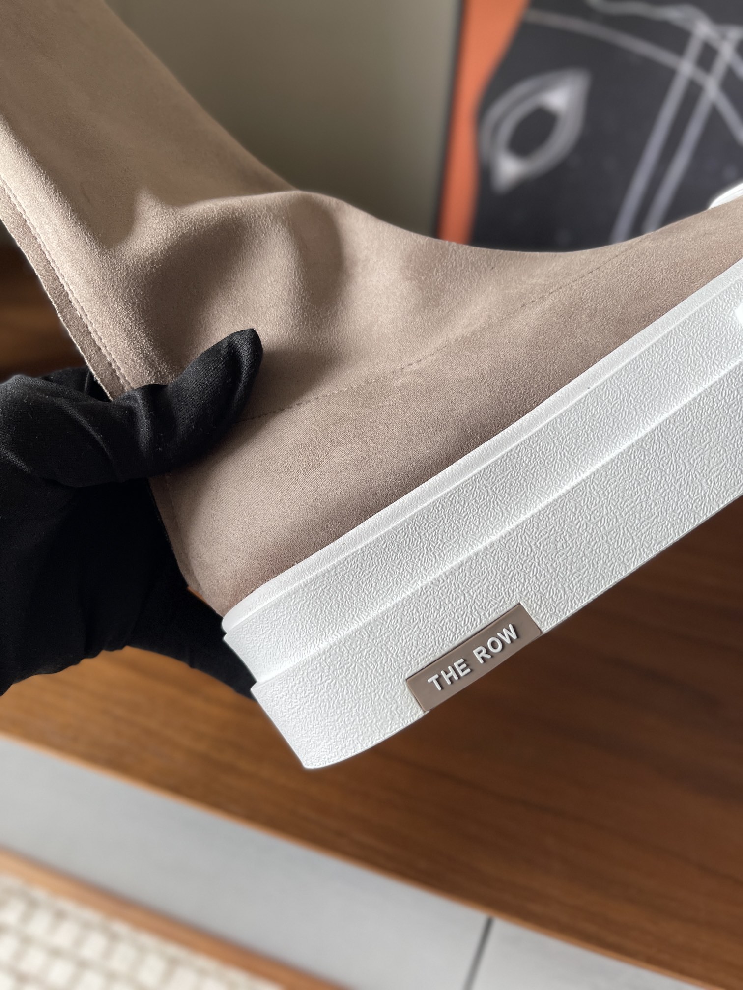 这款鞋子是AAAAA 1:1 质量 (非常棒). 使用了和原版一模一样的材料. 商标部分也保持了和The Row一样. 图片拍摄是实物鞋子拍摄, 您所收到的实物保证和我们图片一模一样.