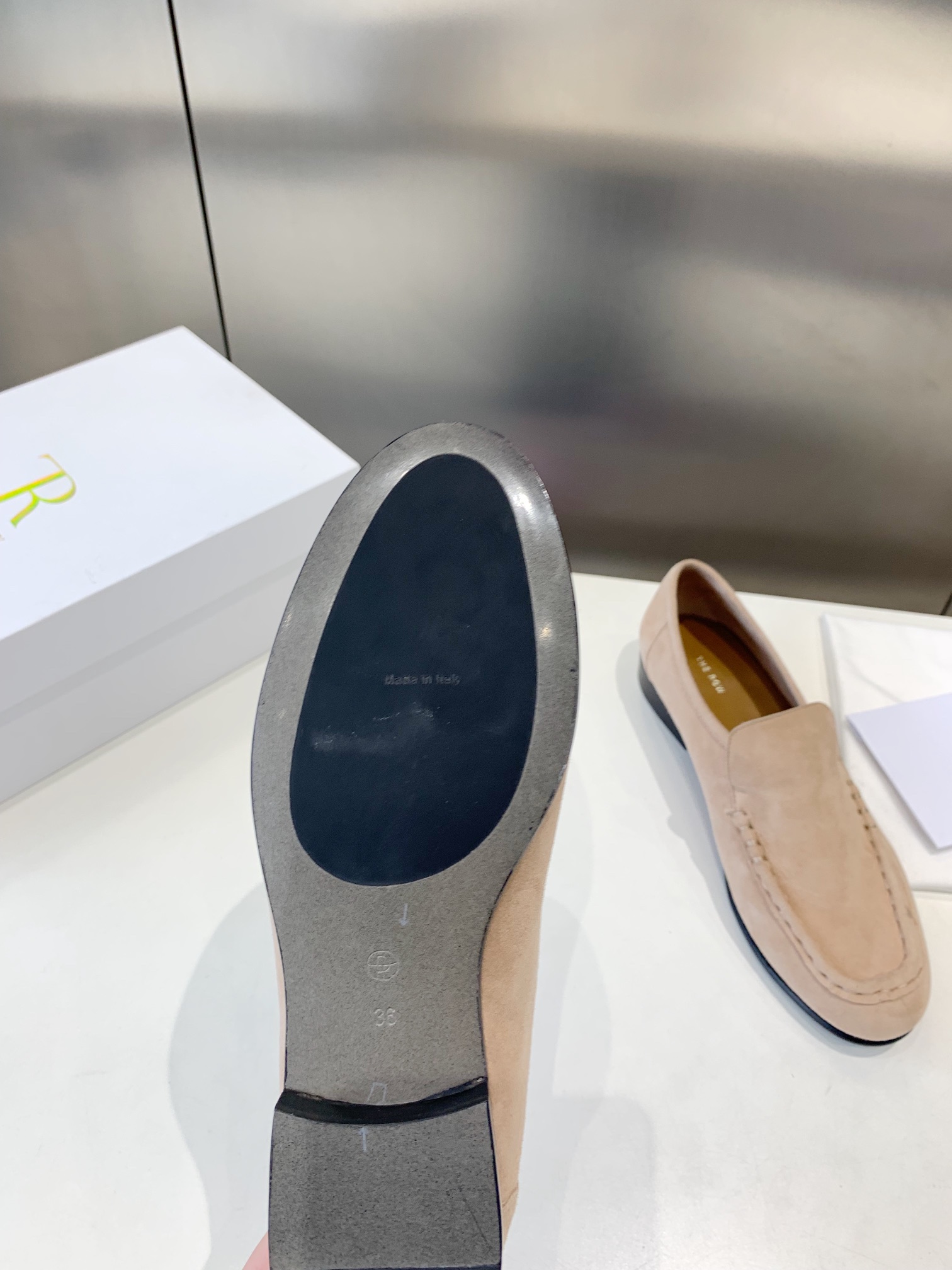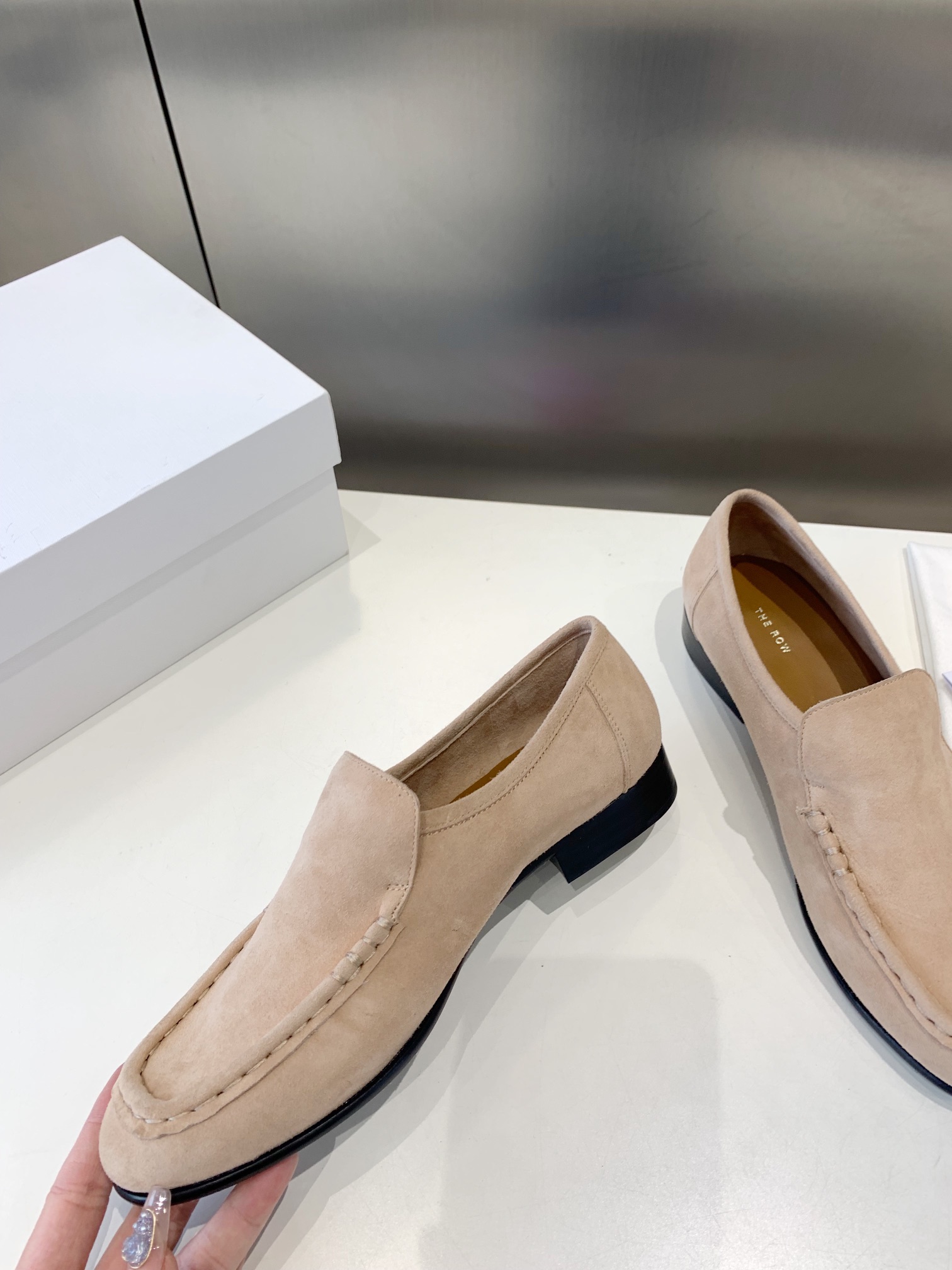 这款鞋子是AAAAA 1:1 质量 (非常棒). 使用了和原版一模一样的材料. 商标部分也保持了和The Row一样. 图片拍摄是实物鞋子拍摄, 您所收到的实物保证和我们图片一模一样.