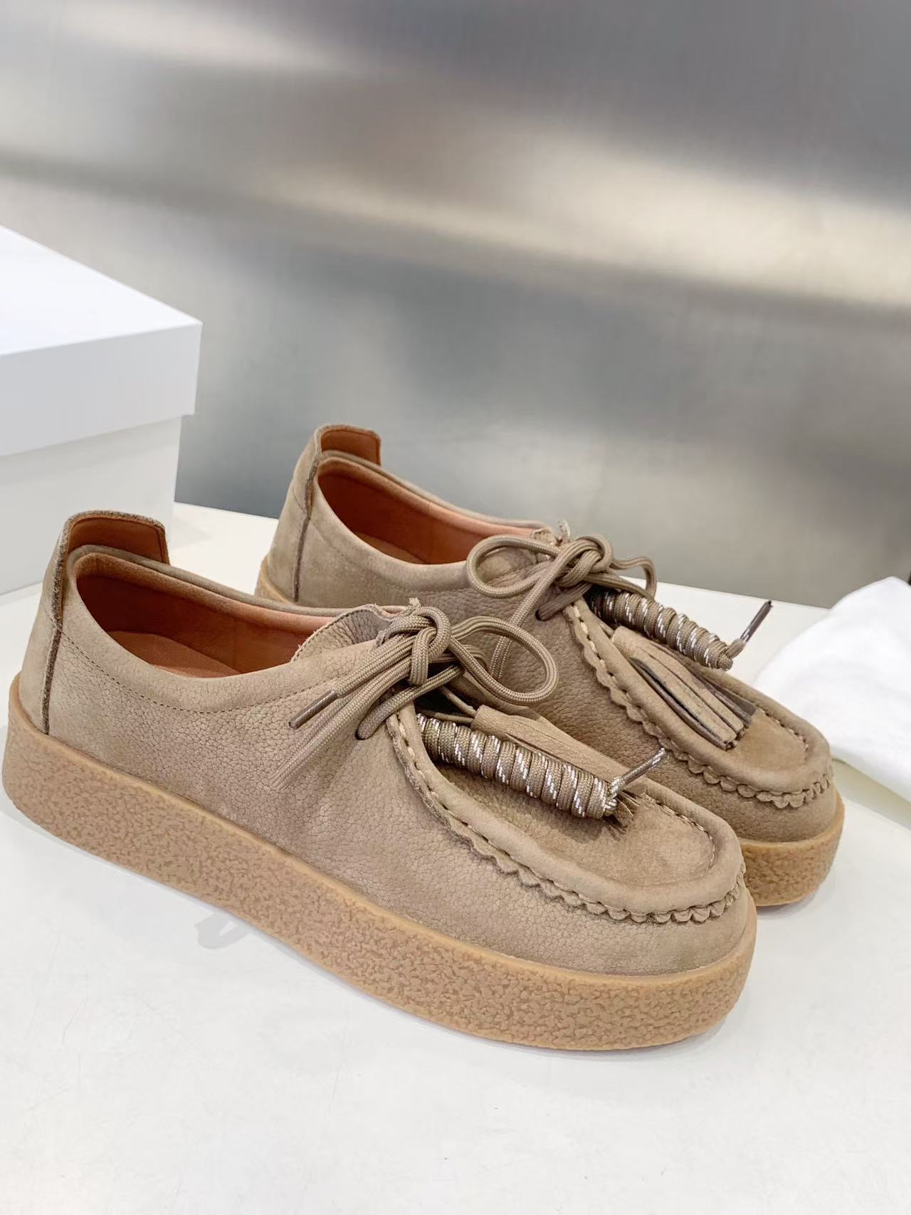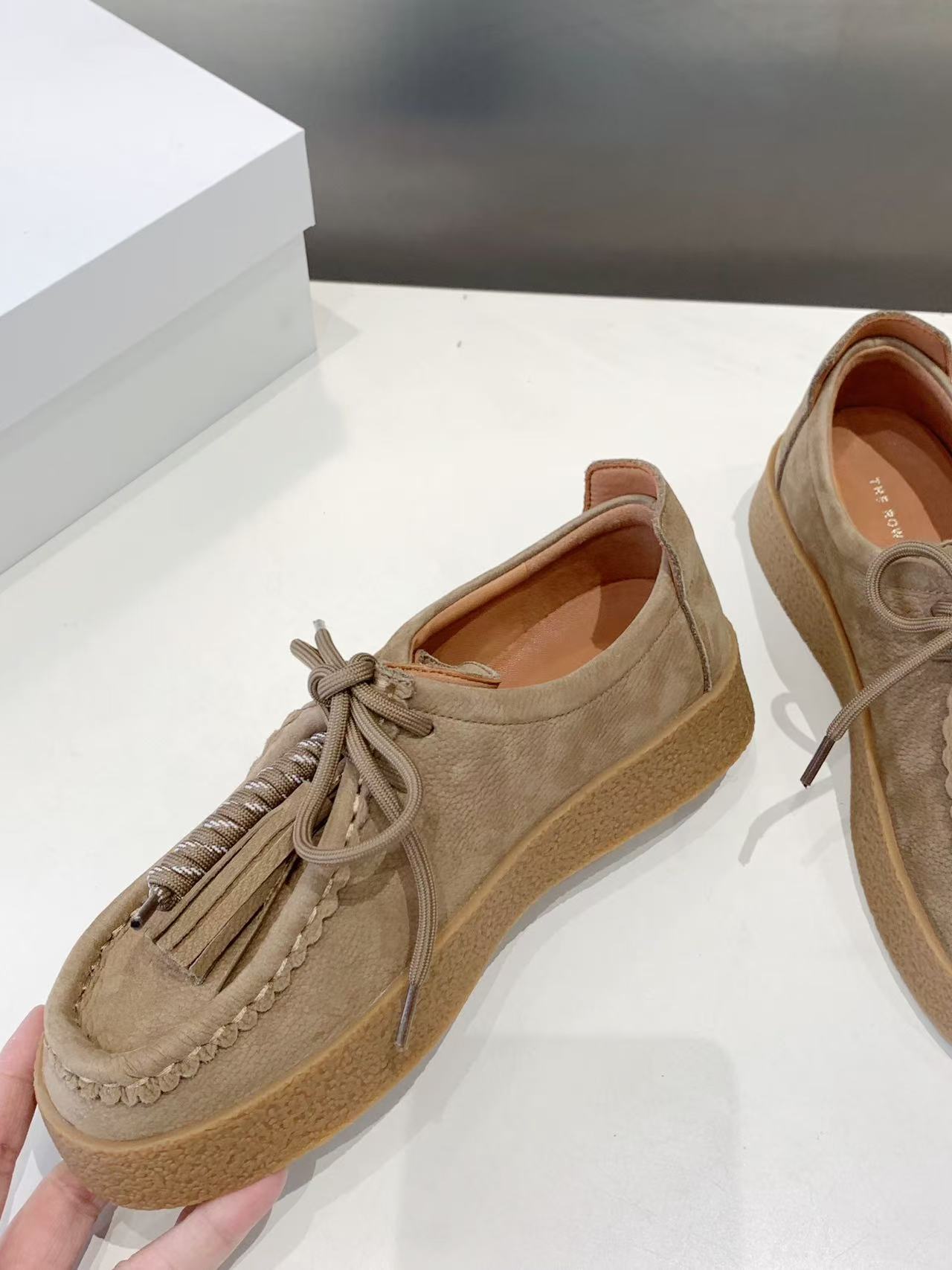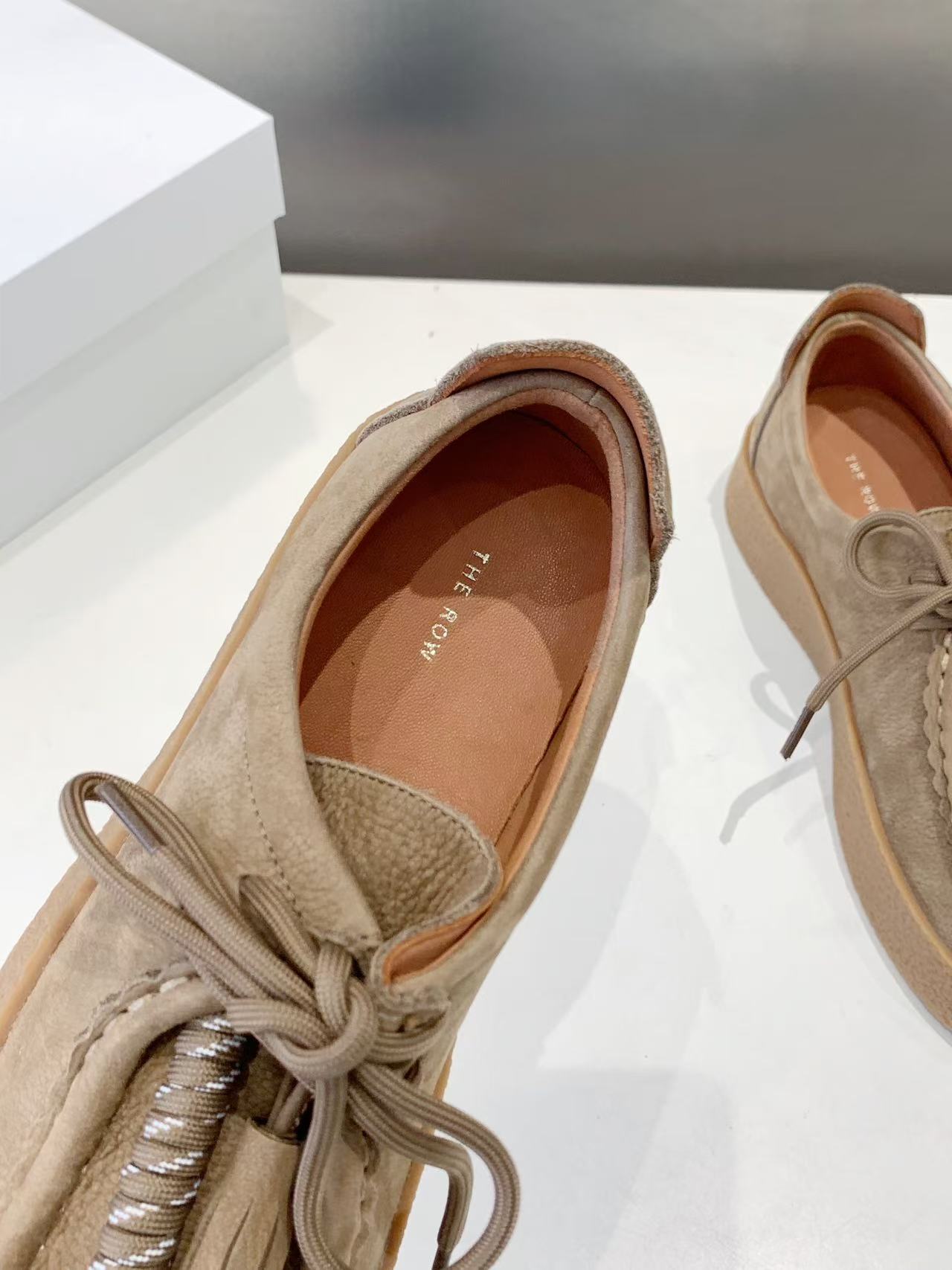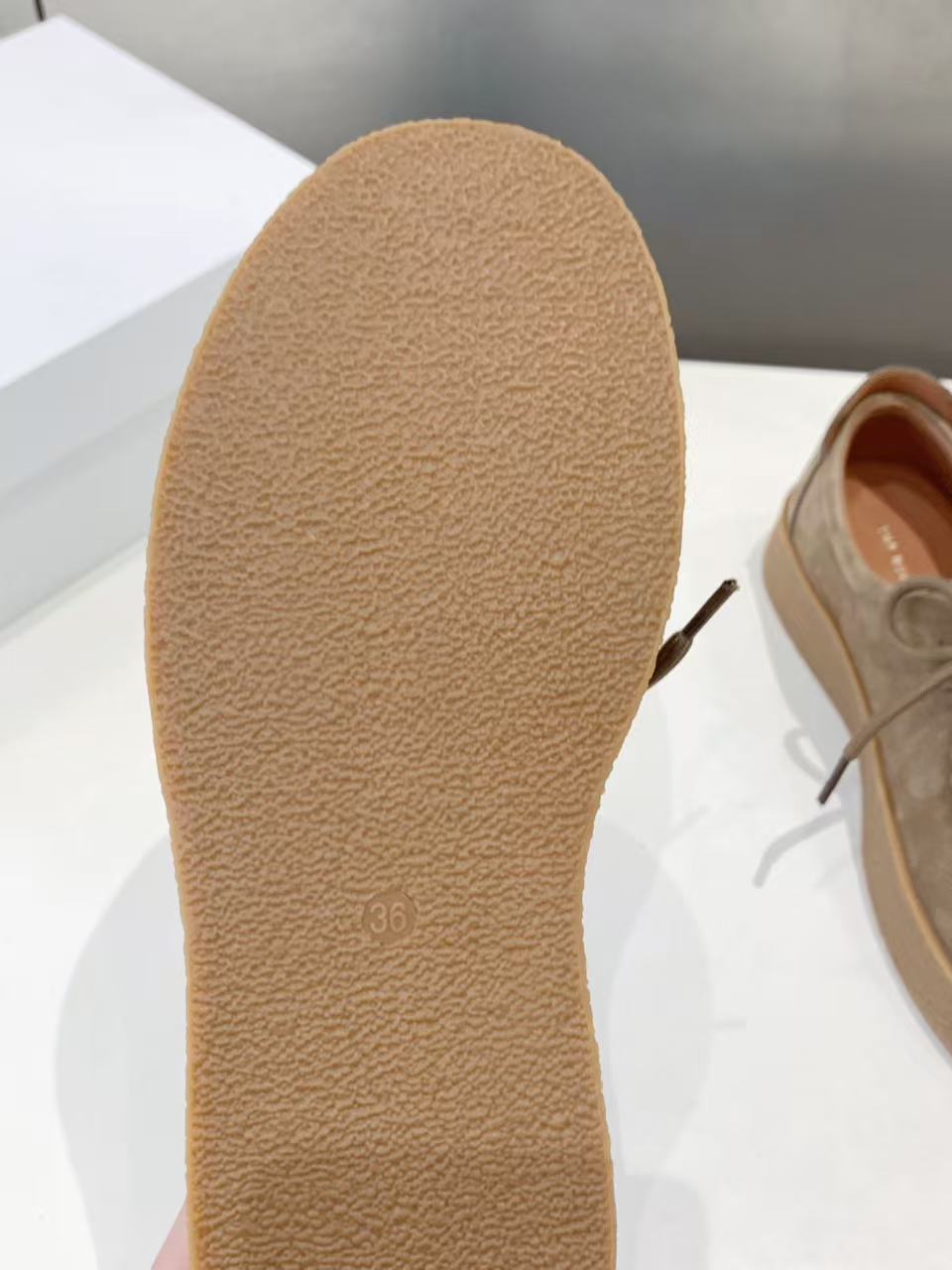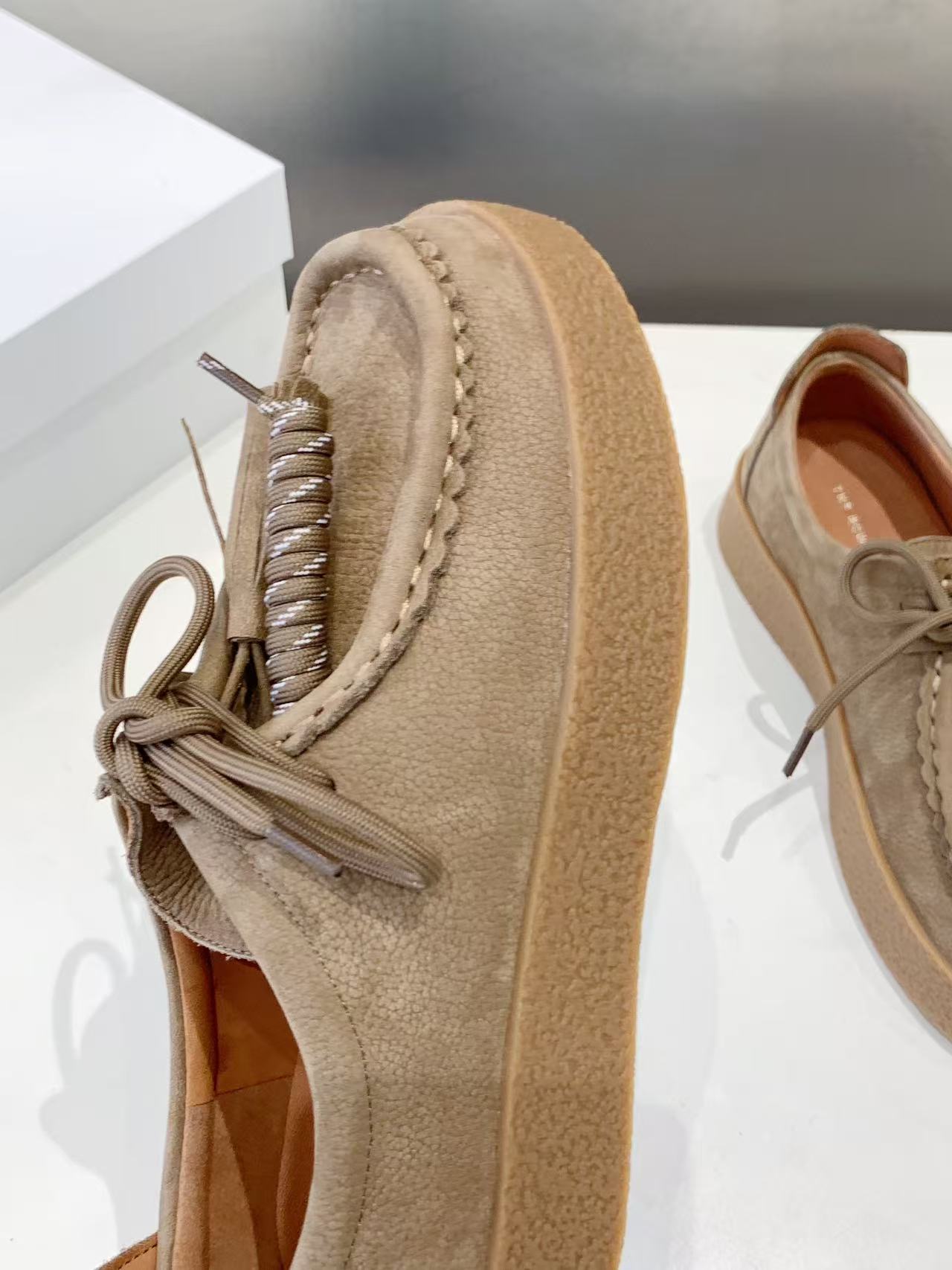 这款鞋子是AAAAA 1:1 质量 (非常棒). 使用了和原版一模一样的材料. 商标部分也保持了和The Row一样. 图片拍摄是实物鞋子拍摄, 您所收到的实物保证和我们图片一模一样.