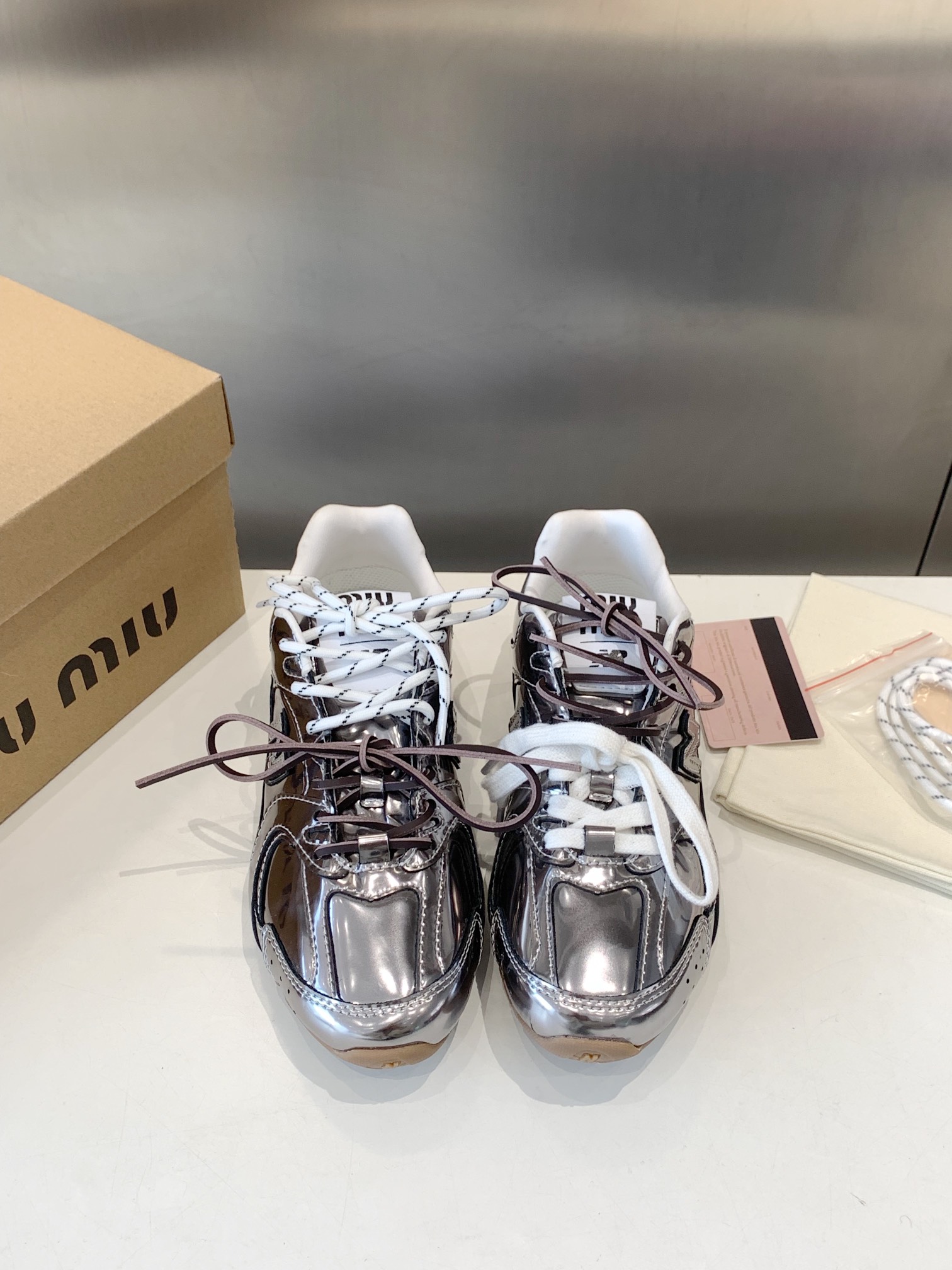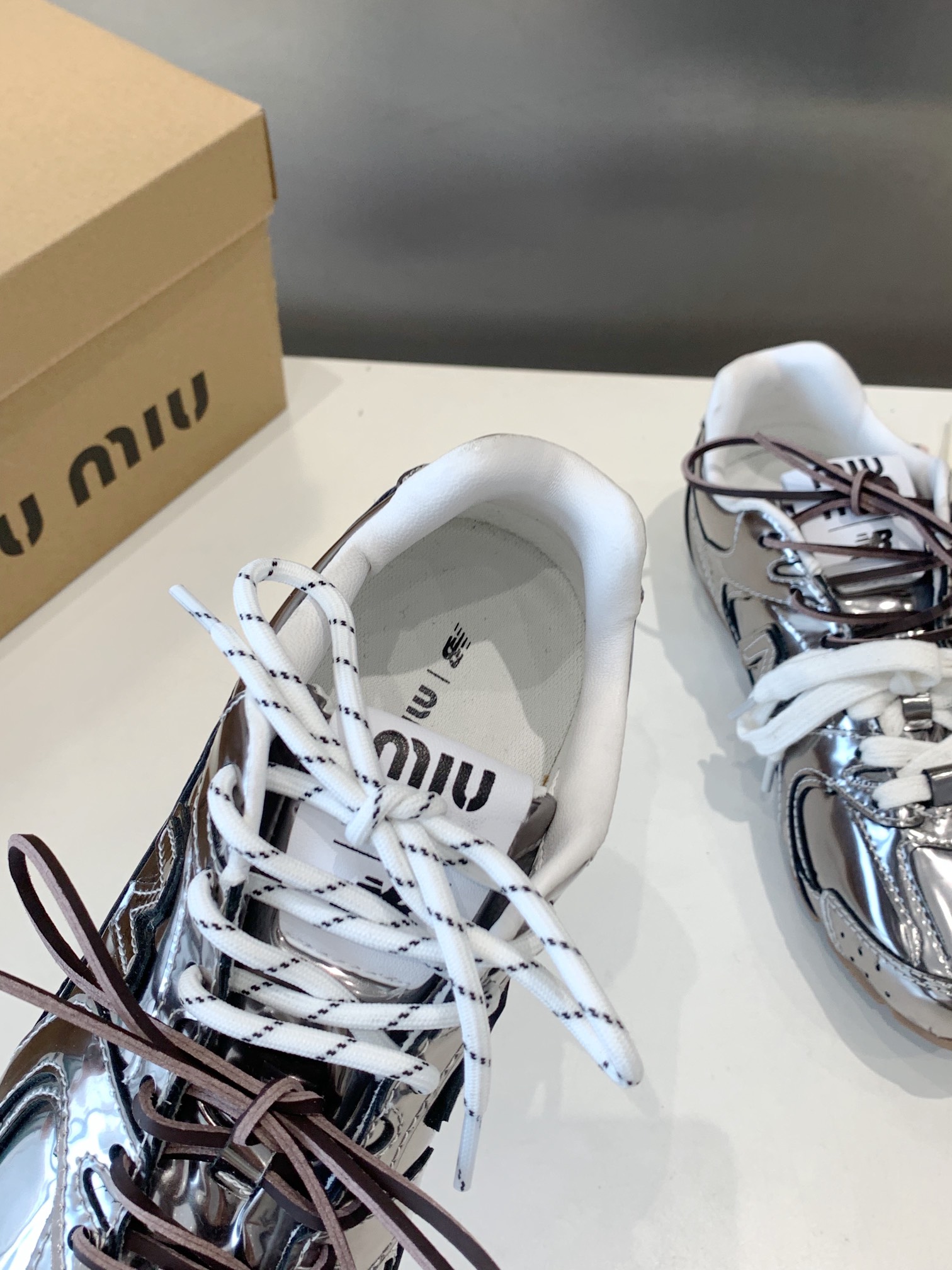 这款鞋子是AAAAA 1:1 质量 (非常棒). 使用了和原版一模一样的材料. 商标部分也保持了和缪缪/Miu Miu一样. 图片拍摄是实物鞋子拍摄, 您所收到的实物保证和我们图片一模一样.