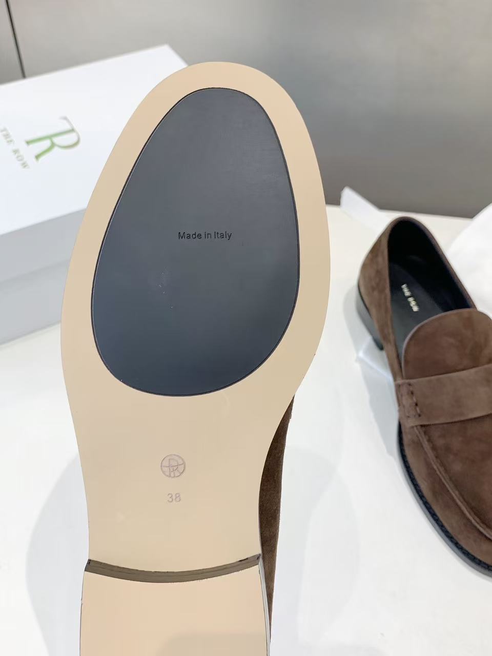 这款鞋子是AAAAA 1:1 质量 (非常棒). 使用了和原版一模一样的材料. 商标部分也保持了和The Row一样. 图片拍摄是实物鞋子拍摄, 您所收到的实物保证和我们图片一模一样.