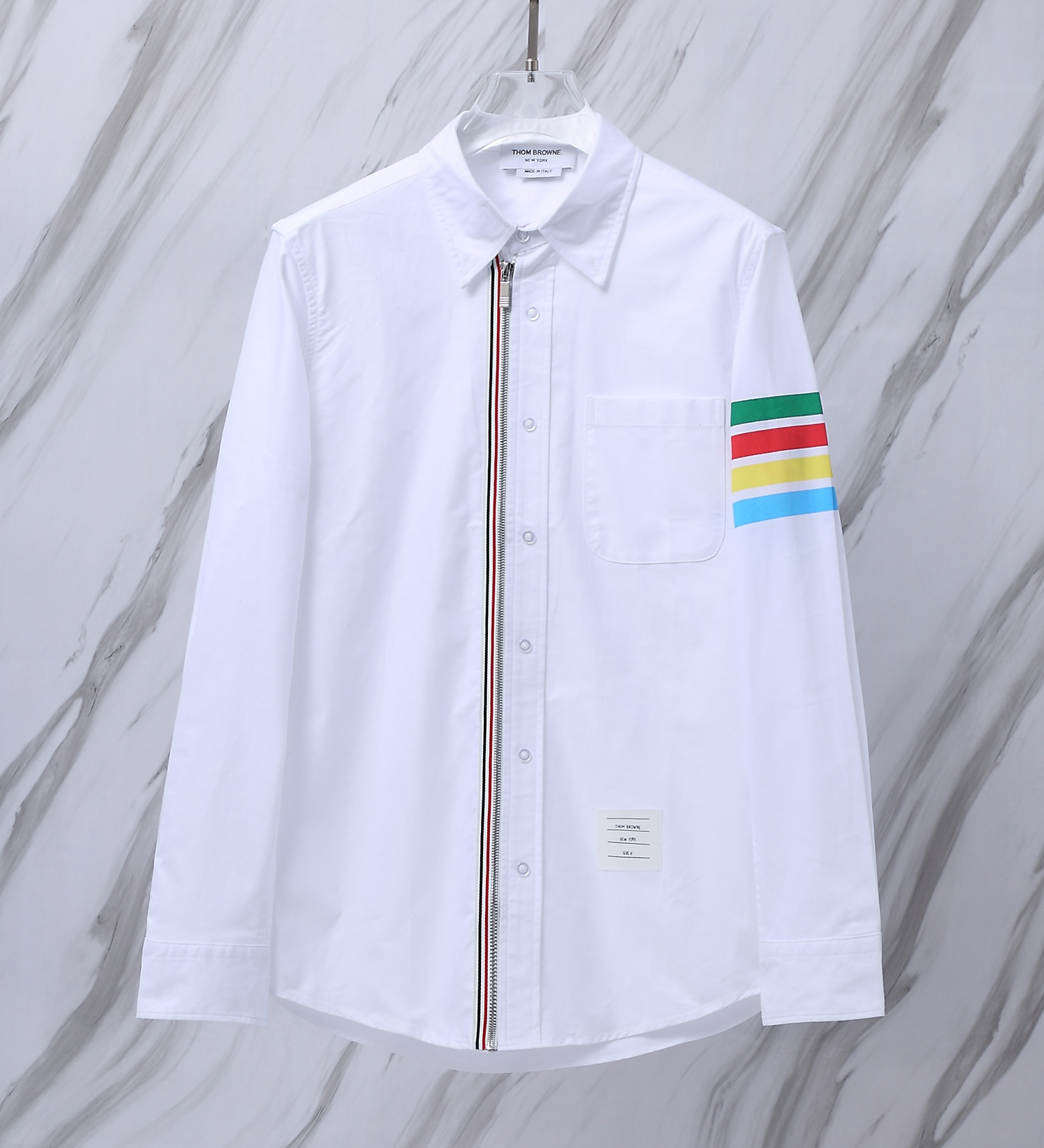 这款衣服是AAAAA 1:1 质量 (非常棒). 使用了和原版一模一样的材料. 商标部分也保持了和汤姆布朗/Thom Browne一样. 图片拍摄是实物衣服拍摄, 您所收到的实物保证和我们图片一模一样.