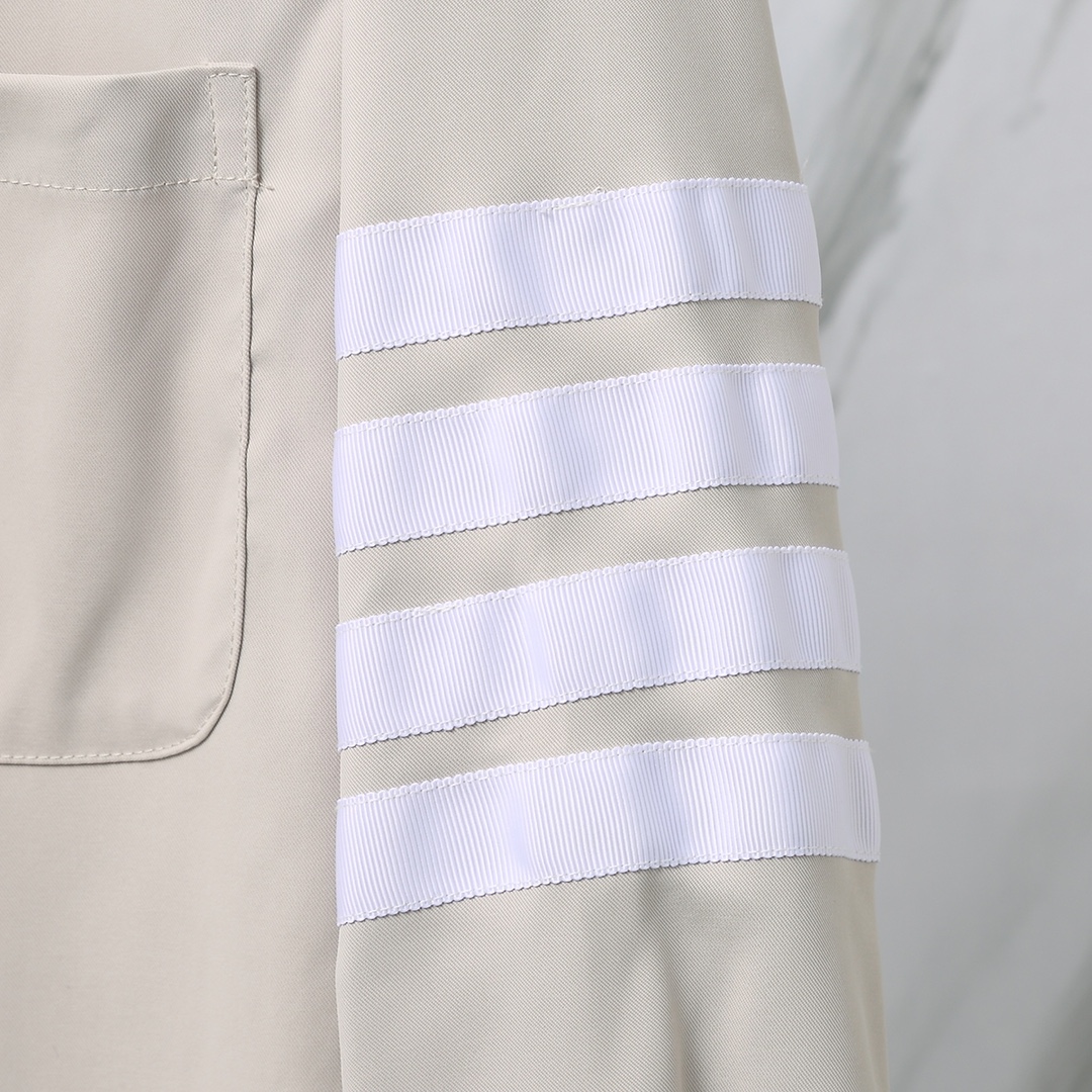 这款衣服是AAAAA 1:1 质量 (非常棒). 使用了和原版一模一样的材料. 商标部分也保持了和汤姆布朗/Thom Browne一样. 图片拍摄是实物衣服拍摄, 您所收到的实物保证和我们图片一模一样.