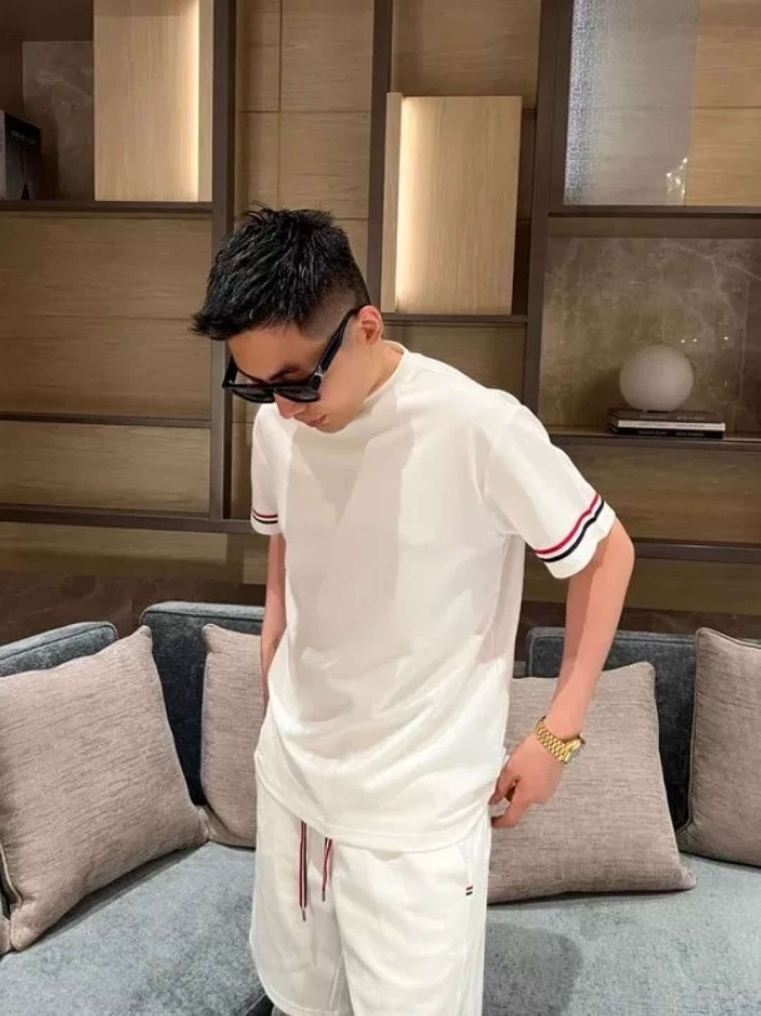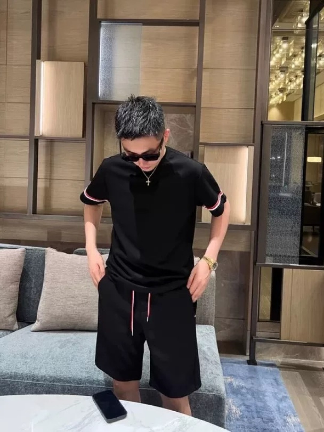 这款衣服是AAAAA 1:1 质量 (非常棒). 使用了和原版一模一样的材料. 商标部分也保持了和汤姆布朗/Thom Browne一样. 图片拍摄是实物衣服拍摄, 您所收到的实物保证和我们图片一模一样.