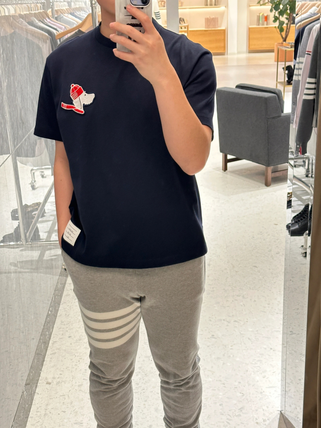 这款衣服是AAAAA 1:1 质量 (非常棒). 使用了和原版一模一样的材料. 商标部分也保持了和汤姆布朗/Thom Browne一样. 图片拍摄是实物衣服拍摄, 您所收到的实物保证和我们图片一模一样.