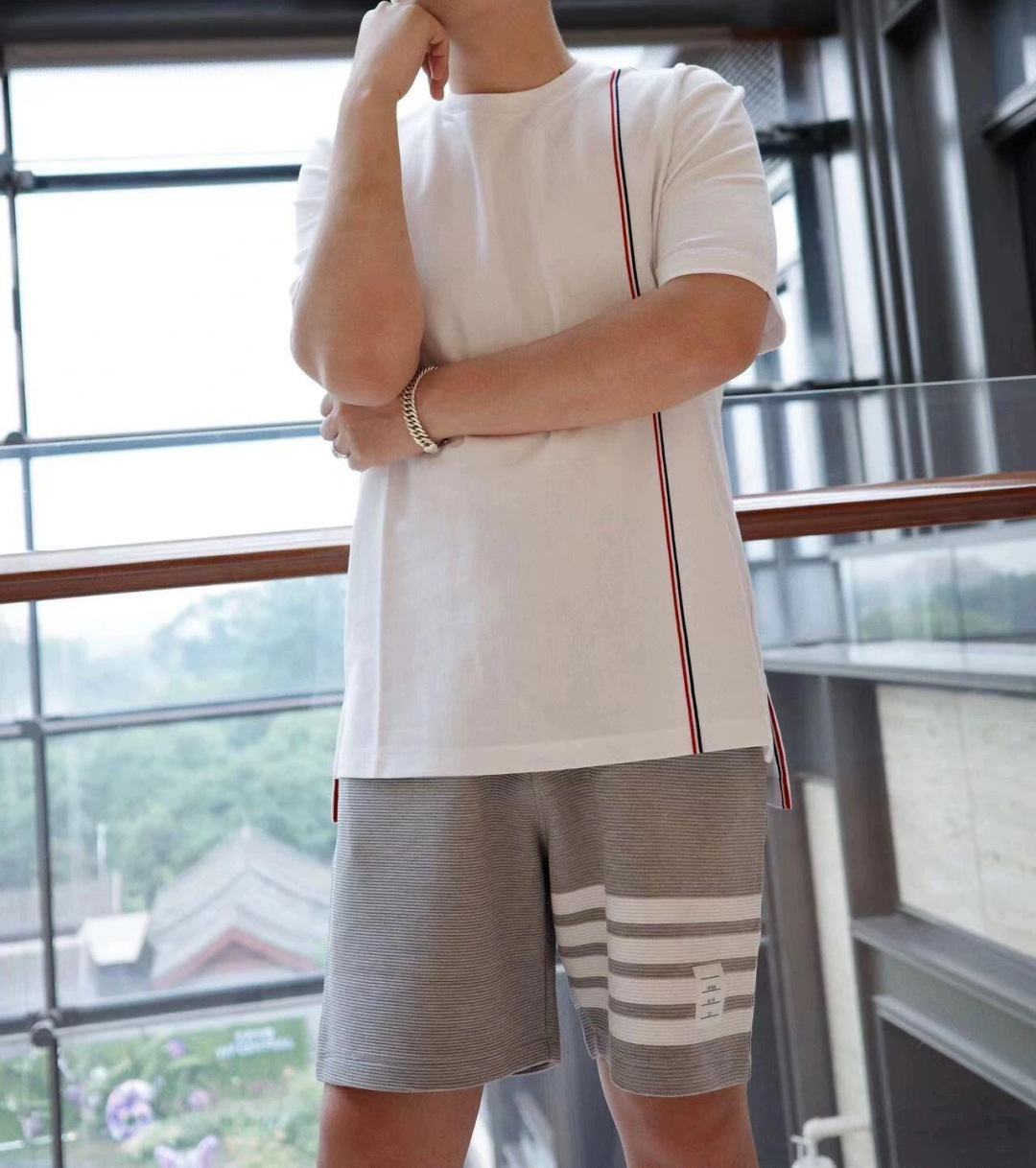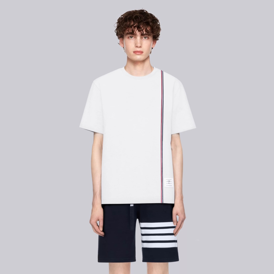 这款衣服是AAAAA 1:1 质量 (非常棒). 使用了和原版一模一样的材料. 商标部分也保持了和汤姆布朗/Thom Browne一样. 图片拍摄是实物衣服拍摄, 您所收到的实物保证和我们图片一模一样.
