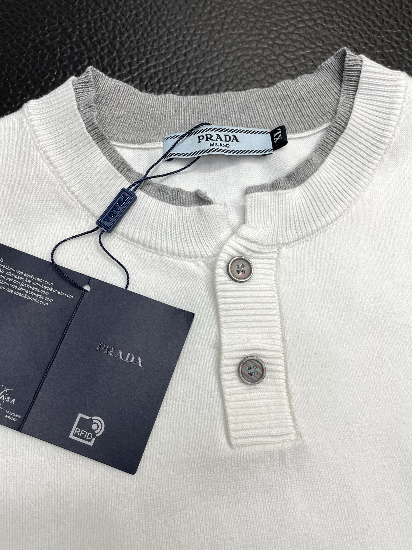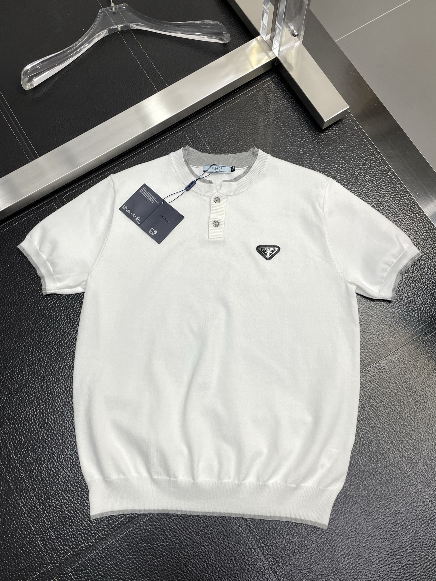 这款衣服是AAAAA 1:1 质量 (非常棒). 使用了和原版一模一样的材料. 商标部分也保持了和普拉达/Prada一样. 图片拍摄是实物衣服拍摄, 您所收到的实物保证和我们图片一模一样.