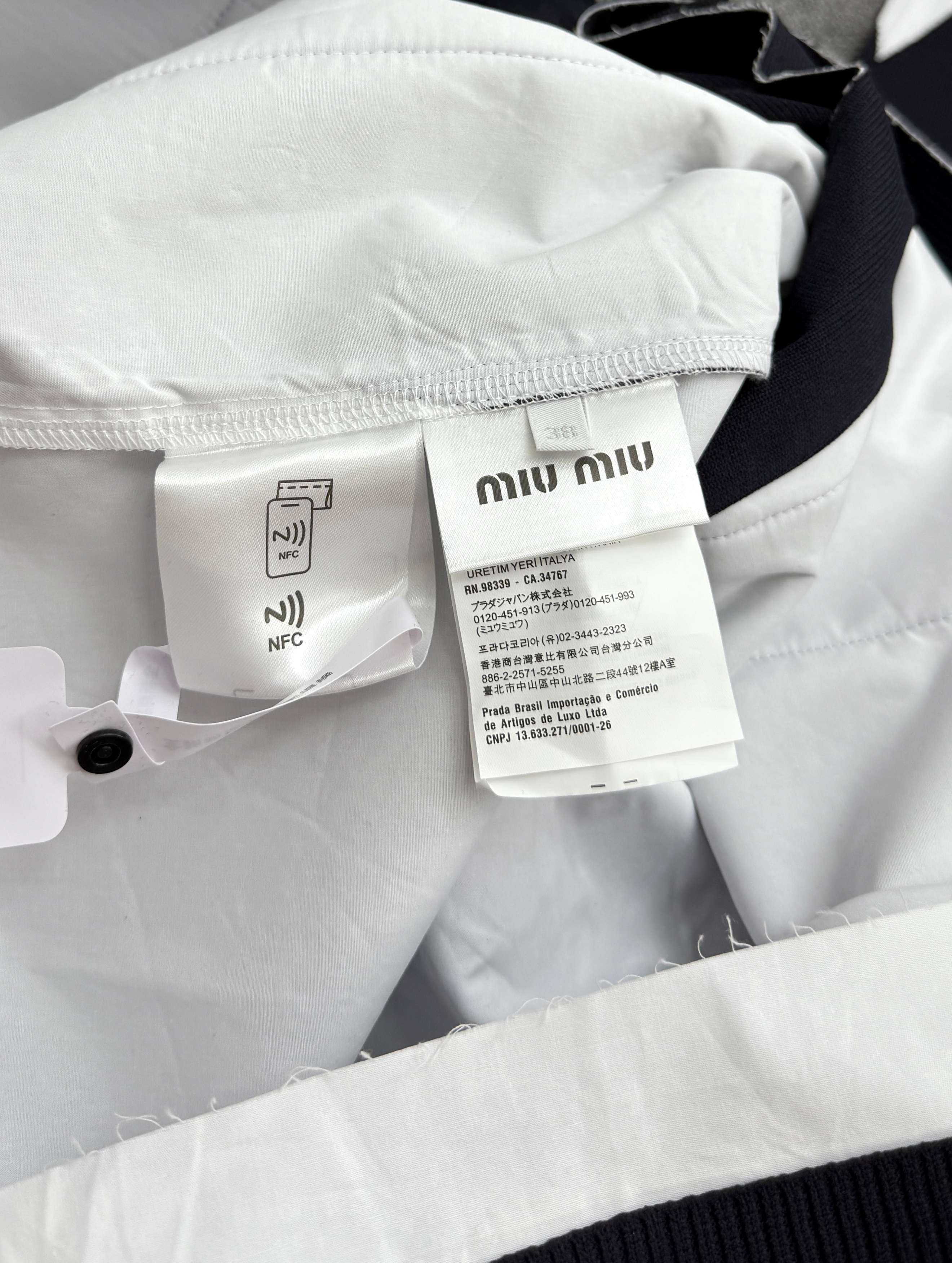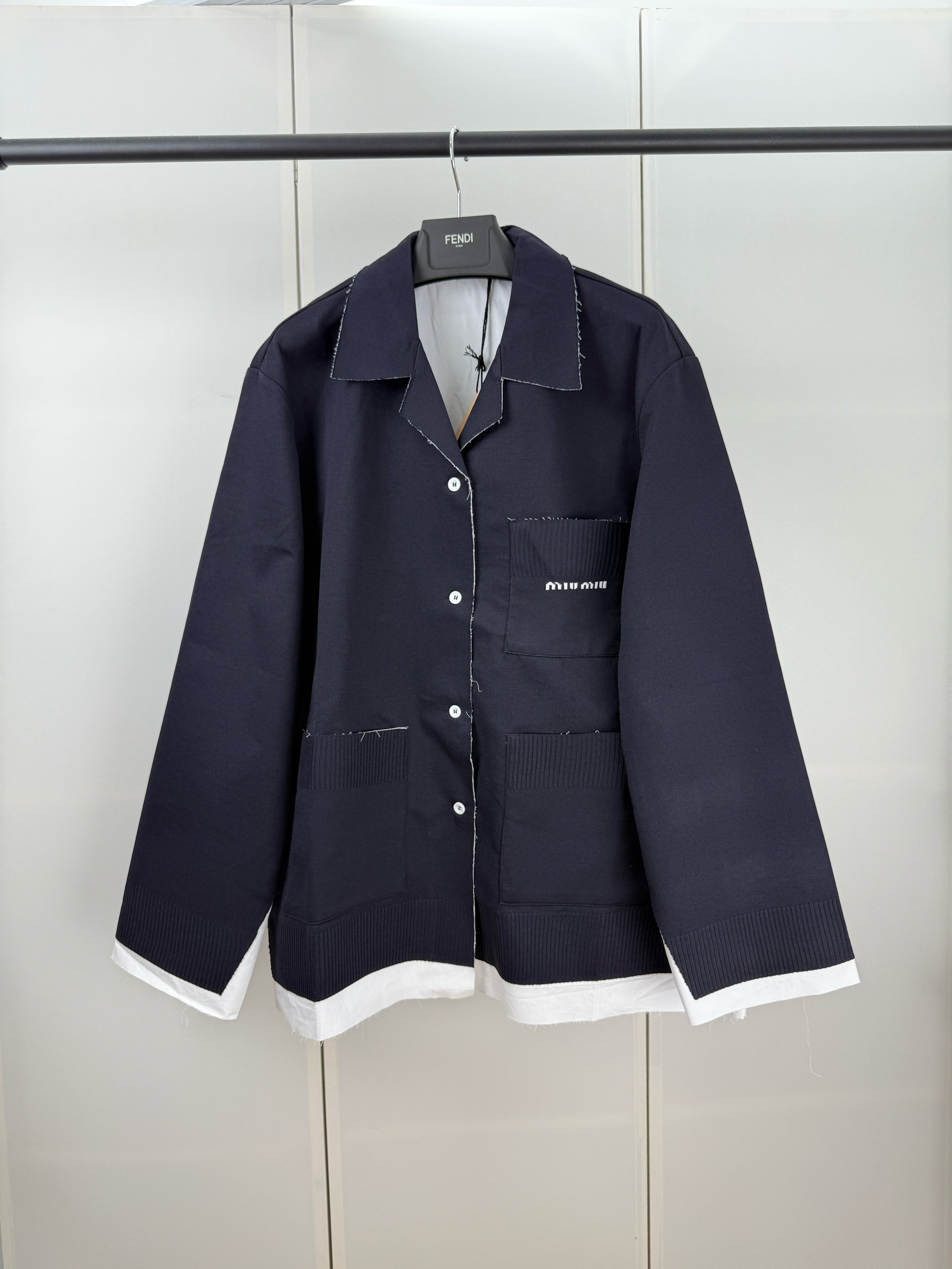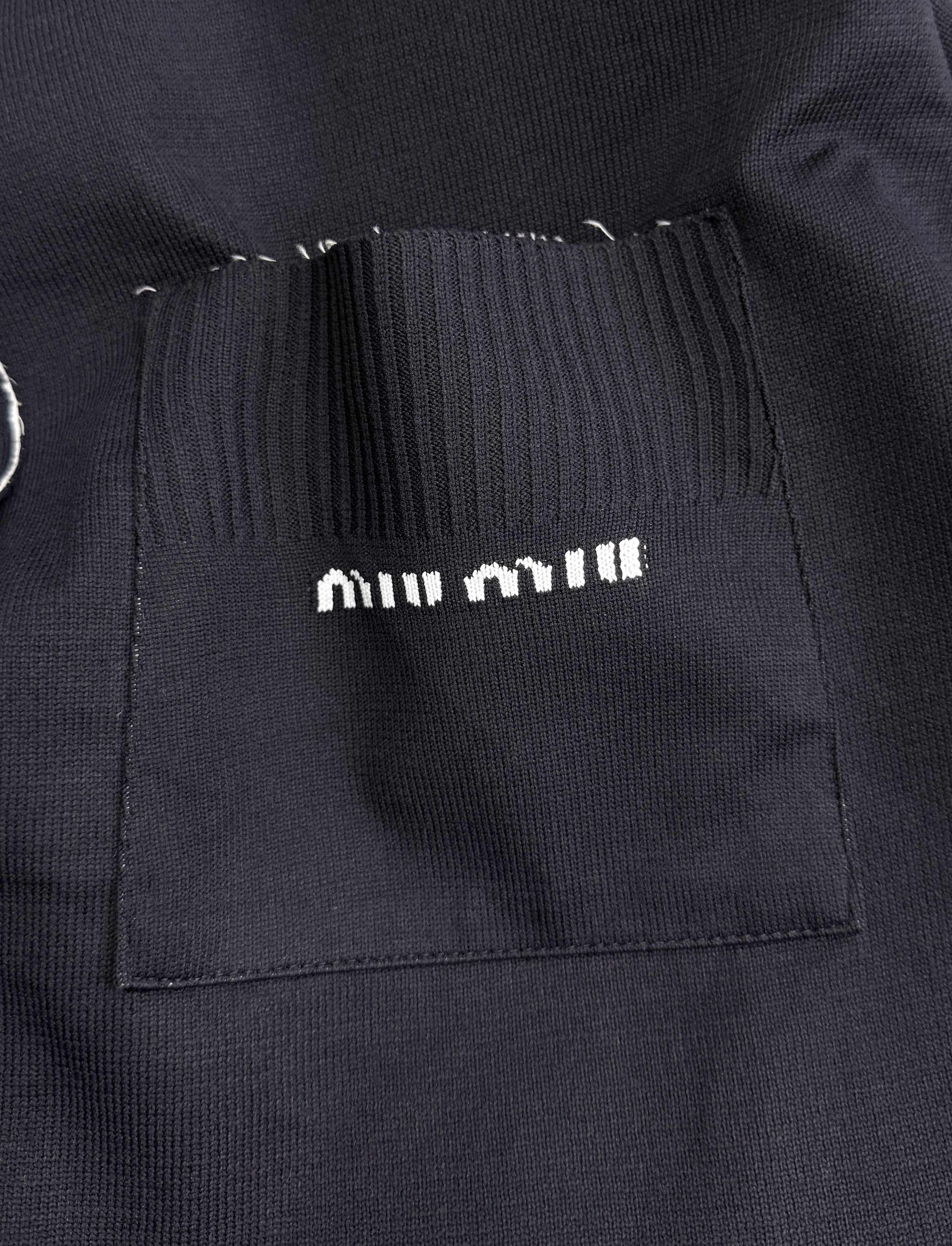 这款衣服是AAAAA 1:1 质量 (非常棒). 使用了和原版一模一样的材料. 商标部分也保持了和缪缪/Miu Miu一样. 图片拍摄是实物衣服拍摄, 您所收到的实物保证和我们图片一模一样.