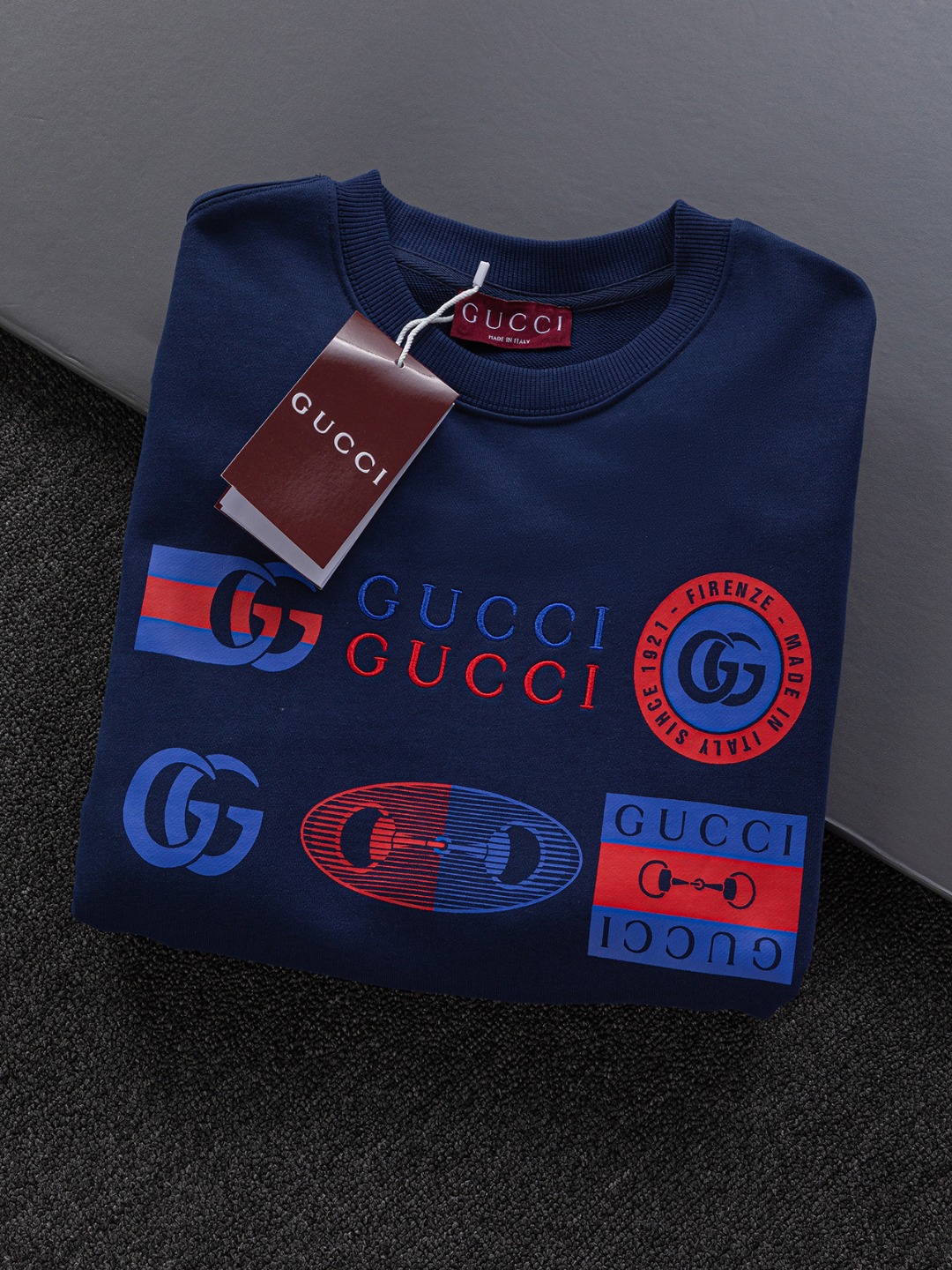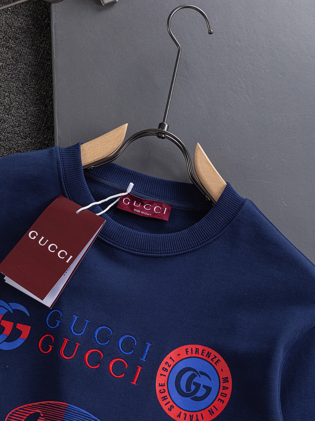 这款衣服是AAAAA 1:1 质量 (非常棒). 使用了和原版一模一样的材料. 商标部分也保持了和古奇/Gucci一样. 图片拍摄是实物衣服拍摄, 您所收到的实物保证和我们图片一模一样.