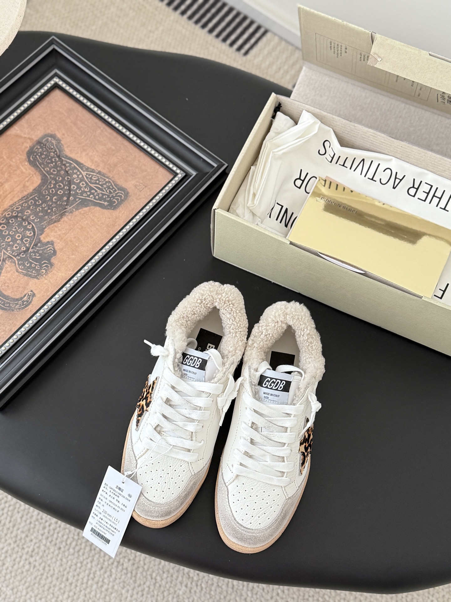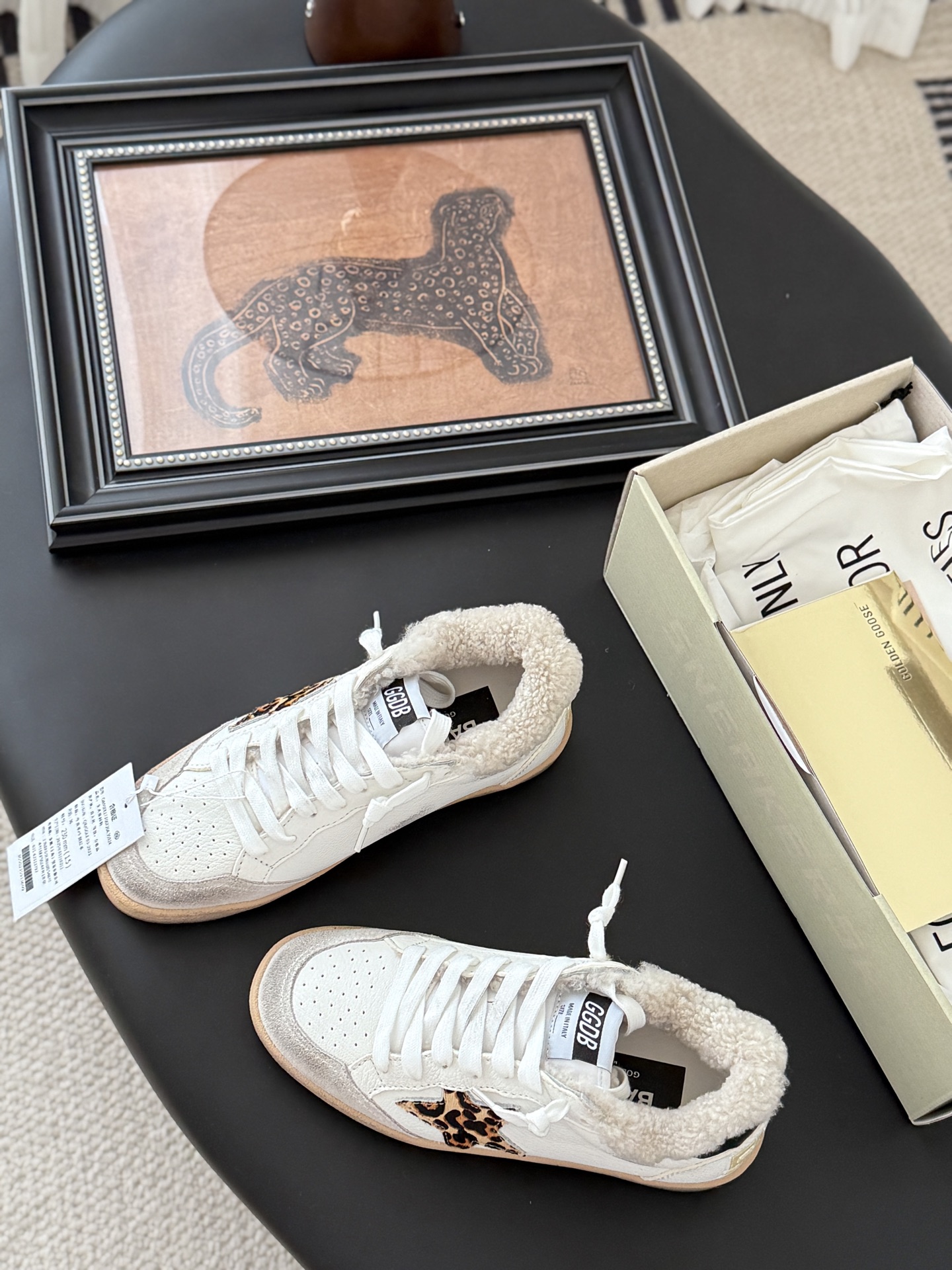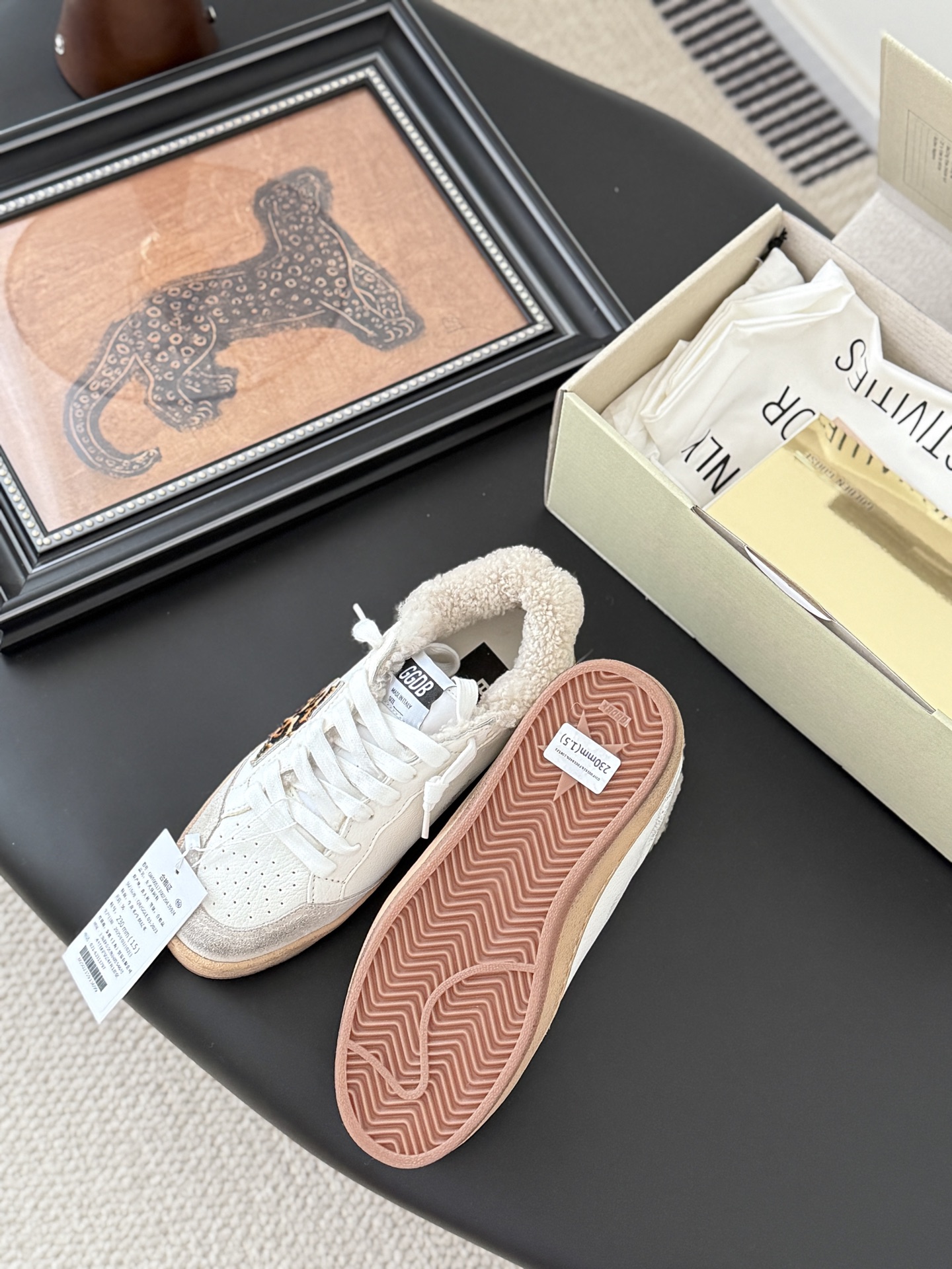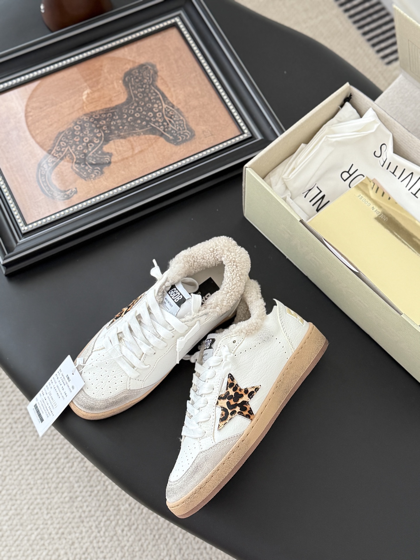 这款鞋子是AAAAA 1:1 质量 (非常棒). 使用了和原版一模一样的材料. 商标部分也保持了和Golden Goose一样. 图片拍摄是实物鞋子拍摄, 您所收到的实物保证和我们图片一模一样.