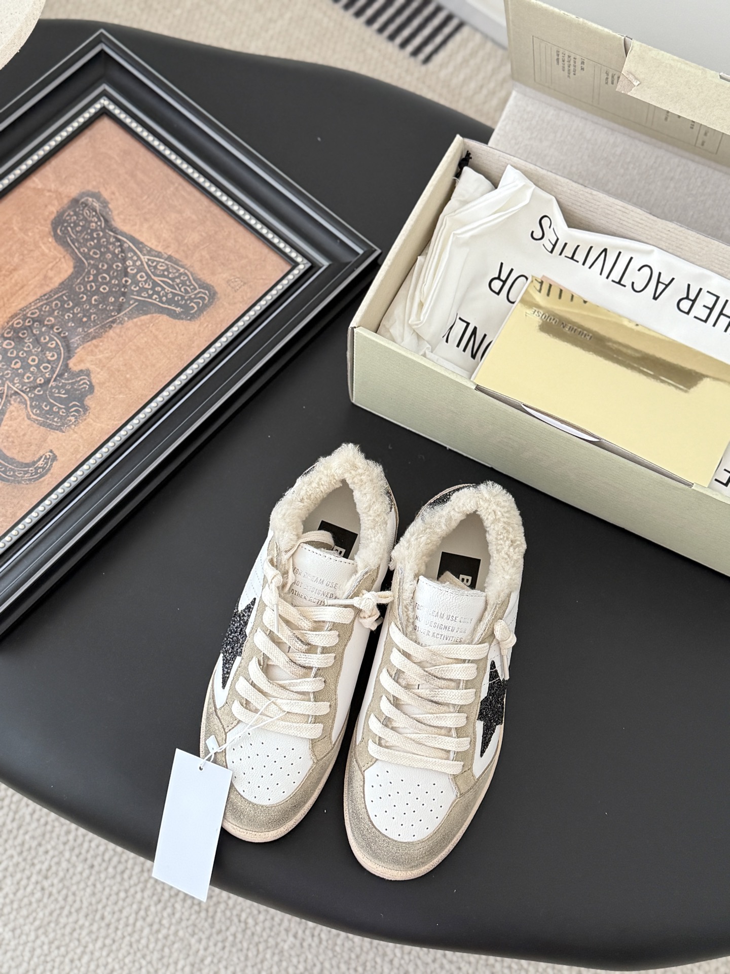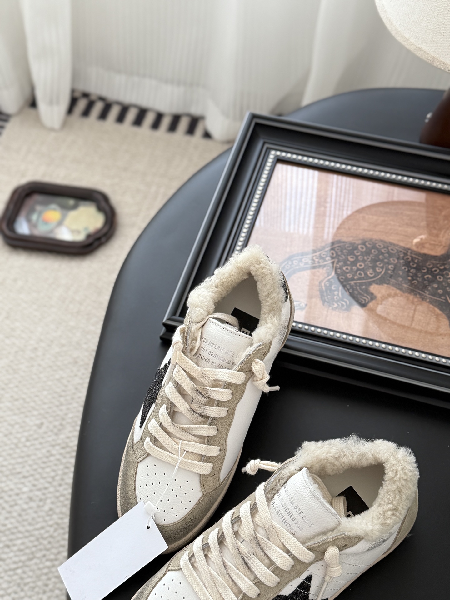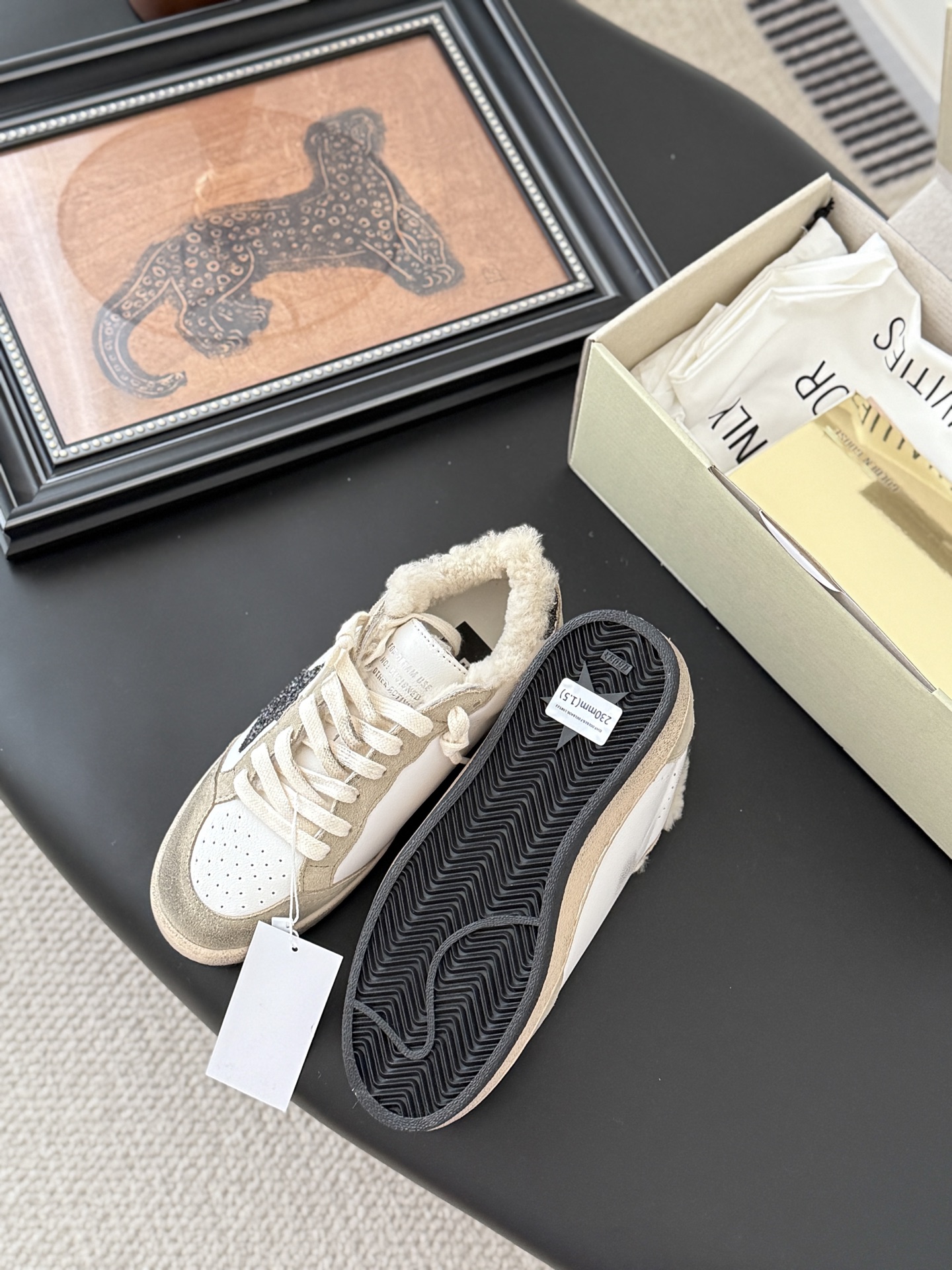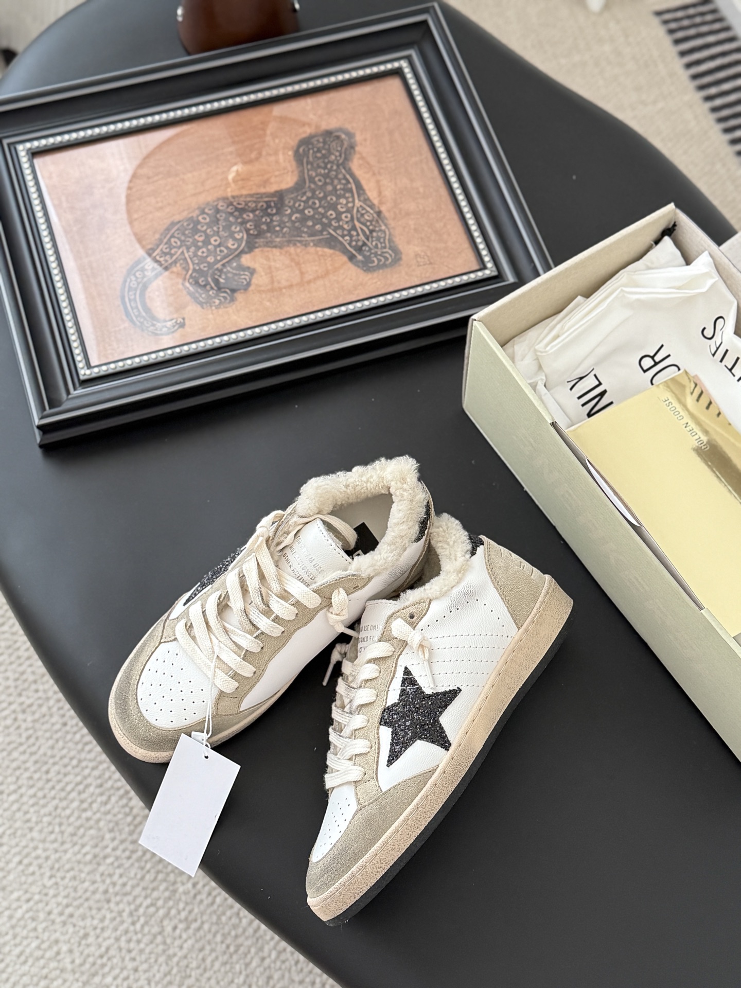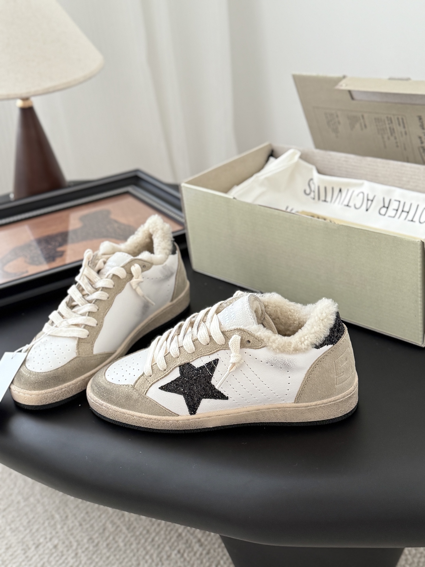 这款鞋子是AAAAA 1:1 质量 (非常棒). 使用了和原版一模一样的材料. 商标部分也保持了和Golden Goose一样. 图片拍摄是实物鞋子拍摄, 您所收到的实物保证和我们图片一模一样.