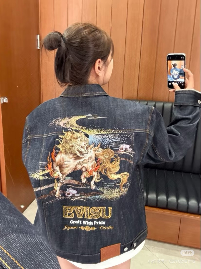 这款衣服是AAAAA 1:1 质量 (非常棒). 使用了和原版一模一样的材料. 商标部分也保持了和EVISU一样. 图片拍摄是实物衣服拍摄, 您所收到的实物保证和我们图片一模一样.
