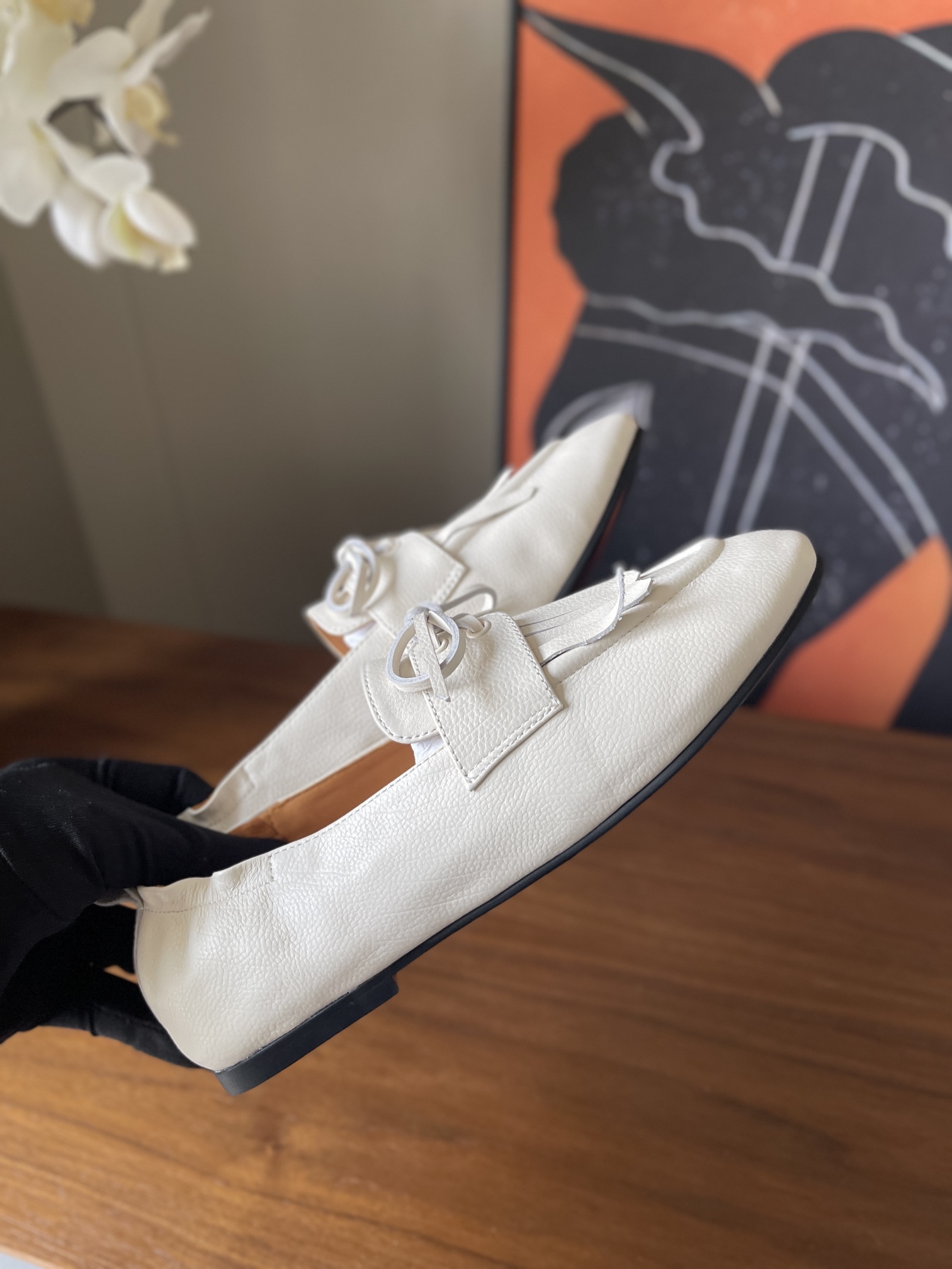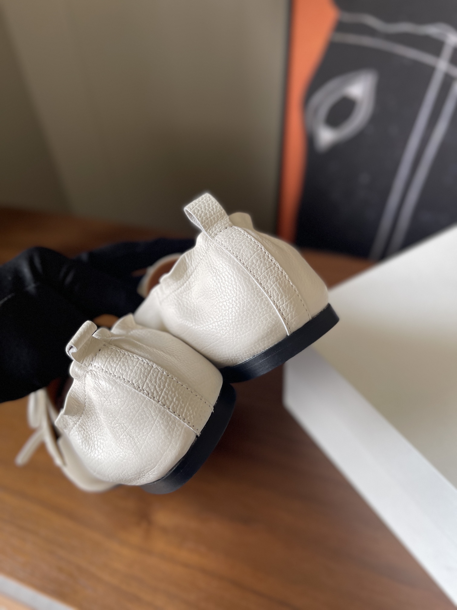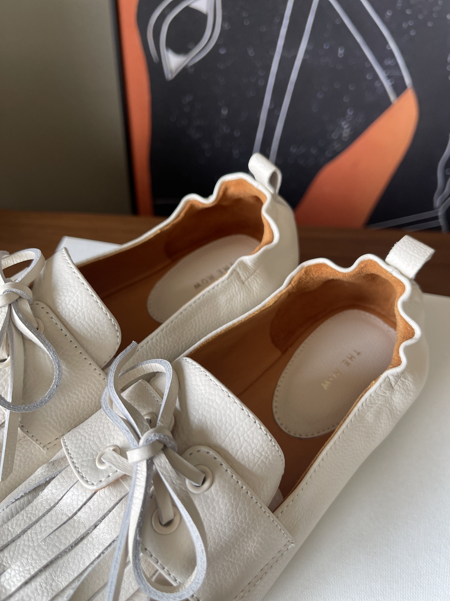这款鞋子是AAAAA 1:1 质量 (非常棒). 使用了和原版一模一样的材料. 商标部分也保持了和The Row一样. 图片拍摄是实物鞋子拍摄, 您所收到的实物保证和我们图片一模一样.