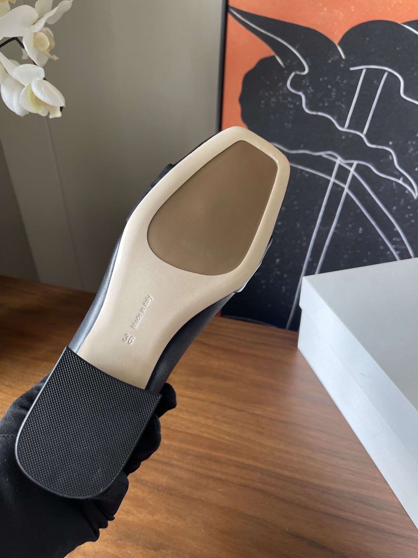 这款鞋子是AAAAA 1:1 质量 (非常棒). 使用了和原版一模一样的材料. 商标部分也保持了和The Row一样. 图片拍摄是实物鞋子拍摄, 您所收到的实物保证和我们图片一模一样.