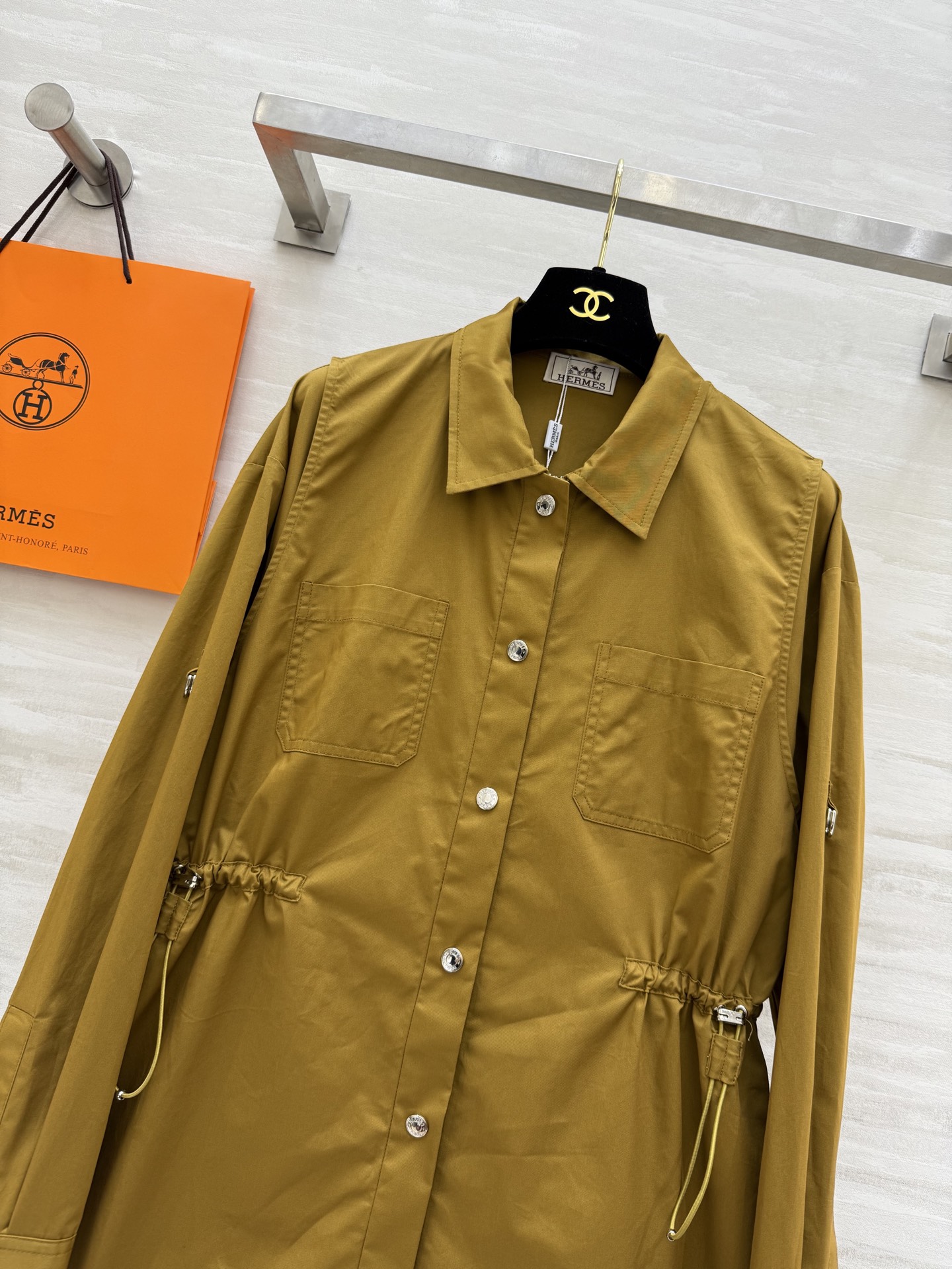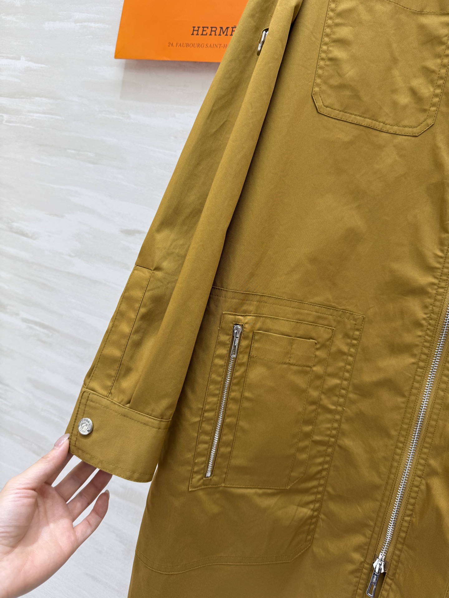 这款衣服是AAAAA 1:1 质量 (非常棒). 使用了和原版一模一样的材料. 商标部分也保持了和爱马仕/Hermes一样. 图片拍摄是实物衣服拍摄, 您所收到的实物保证和我们图片一模一样.