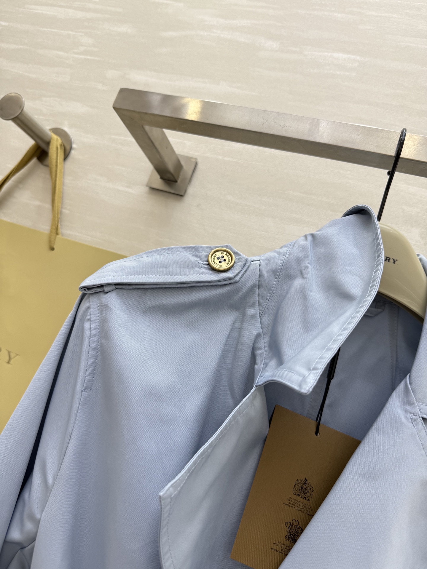 这款衣服是AAAAA 1:1 质量 (非常棒). 使用了和原版一模一样的材料. 商标部分也保持了和巴宝莉/Burberry一样. 图片拍摄是实物衣服拍摄, 您所收到的实物保证和我们图片一模一样.