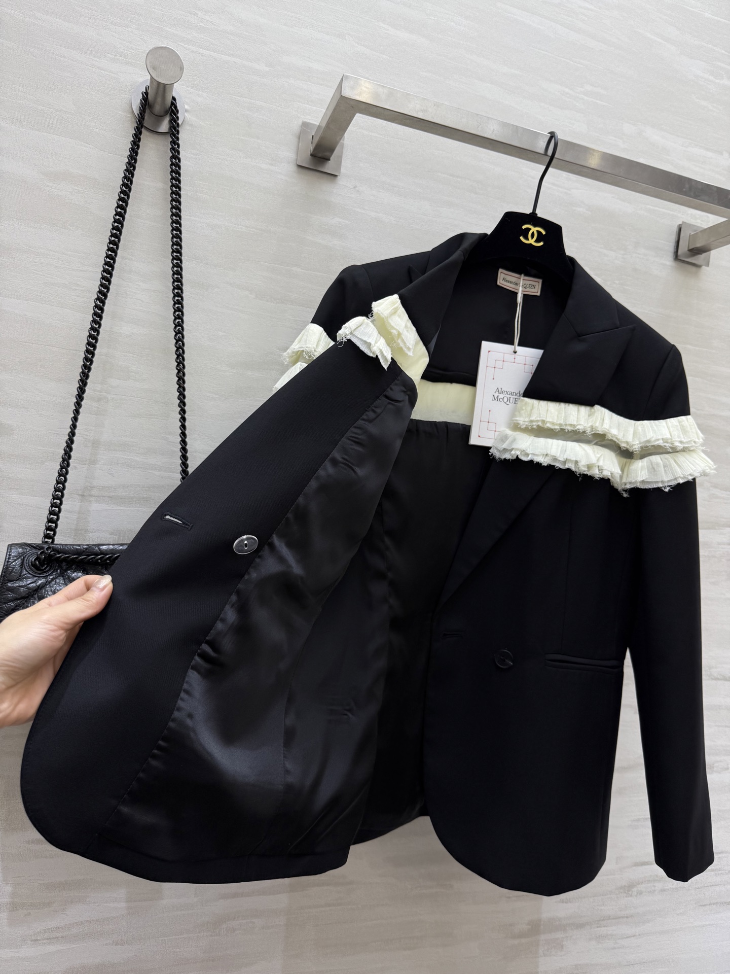 这款衣服是AAAAA 1:1 质量 (非常棒). 使用了和原版一模一样的材料. 商标部分也保持了和亚历山大·麦昆/McQueen一样. 图片拍摄是实物衣服拍摄, 您所收到的实物保证和我们图片一模一样.
