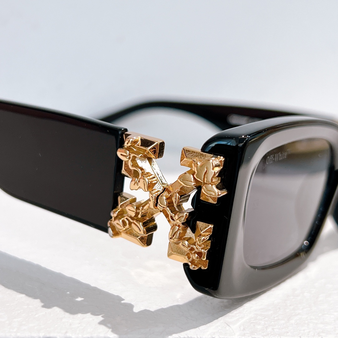 这款太阳眼镜是AAAAA 1:1 质量 (非常棒). 使用了和原版一模一样的材料. 商标部分也保持了和OFF WHITE一样. 图片拍摄是实物太阳眼镜拍摄, 您所收到的实物保证和我们图片一模一样.