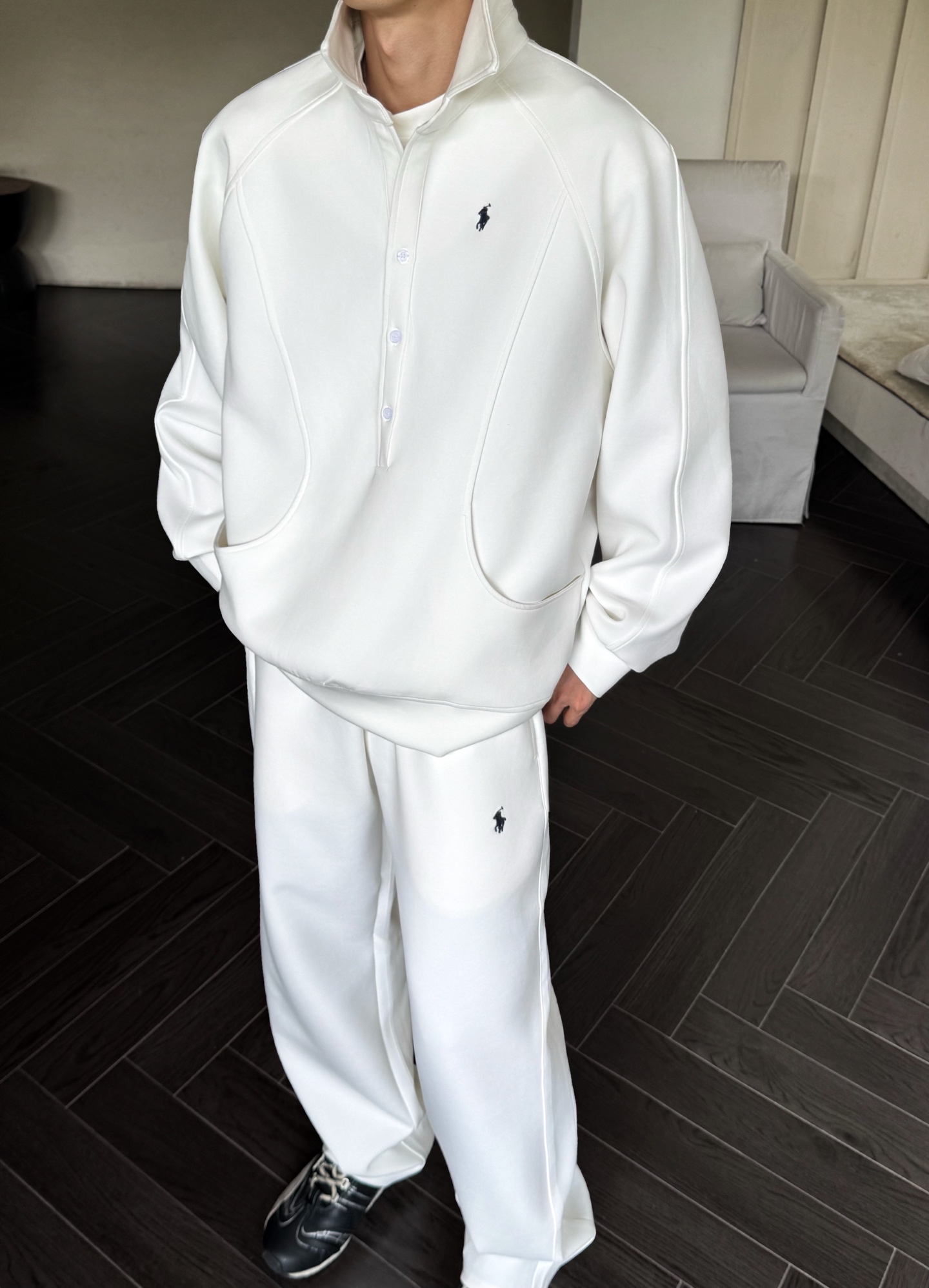 这款衣服是AAAAA 1:1 质量 (非常棒). 使用了和原版一模一样的材料. 商标部分也保持了和一样. 图片拍摄是实物衣服拍摄, 您所收到的实物保证和我们图片一模一样.