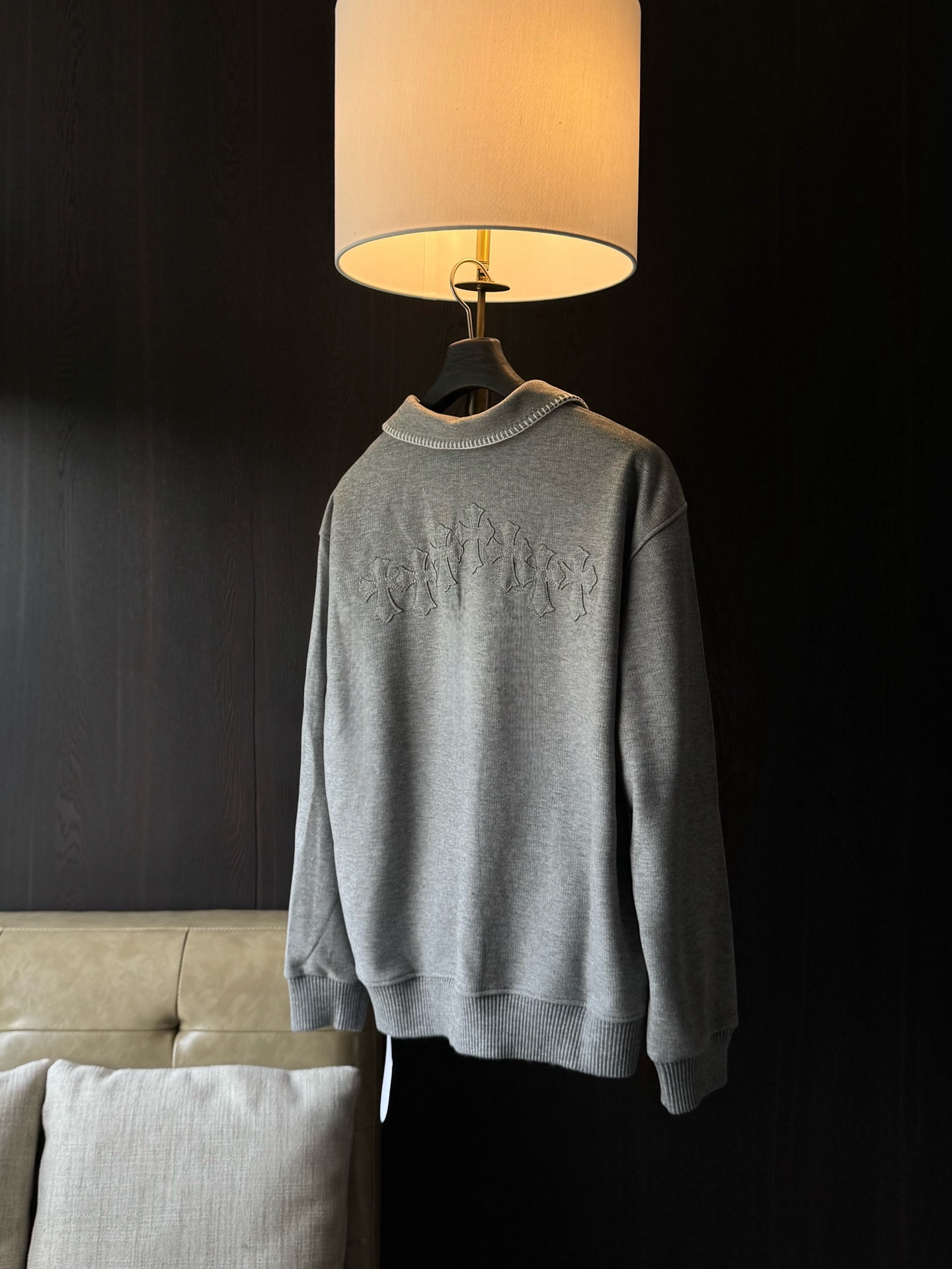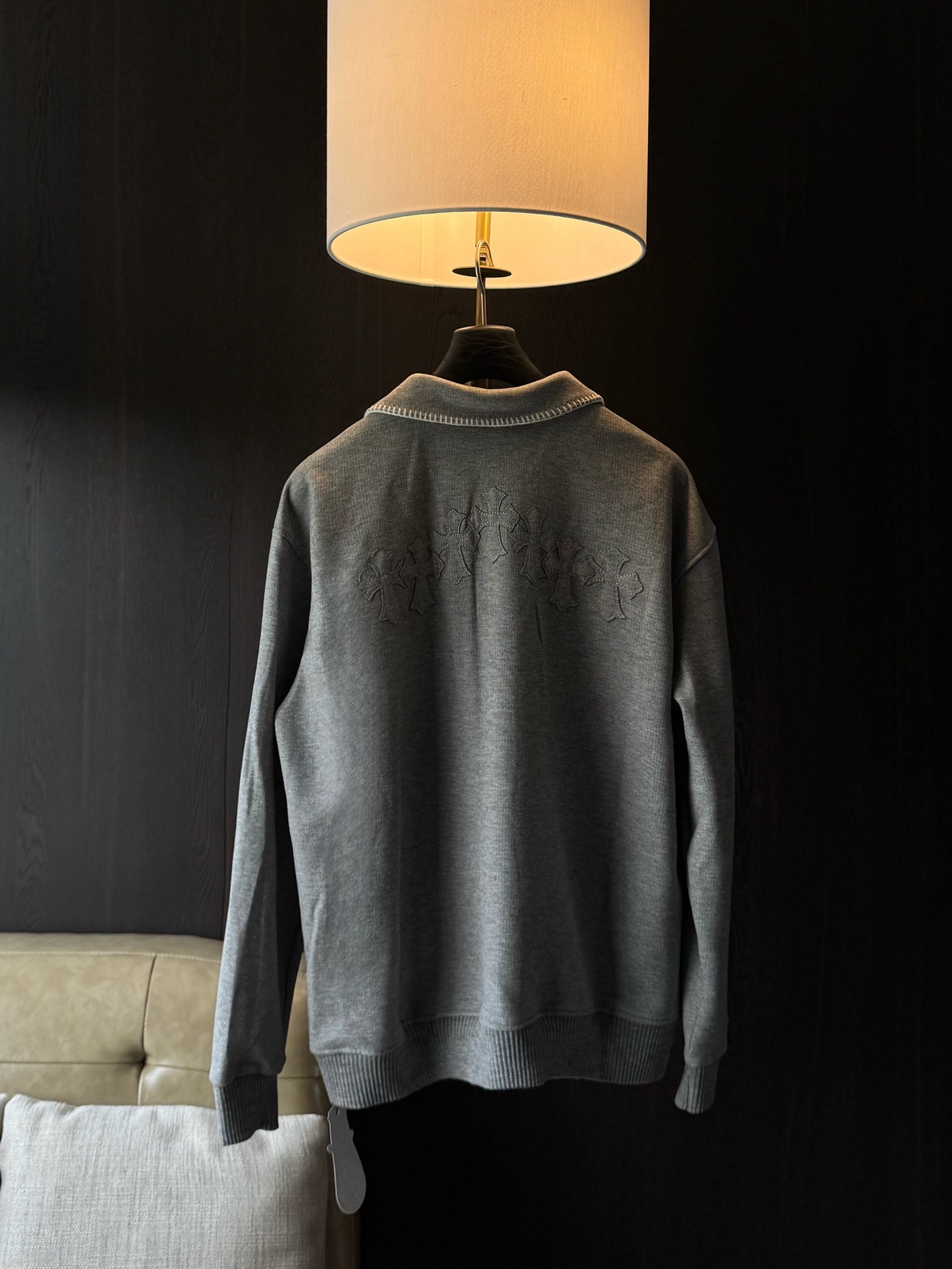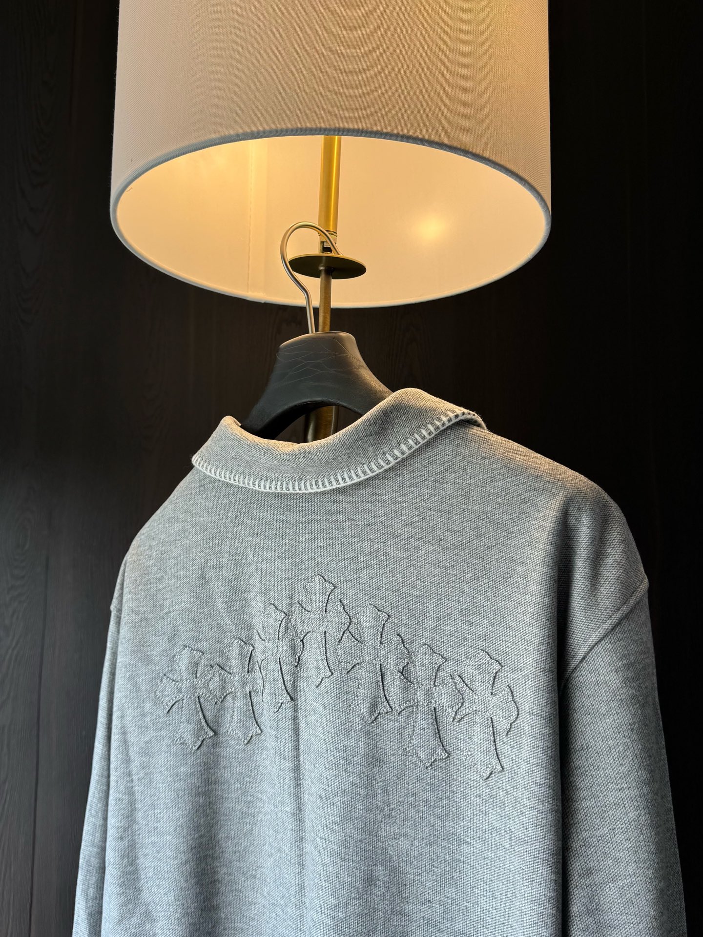这款衣服是AAAAA 1:1 质量 (非常棒). 使用了和原版一模一样的材料. 商标部分也保持了和克罗心/Chrome Hearts一样. 图片拍摄是实物衣服拍摄, 您所收到的实物保证和我们图片一模一样.