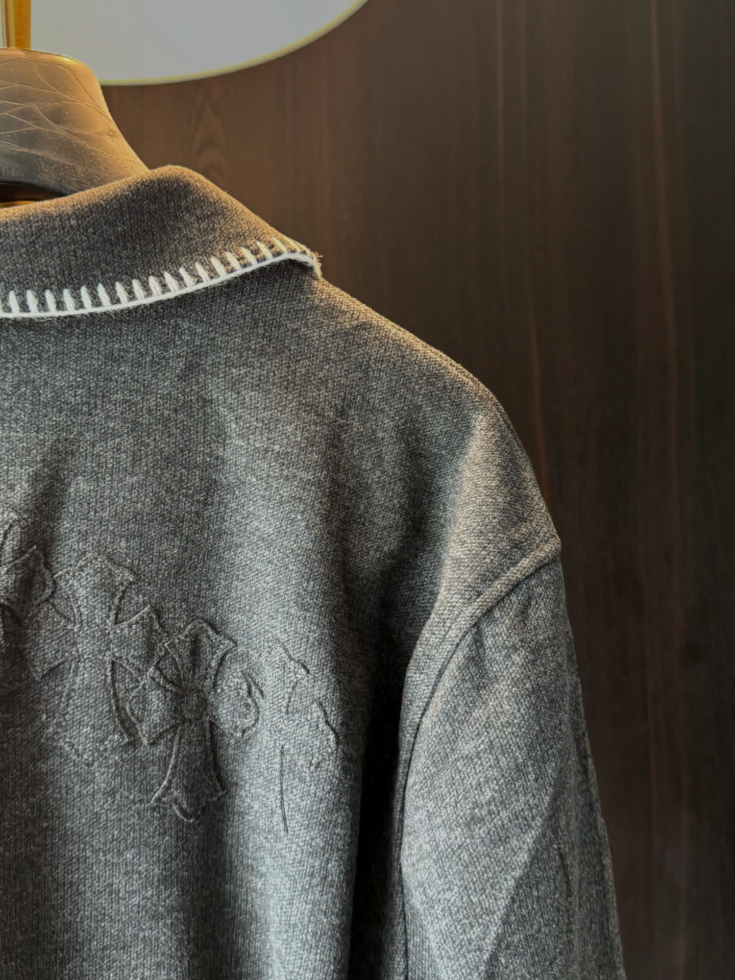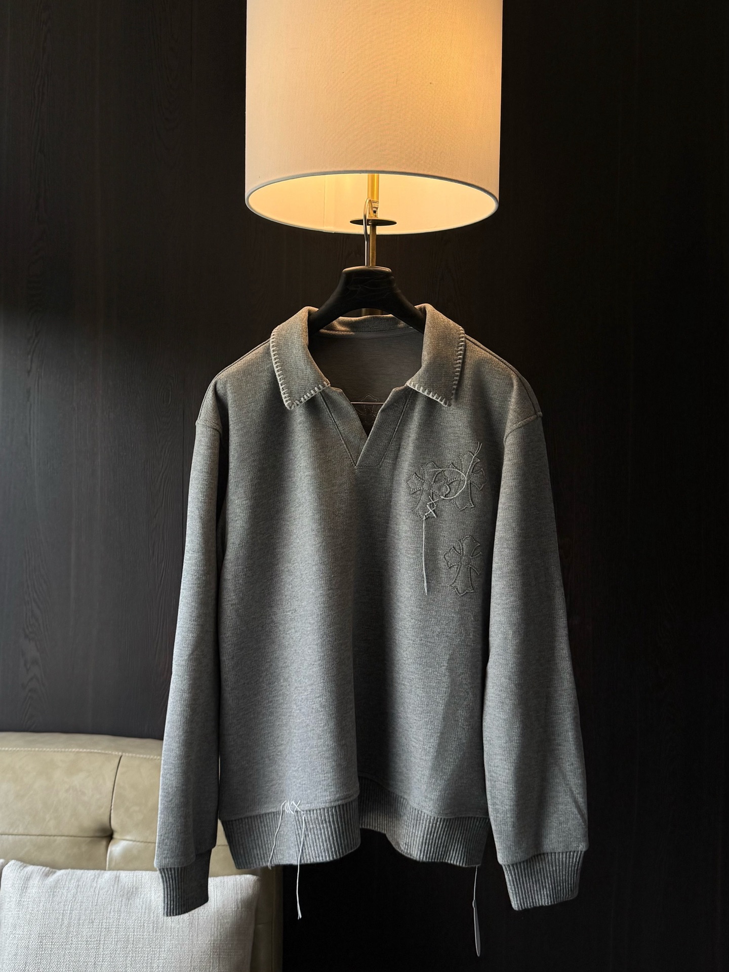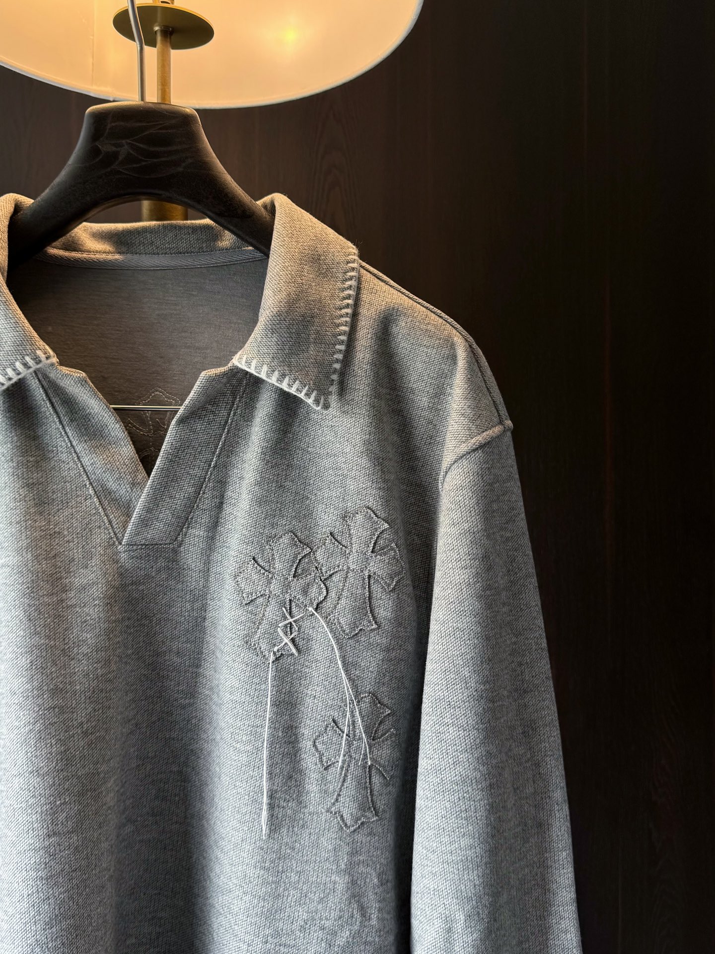 这款衣服是AAAAA 1:1 质量 (非常棒). 使用了和原版一模一样的材料. 商标部分也保持了和克罗心/Chrome Hearts一样. 图片拍摄是实物衣服拍摄, 您所收到的实物保证和我们图片一模一样.