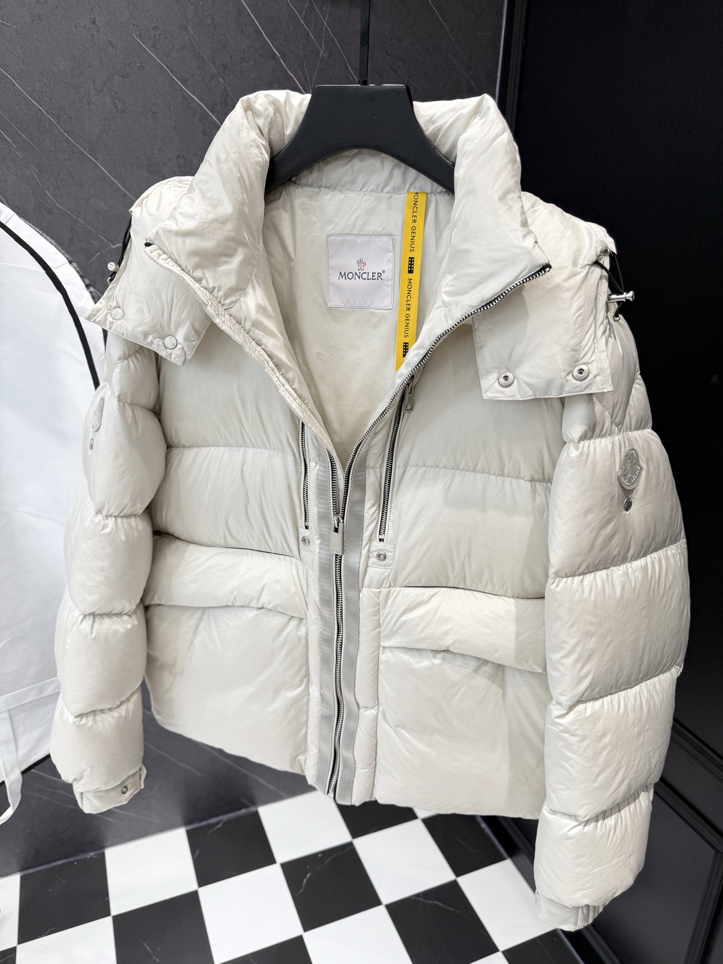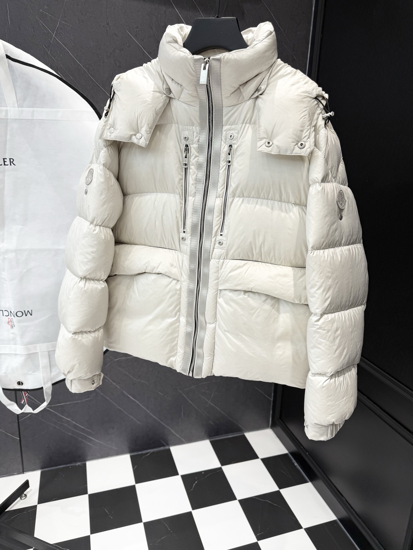 这款衣服是AAAAA 1:1 质量 (非常棒). 使用了和原版一模一样的材料. 商标部分也保持了和盟可睐/moncler一样. 图片拍摄是实物衣服拍摄, 您所收到的实物保证和我们图片一模一样.