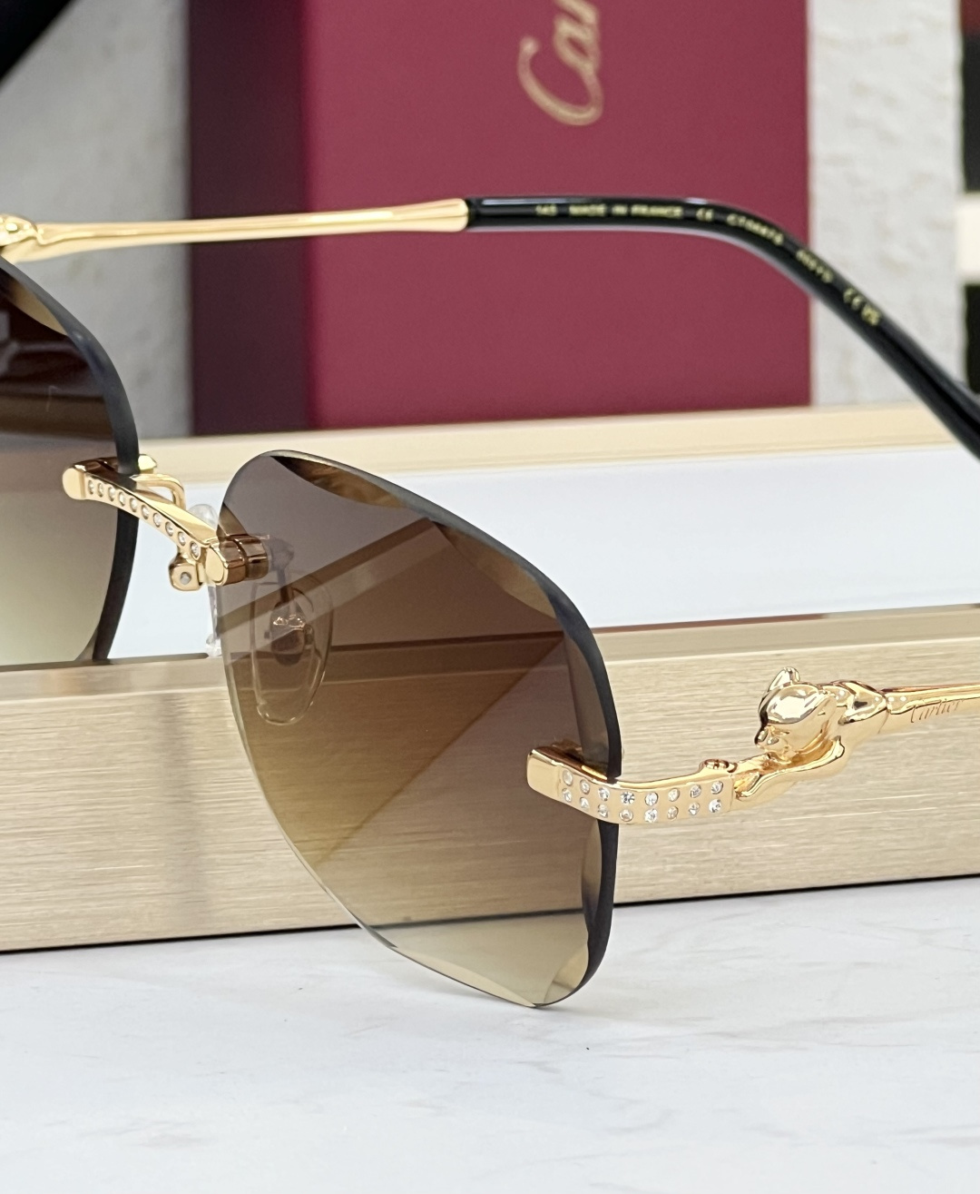 这款太阳眼镜是AAAAA 1:1 质量 (非常棒). 使用了和原版一模一样的材料. 商标部分也保持了和卡地亚/Cartier一样. 图片拍摄是实物太阳眼镜拍摄, 您所收到的实物保证和我们图片一模一样.