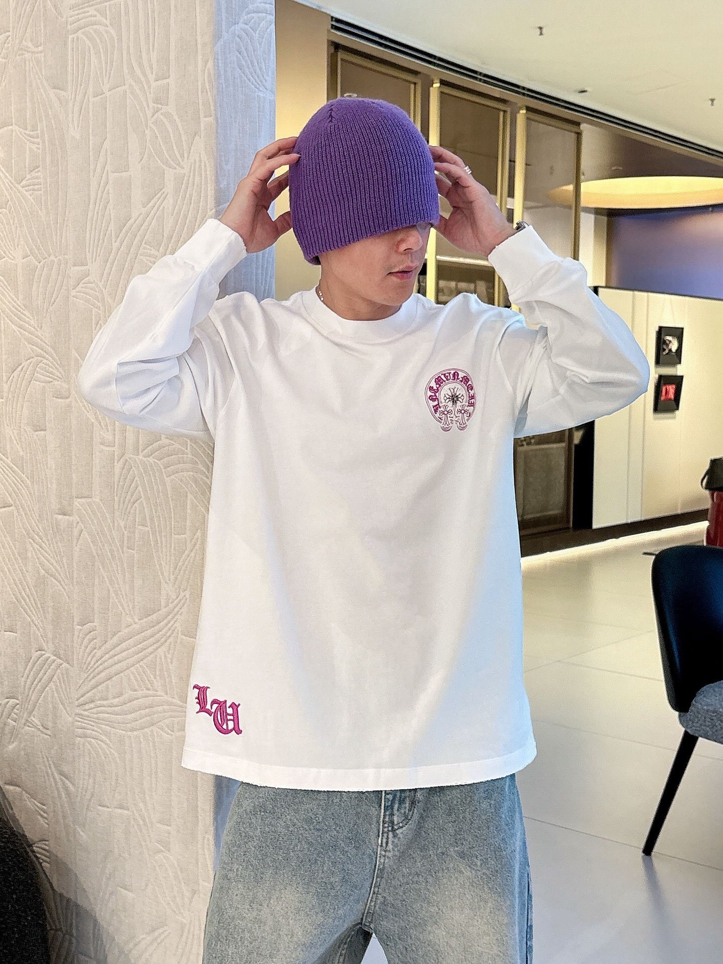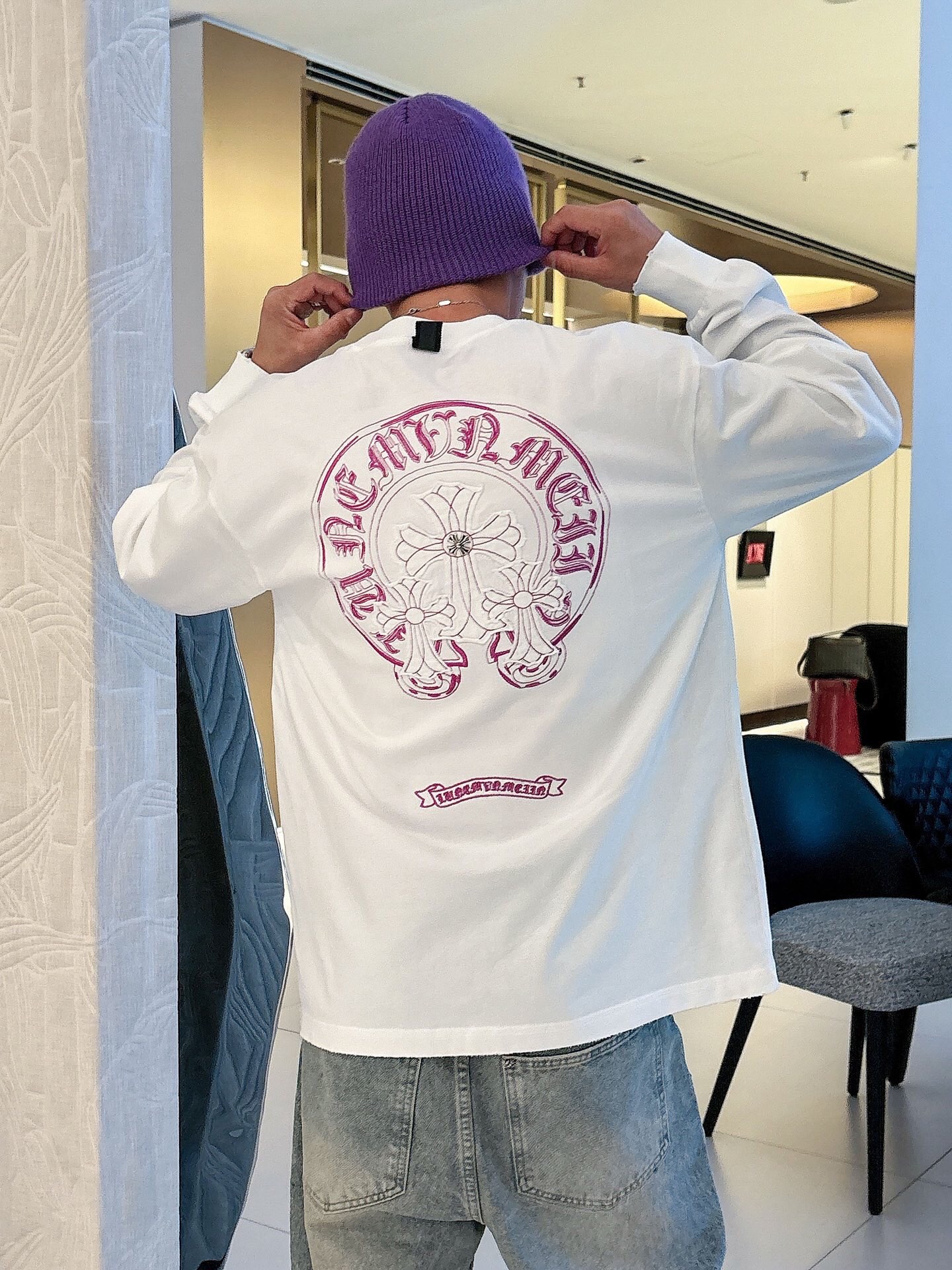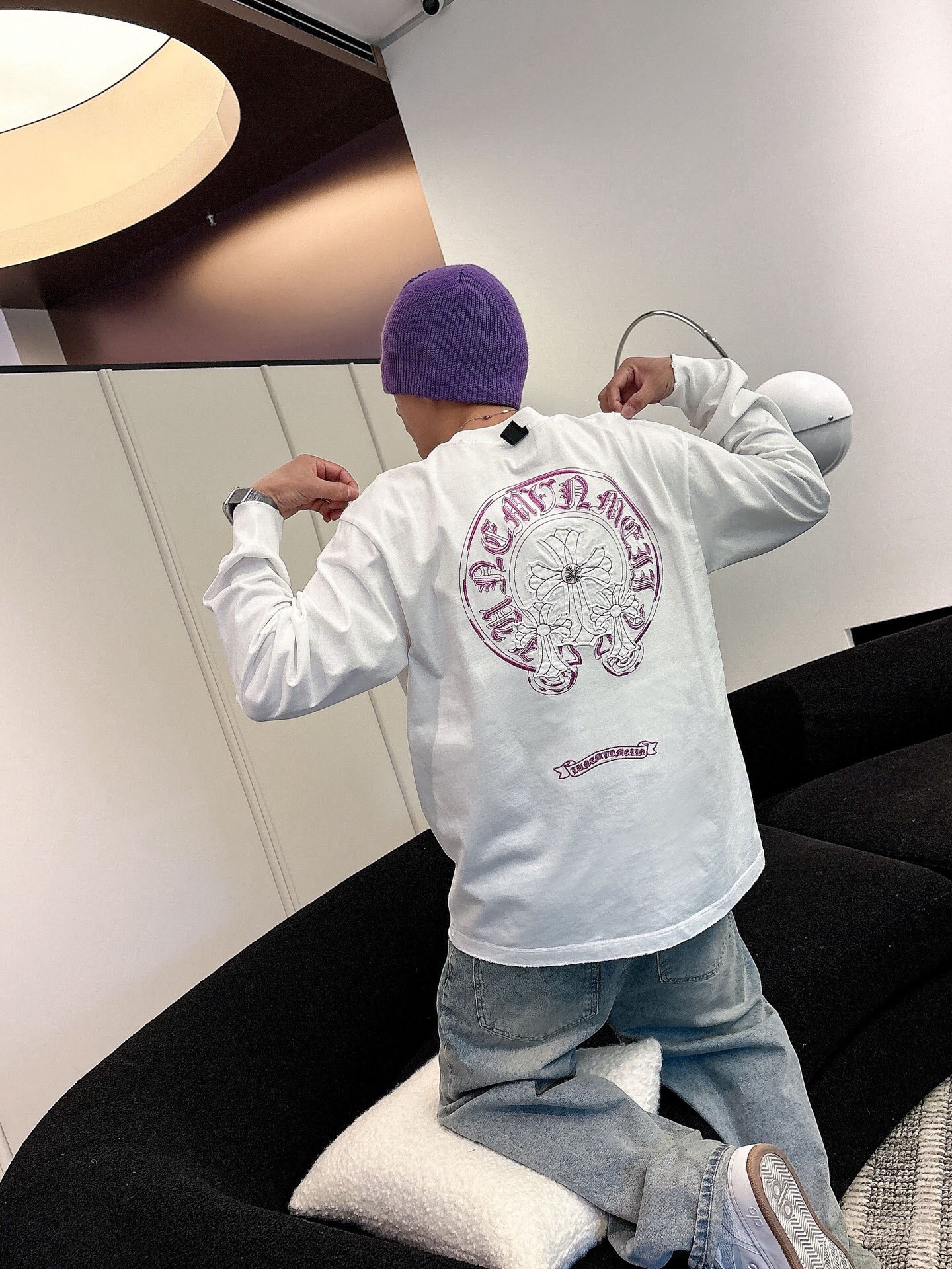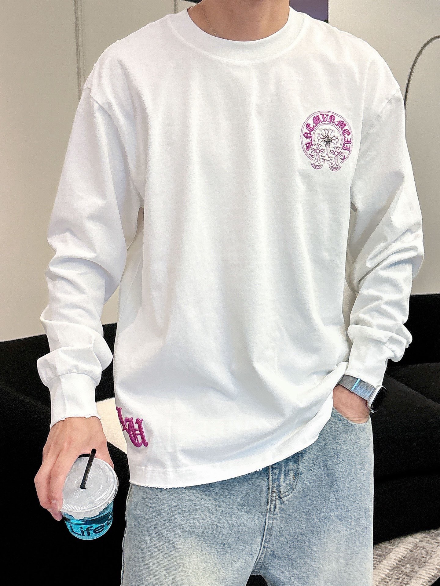 这款衣服是AAAAA 1:1 质量 (非常棒). 使用了和原版一模一样的材料. 商标部分也保持了和克罗心/Chrome Hearts一样. 图片拍摄是实物衣服拍摄, 您所收到的实物保证和我们图片一模一样.