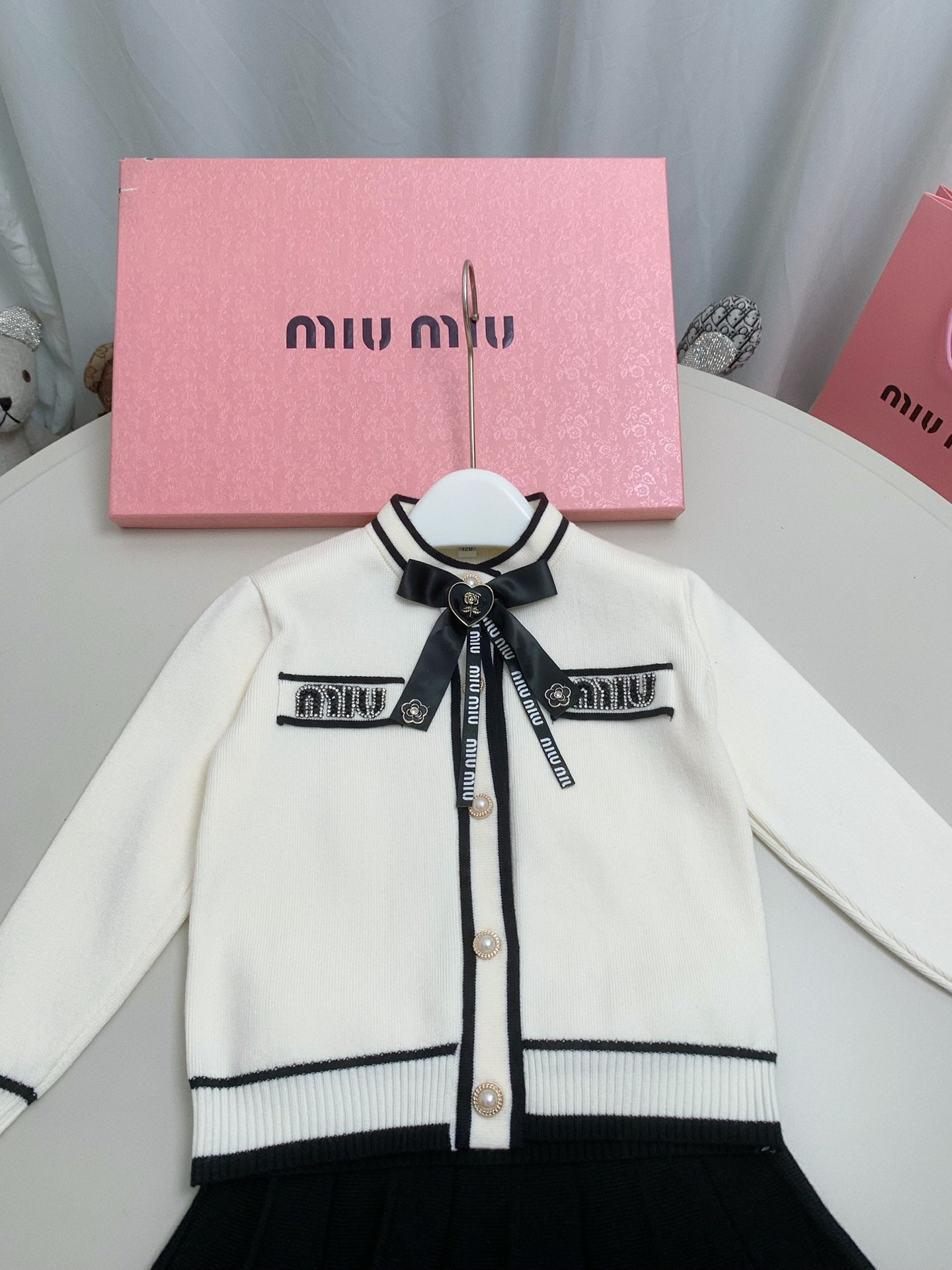 这款children's clothes是AAAAA 1:1 质量 (非常棒). 使用了和原版一模一样的材料. 商标部分也保持了和缪缪/Miu Miu一样. 图片拍摄是实物children's clothes拍摄, 您所收到的实物保证和我们图片一模一样.